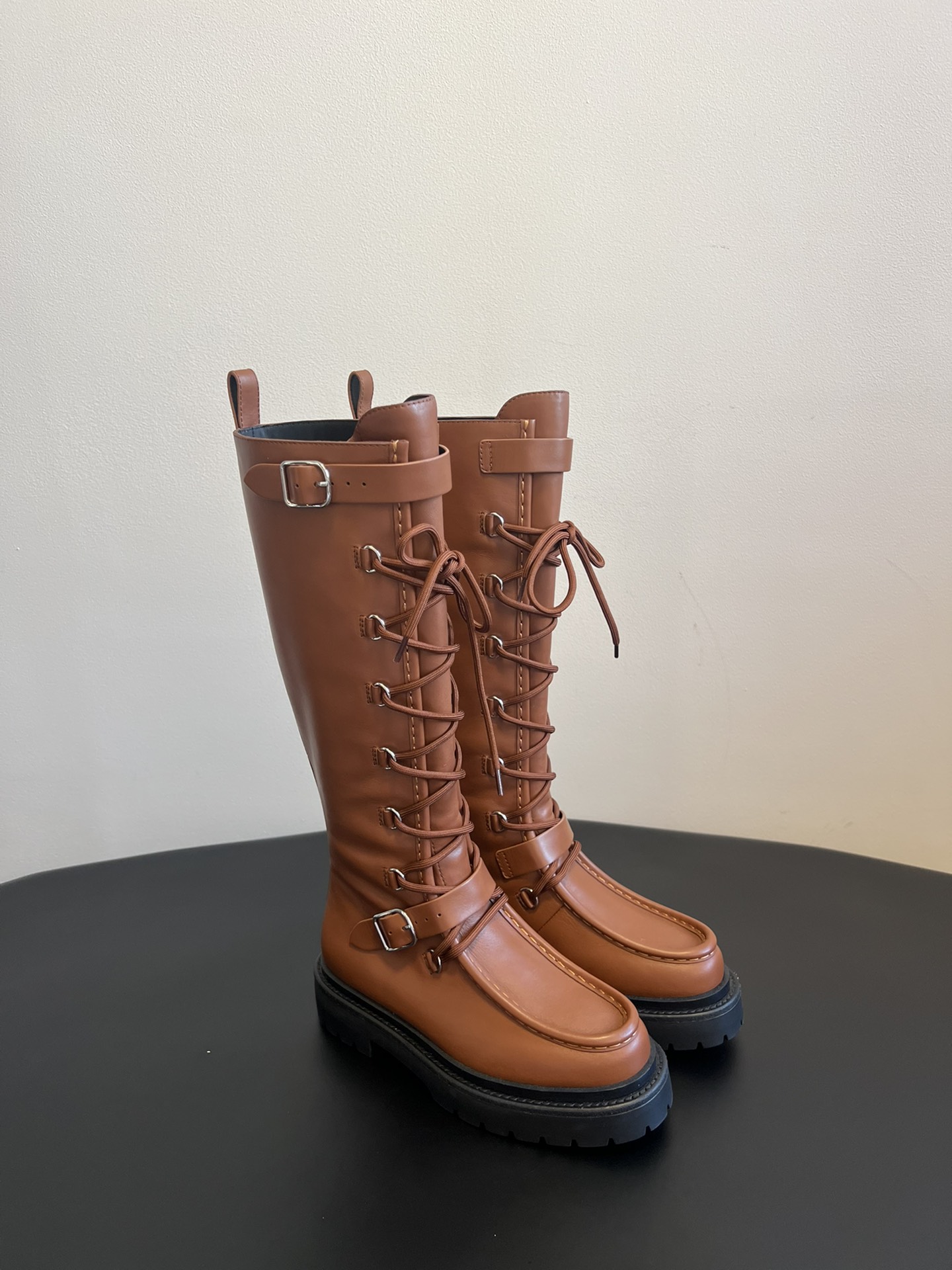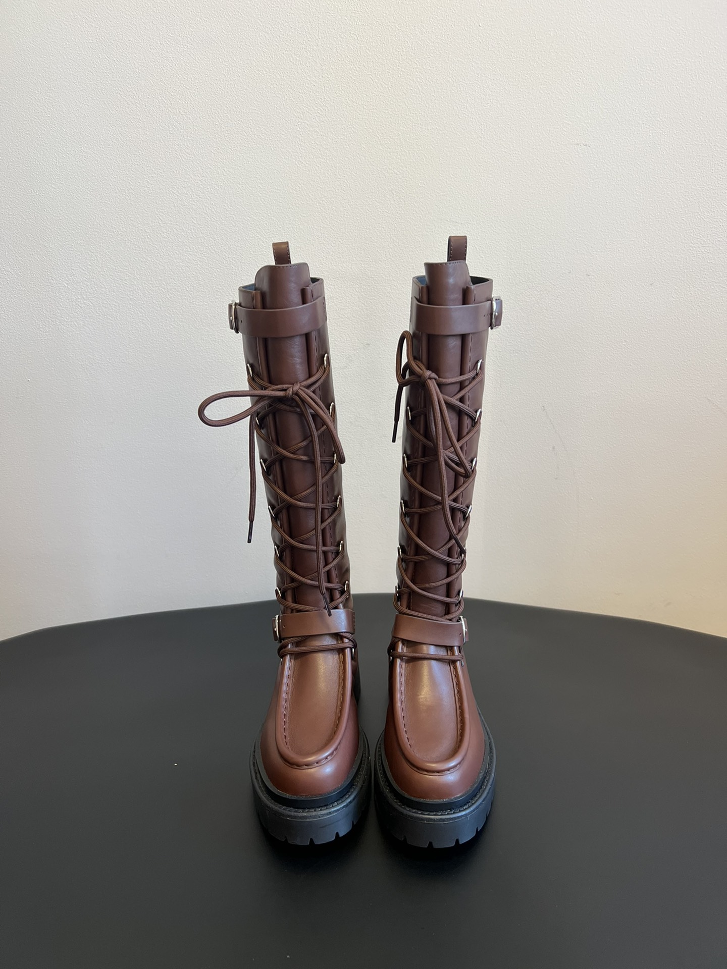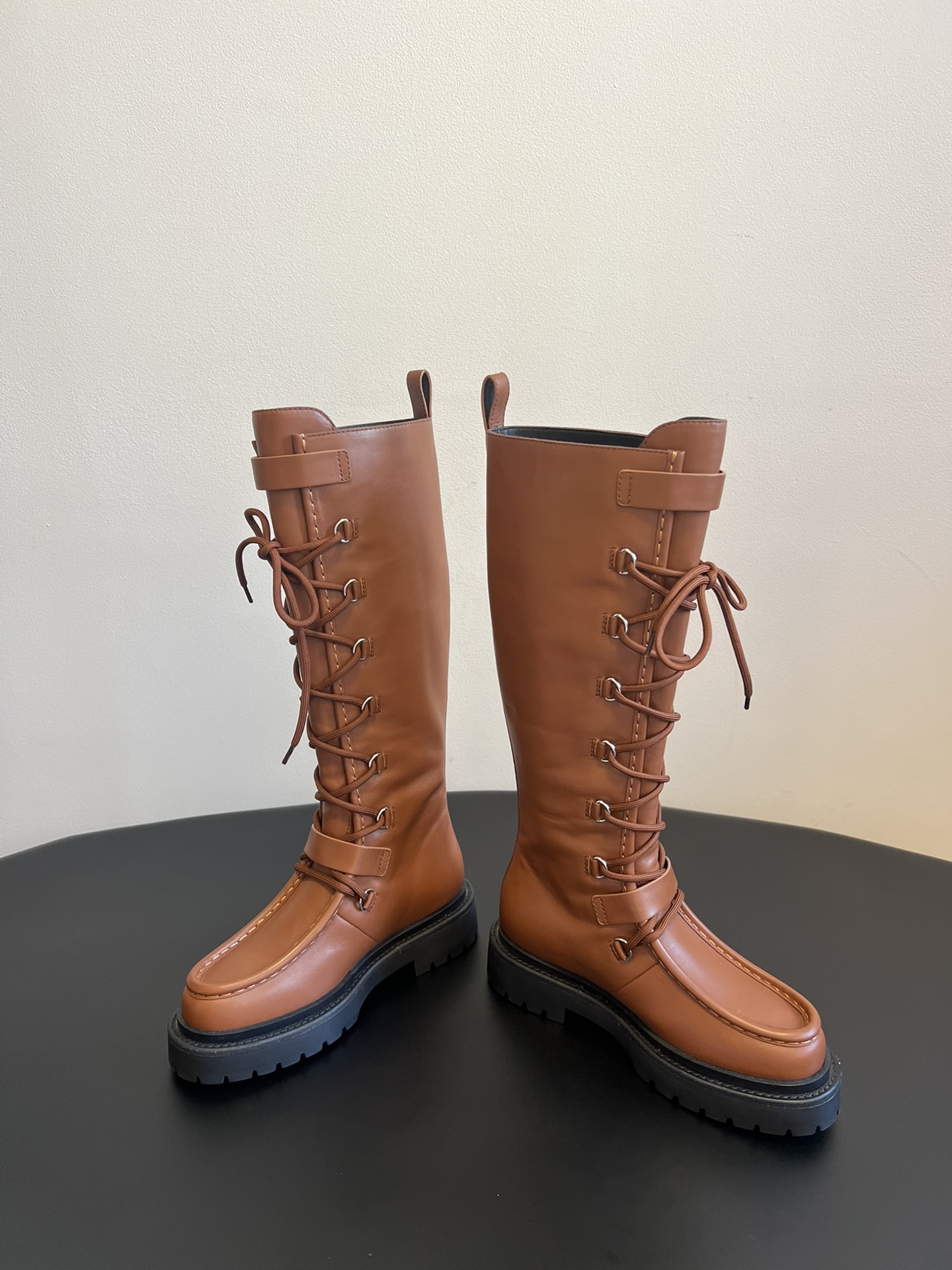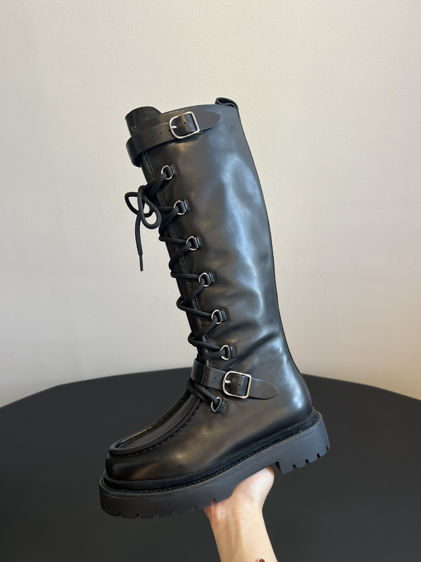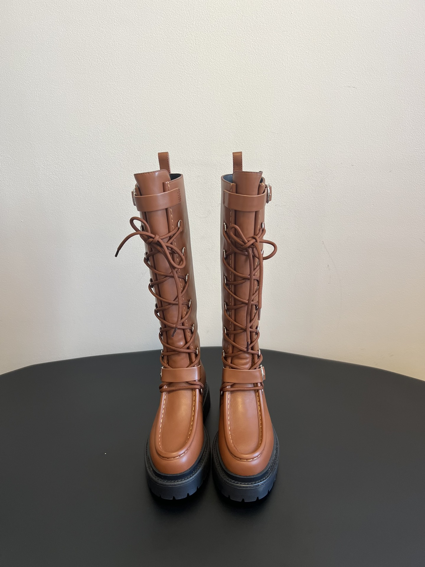 NIGO Hermes Women's Fall/Winter Landscape Boots Lace-Up Round-Toe High-Top Boots Solid-Color Cowhide Casual Shoes Heel Height: 3.5cm Ngvp #nigo2326