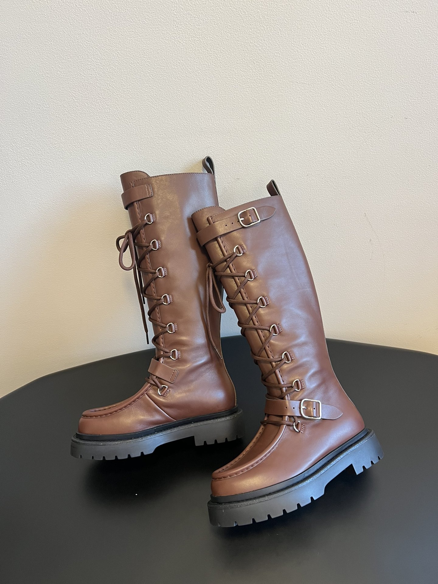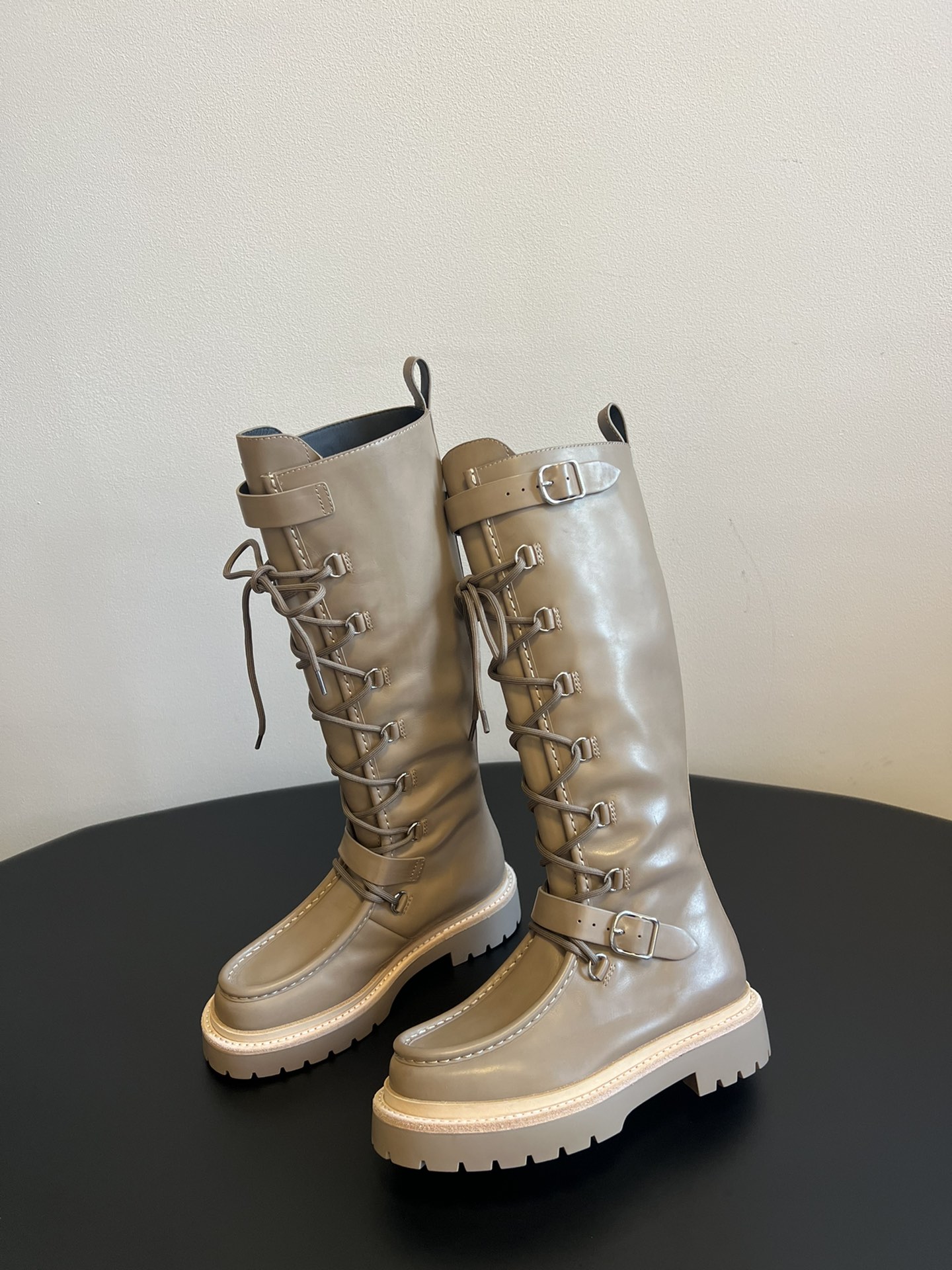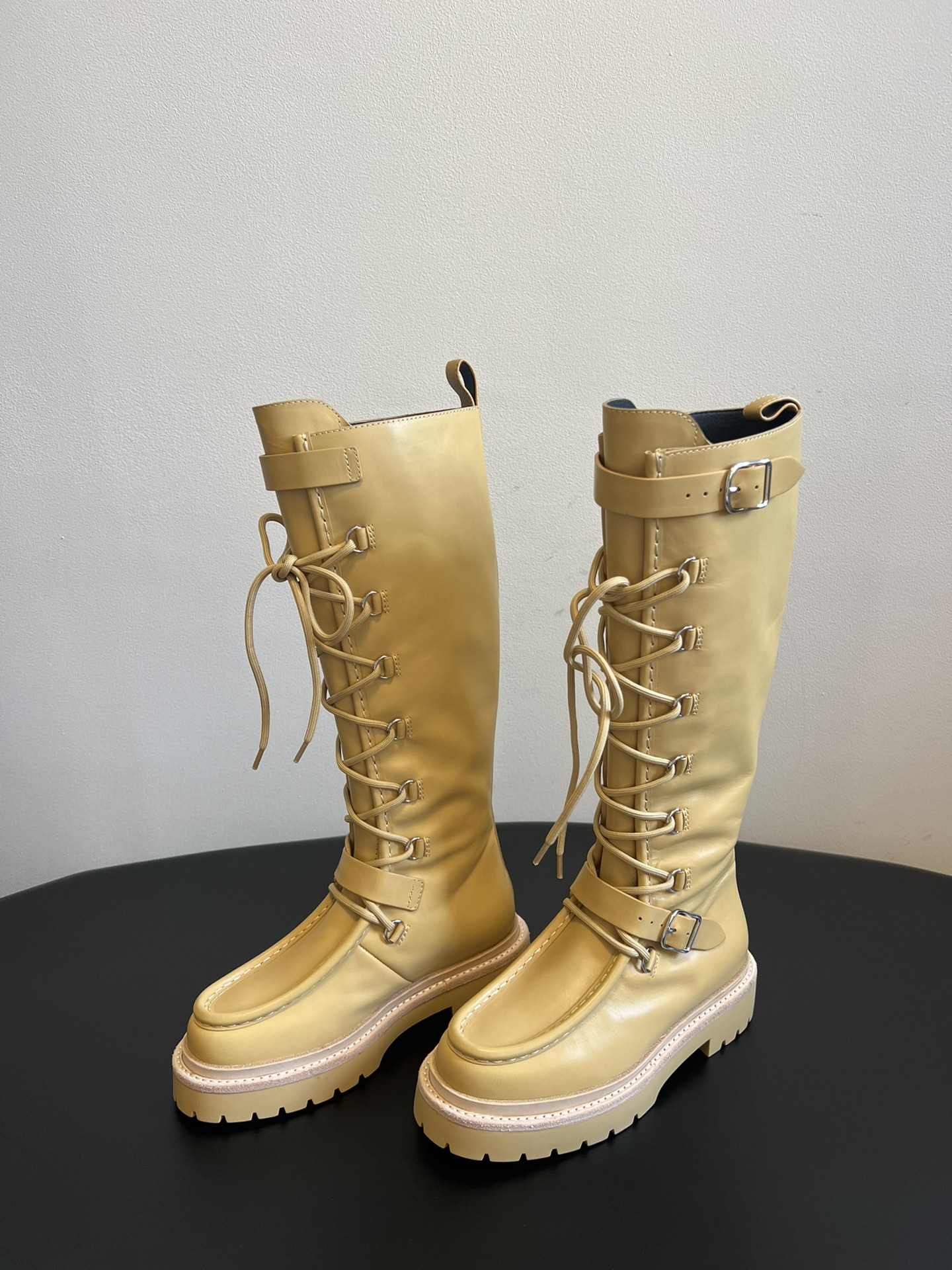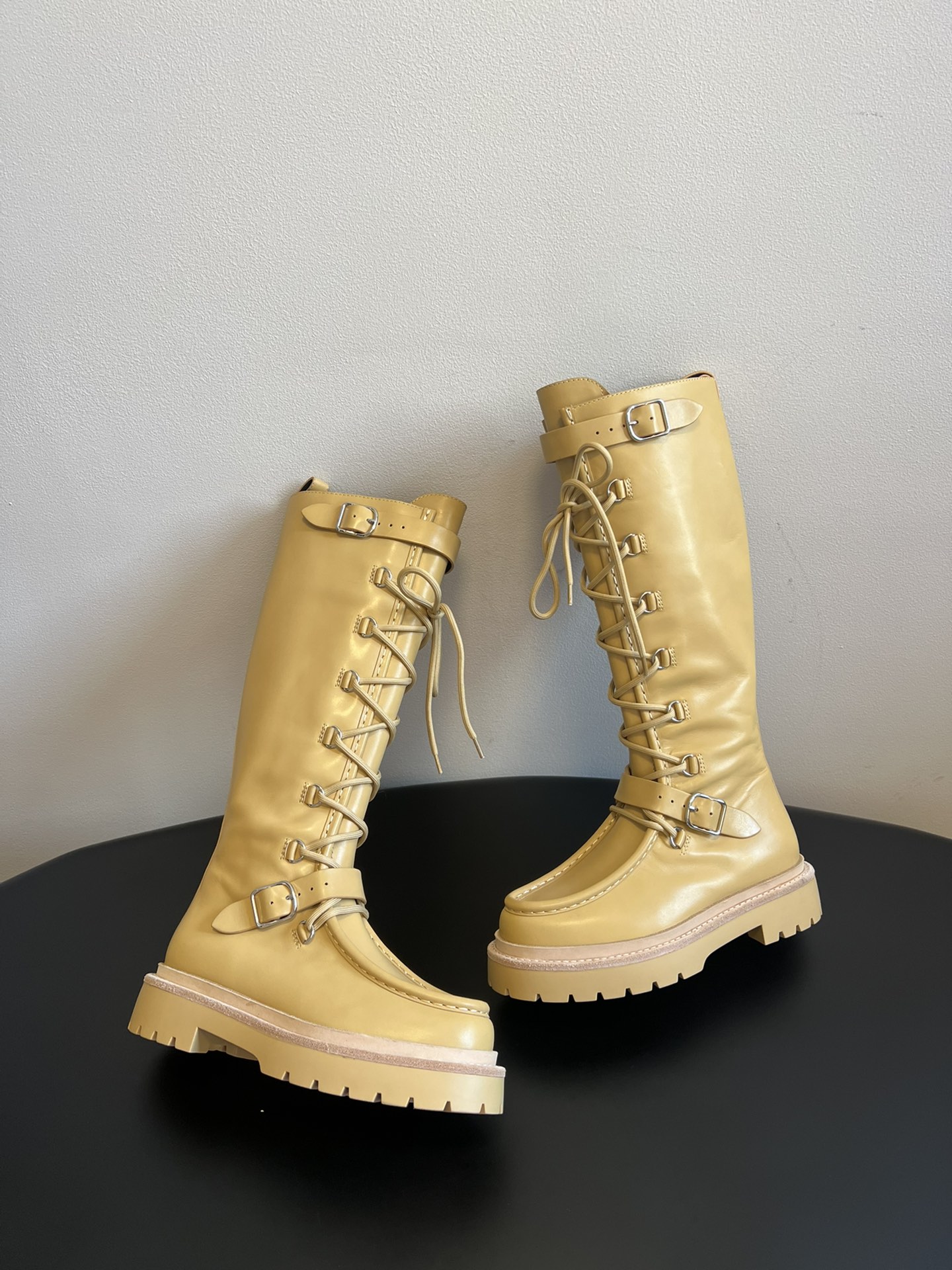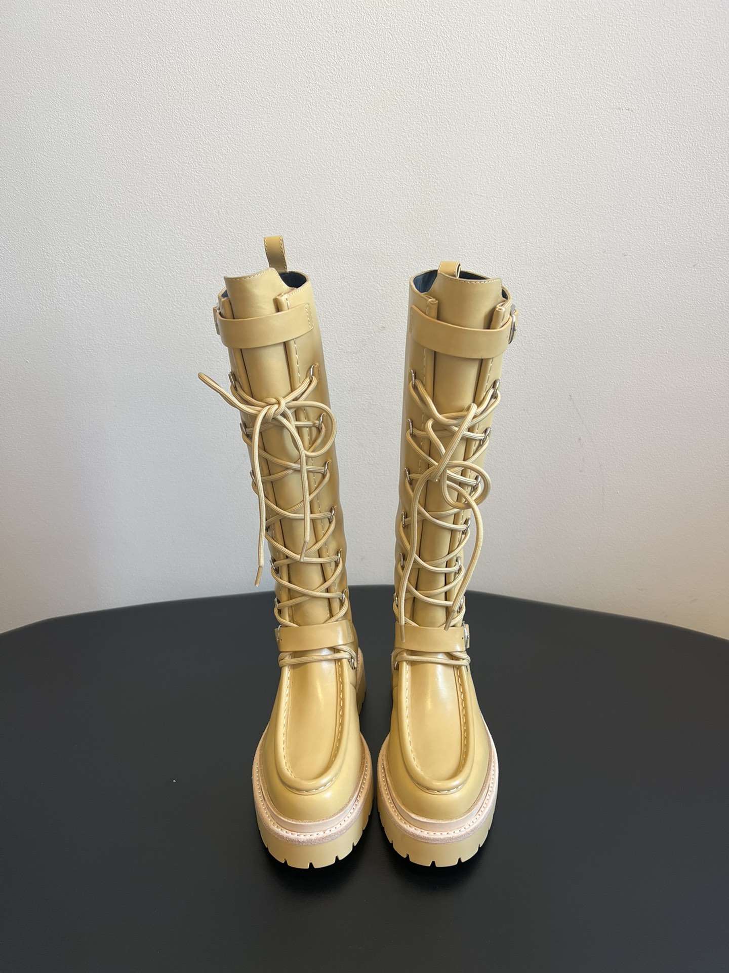 NIGO Hermes Women's Fall/Winter Landscape Boots Lace-Up Round-Toe High-Top Boots Solid-Color Cowhide Casual Shoes Heel Height: 3.5cm Ngvp #nigo2326
