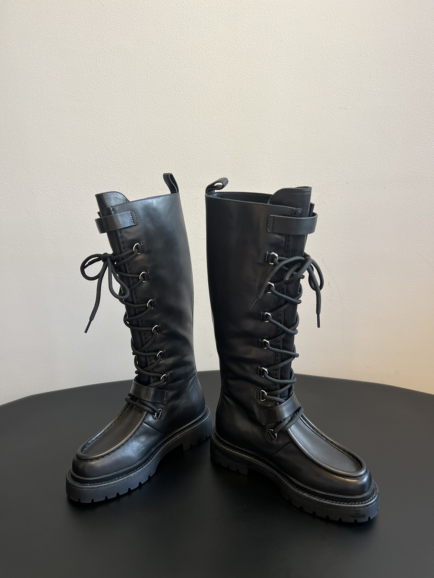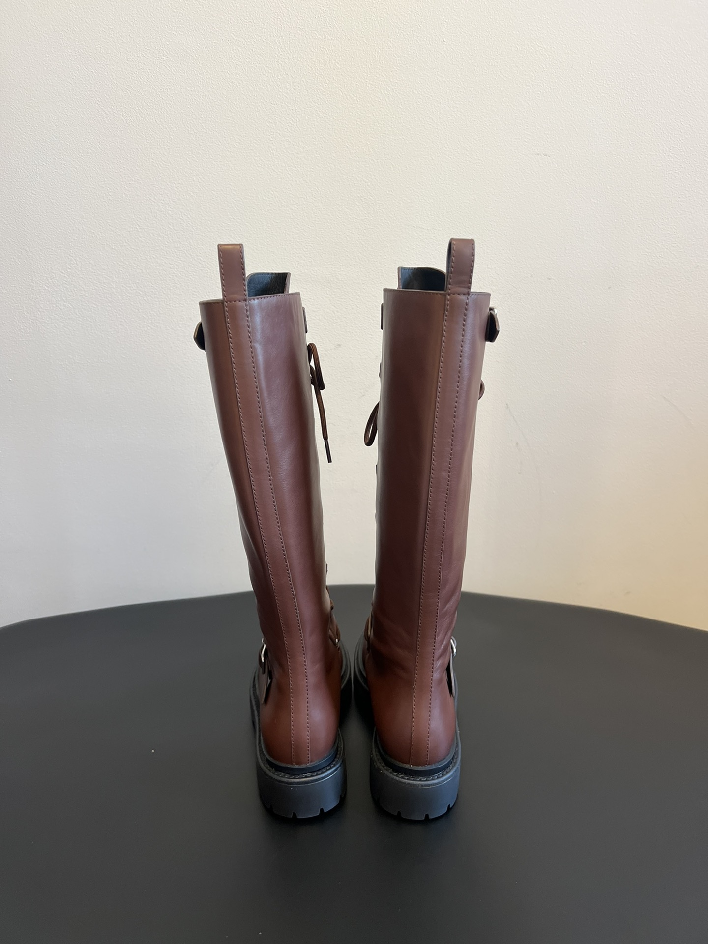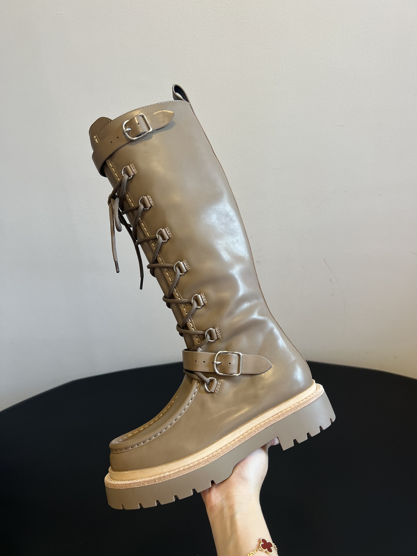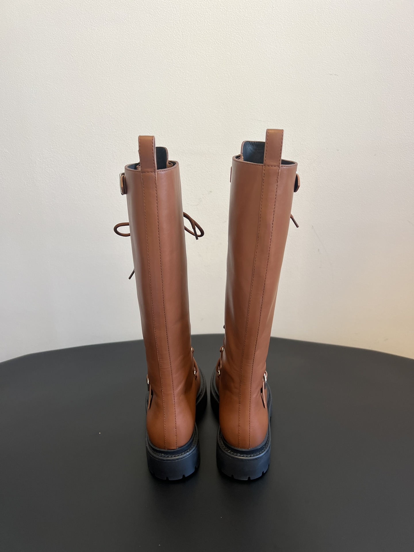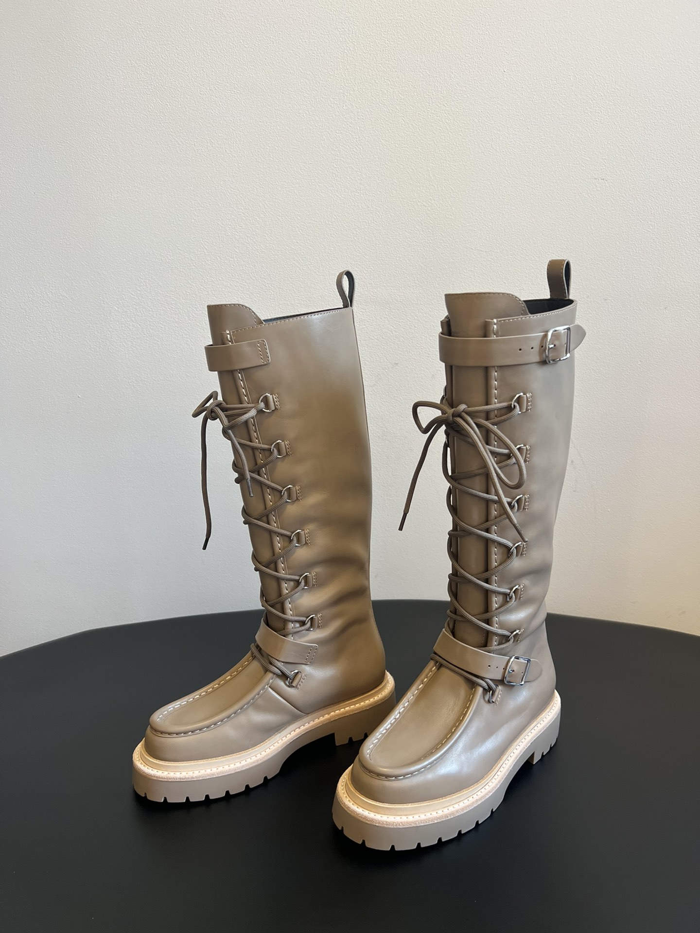 NIGO Hermes Women's Fall/Winter Landscape Boots Lace-Up Round-Toe High-Top Boots Solid-Color Cowhide Casual Shoes Heel Height: 3.5cm Ngvp #nigo2326