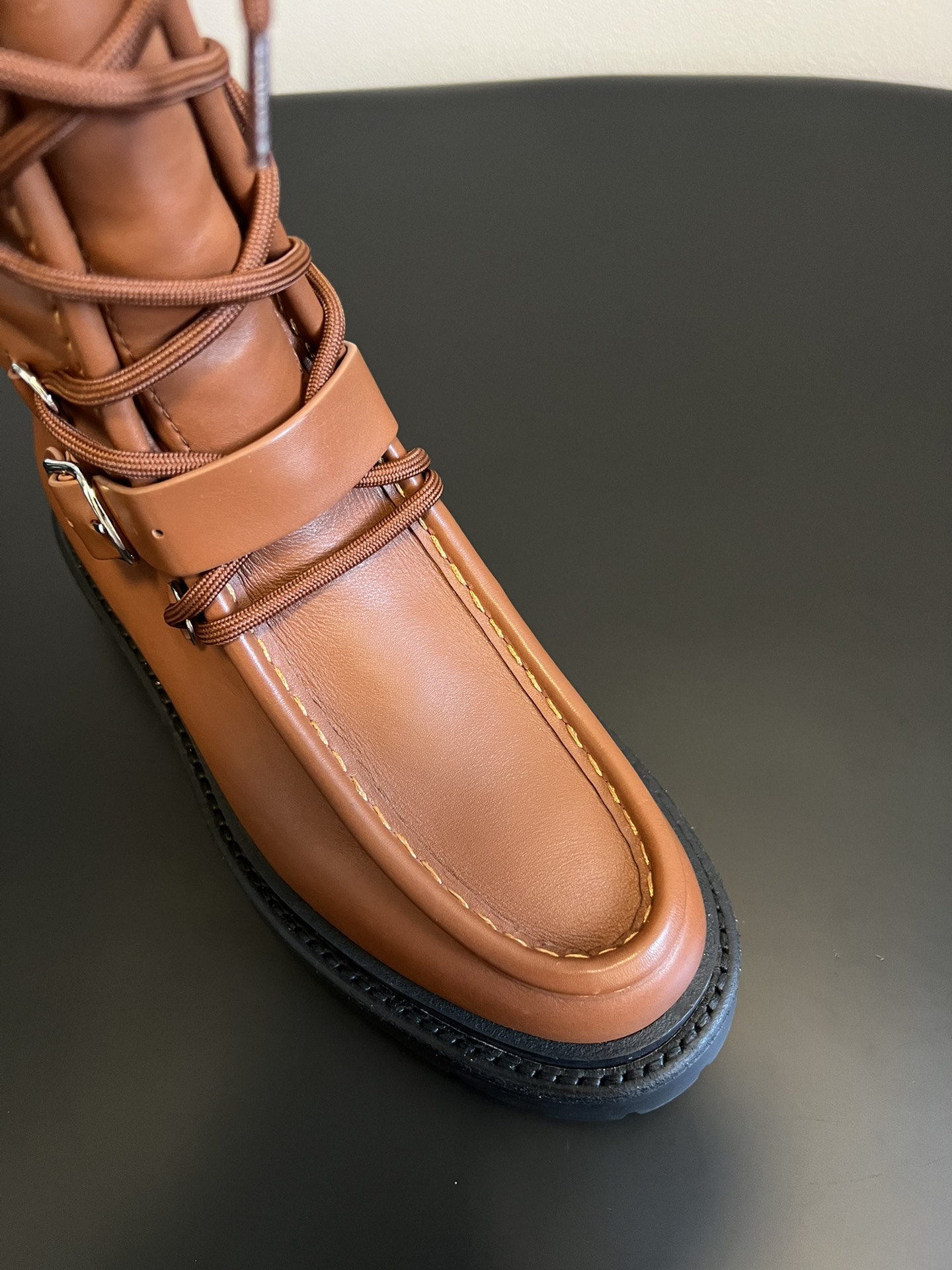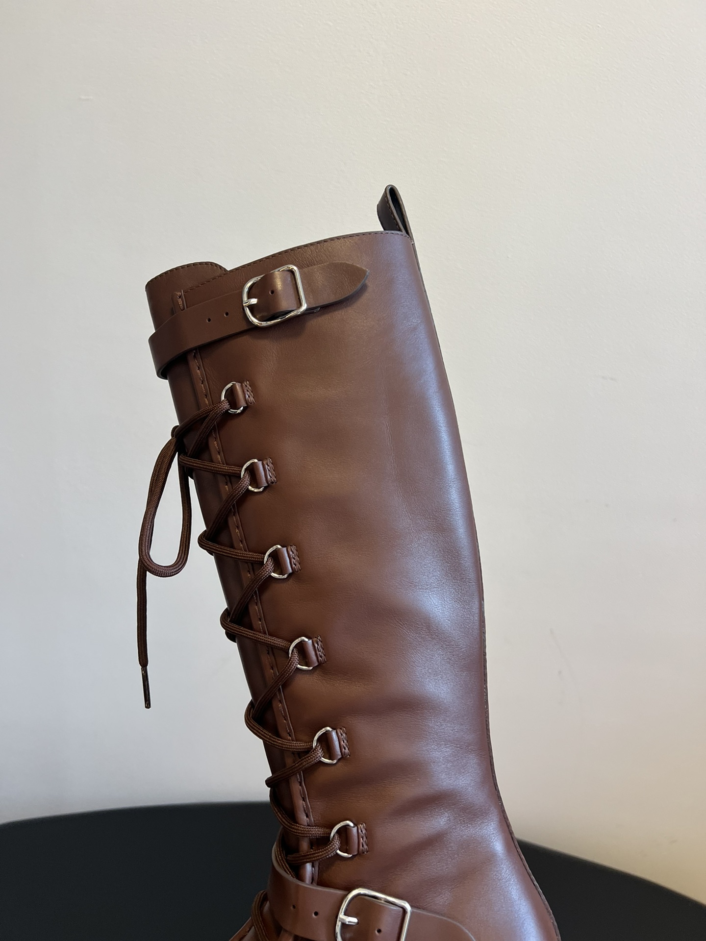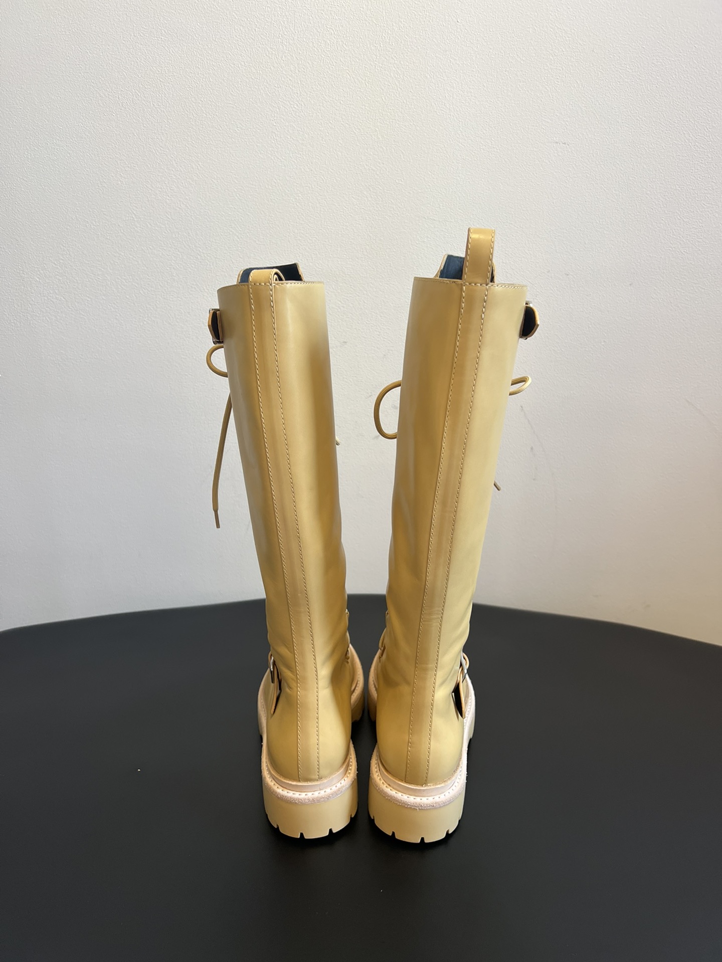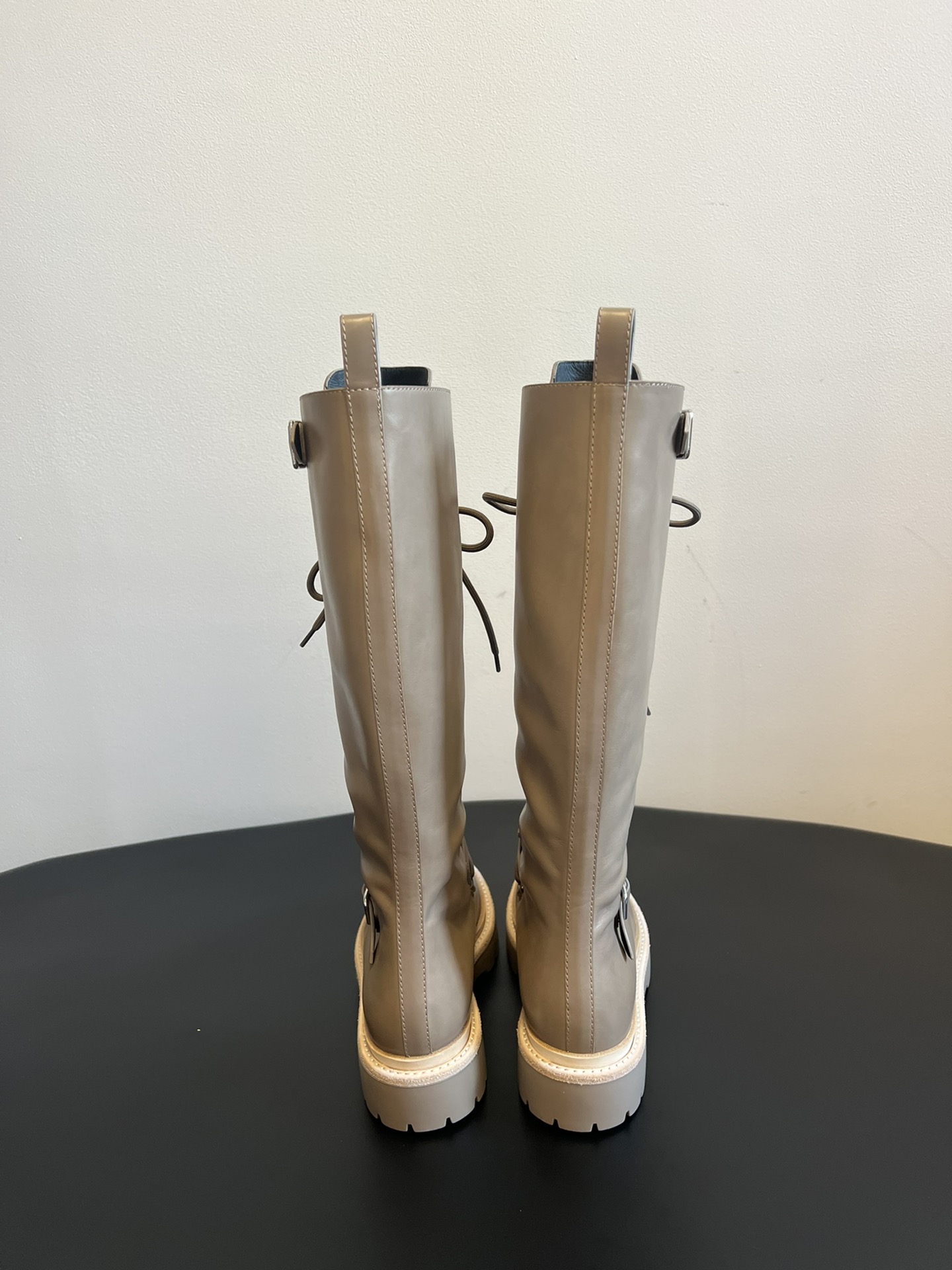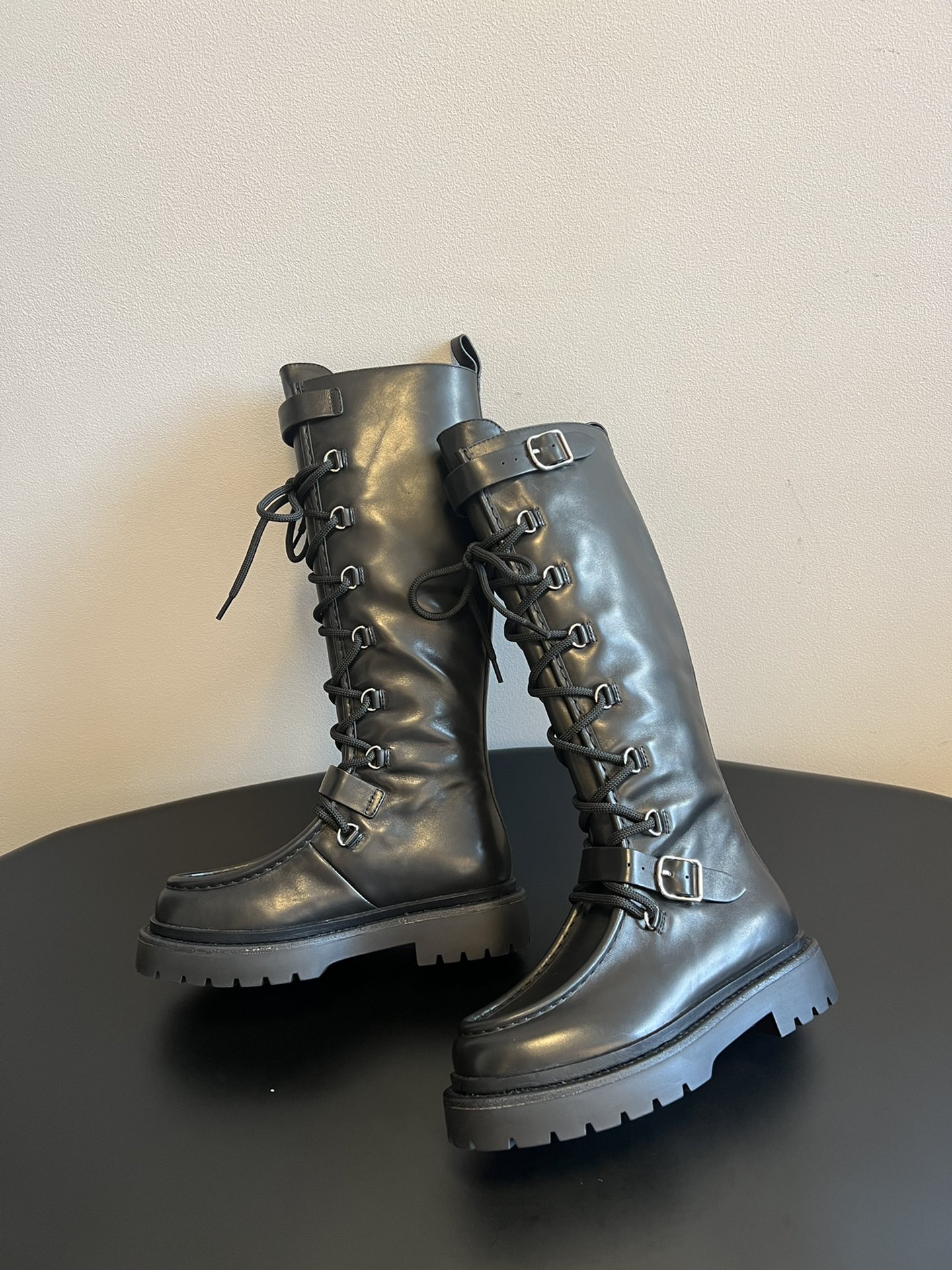 NIGO Hermes Women's Fall/Winter Landscape Boots Lace-Up Round-Toe High-Top Boots Solid-Color Cowhide Casual Shoes Heel Height: 3.5cm Ngvp #nigo2326