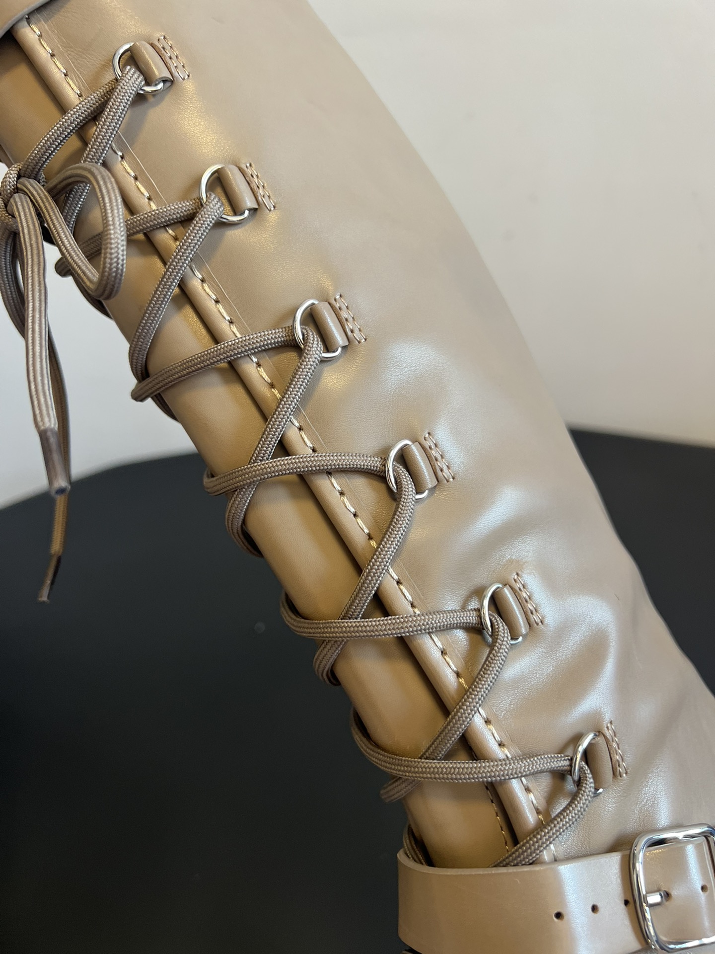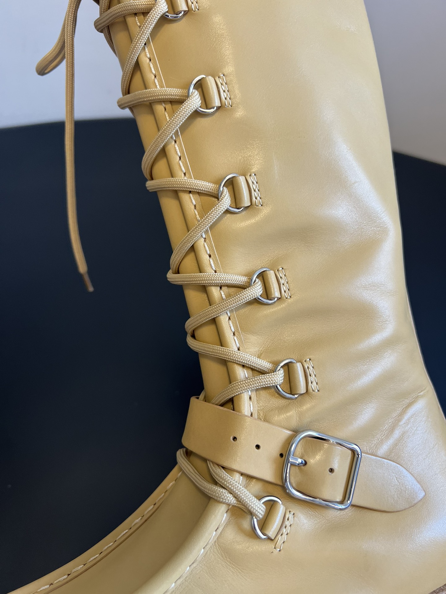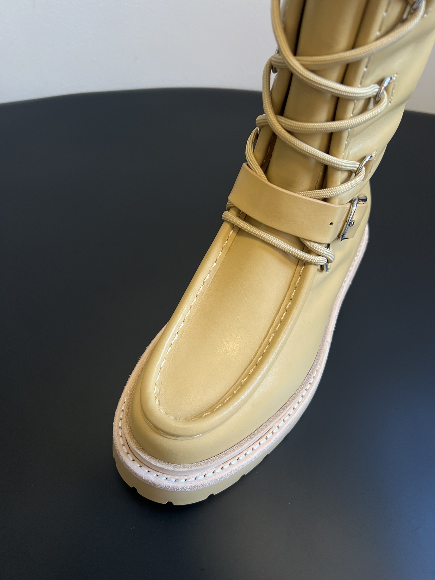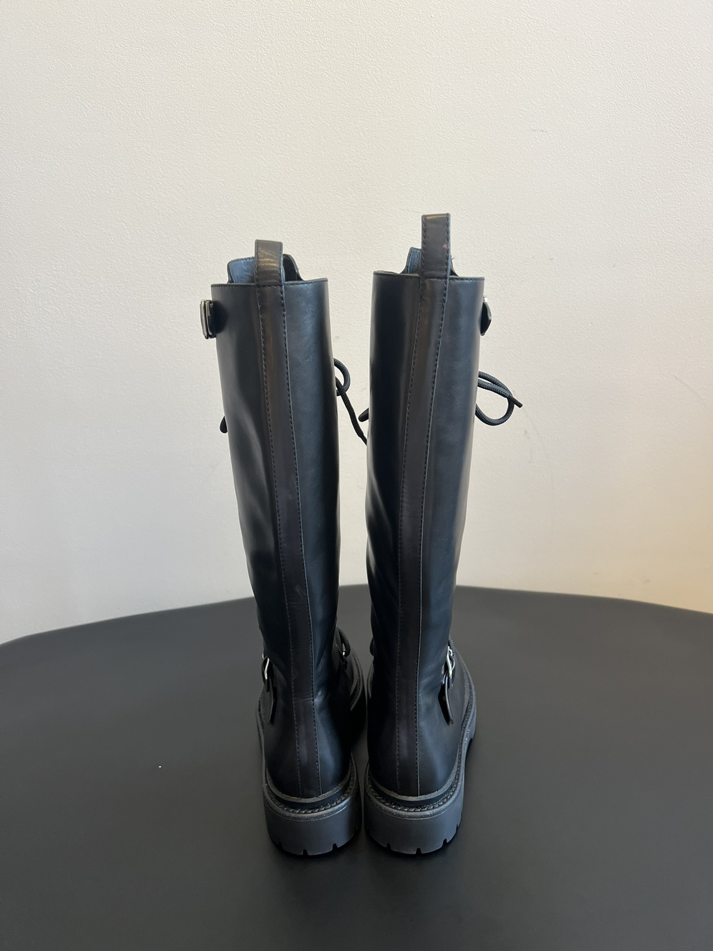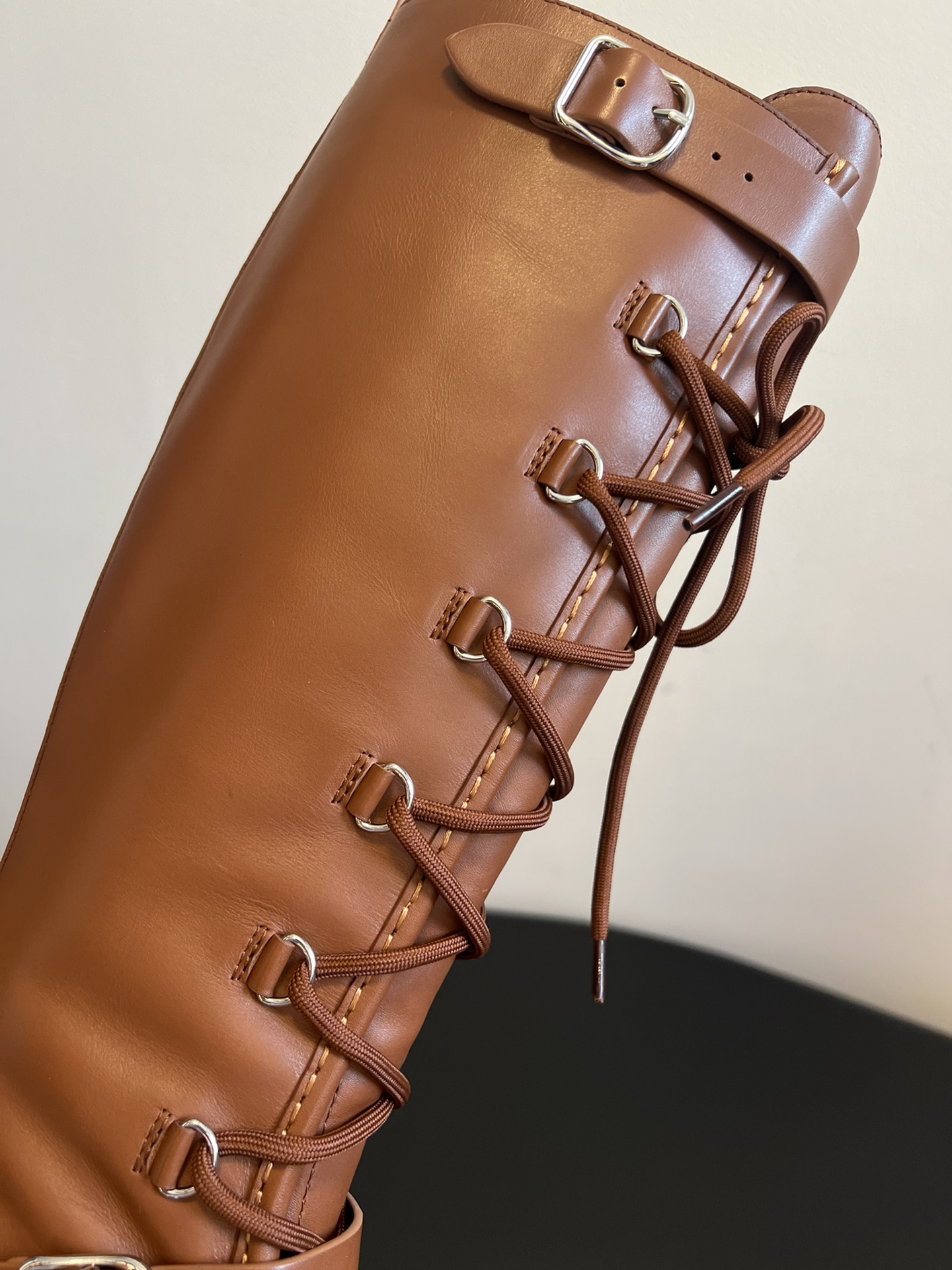 NIGO Hermes Women's Fall/Winter Landscape Boots Lace-Up Round-Toe High-Top Boots Solid-Color Cowhide Casual Shoes Heel Height: 3.5cm Ngvp #nigo2326