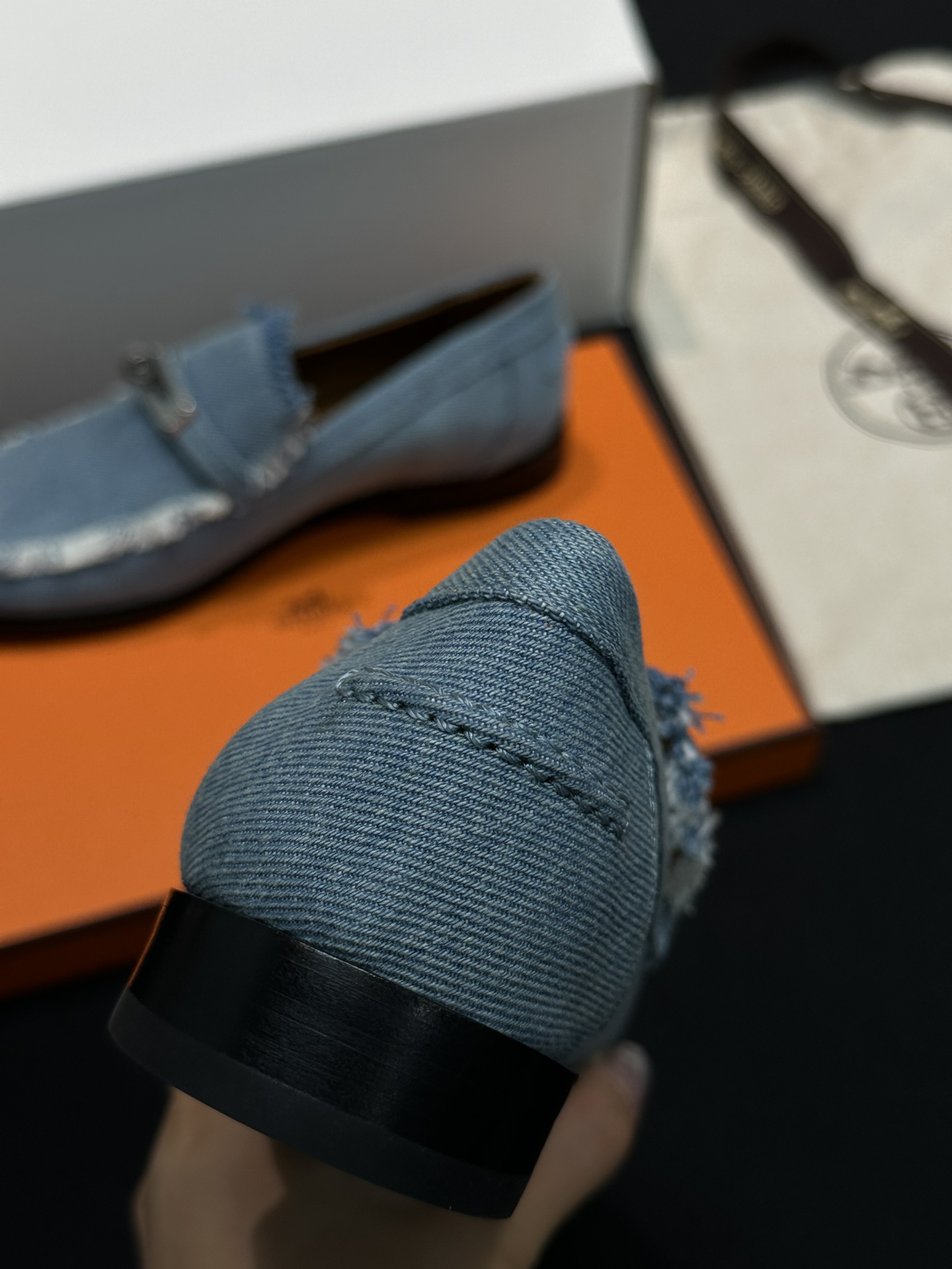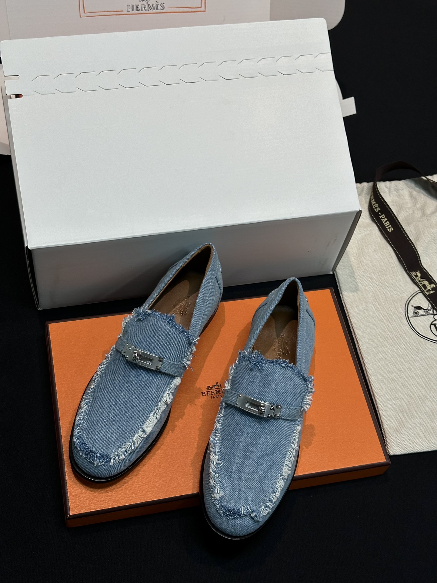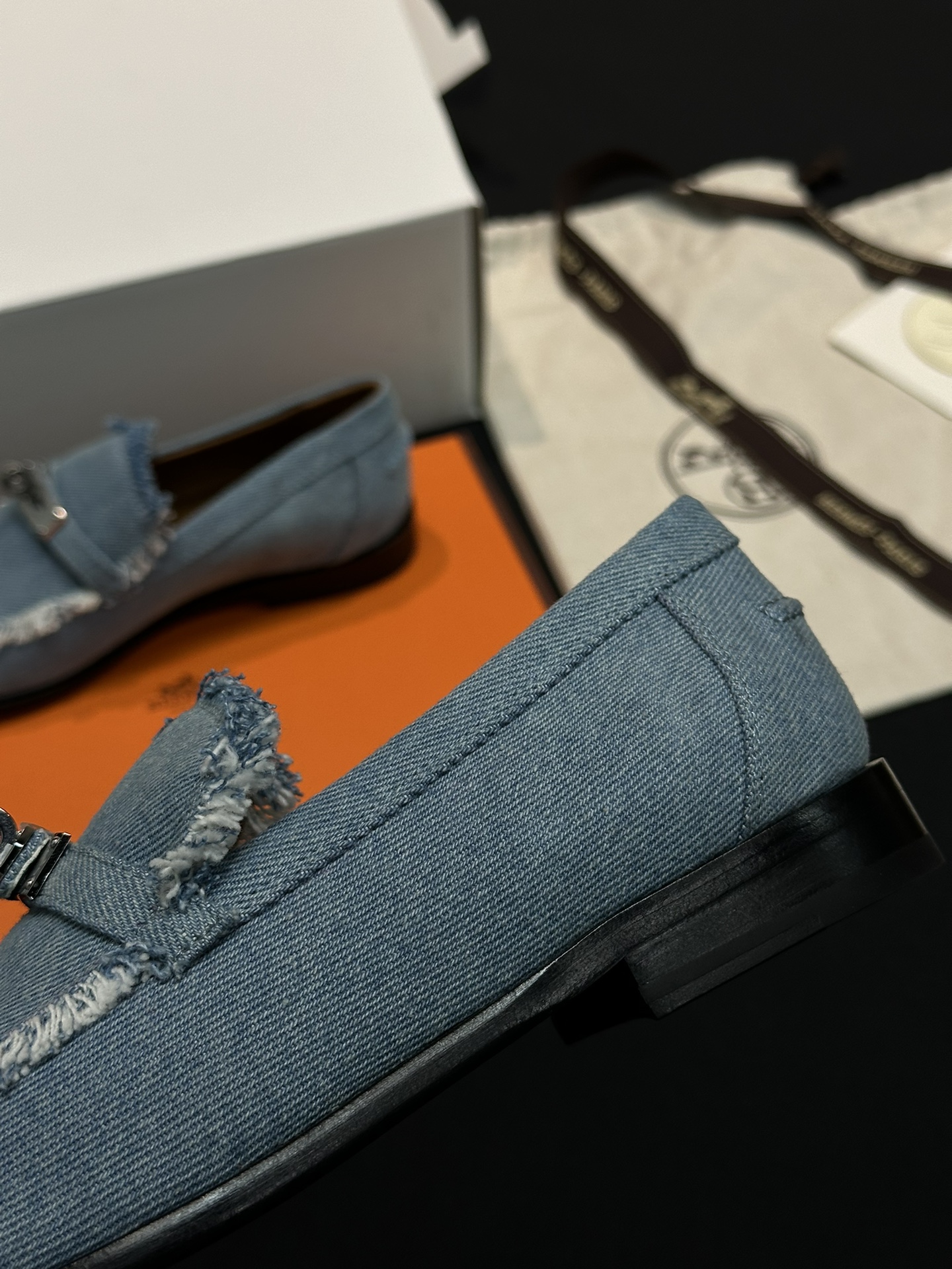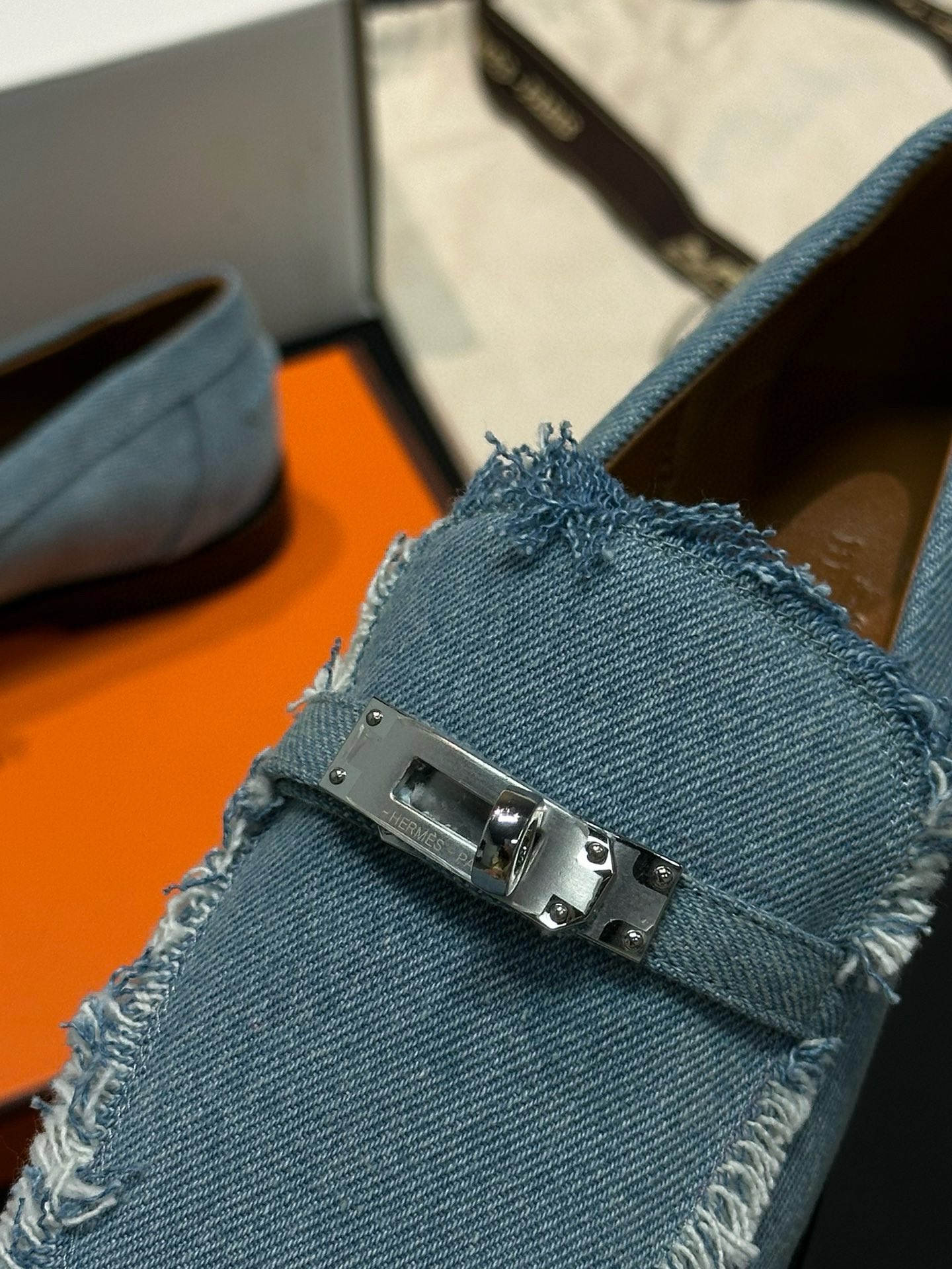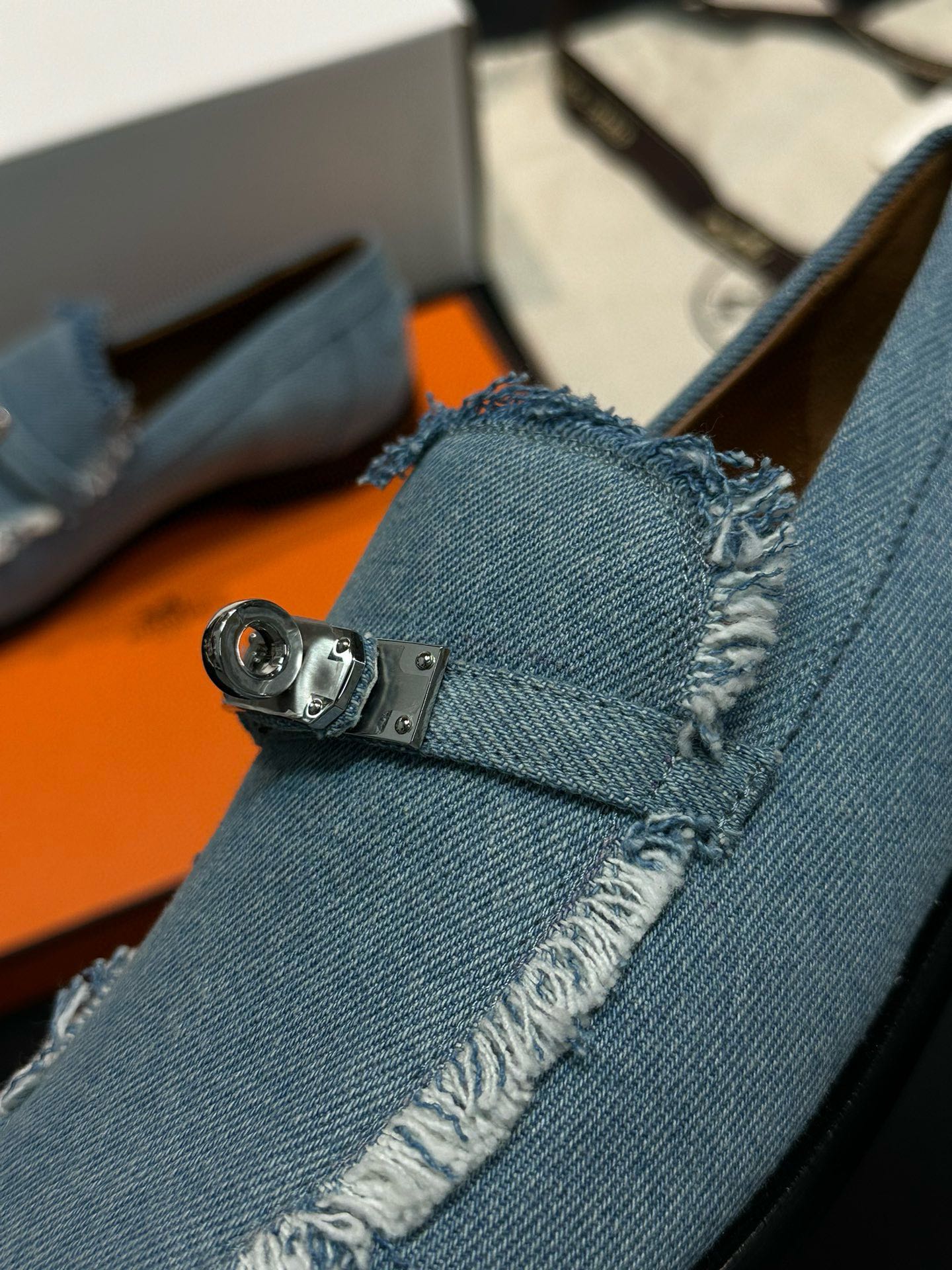 This Hermès shoes showcases the brand's exceptional craftsmanship and attention to detail. Crafted from premium denim, this piece combines timeless luxury with modern style.