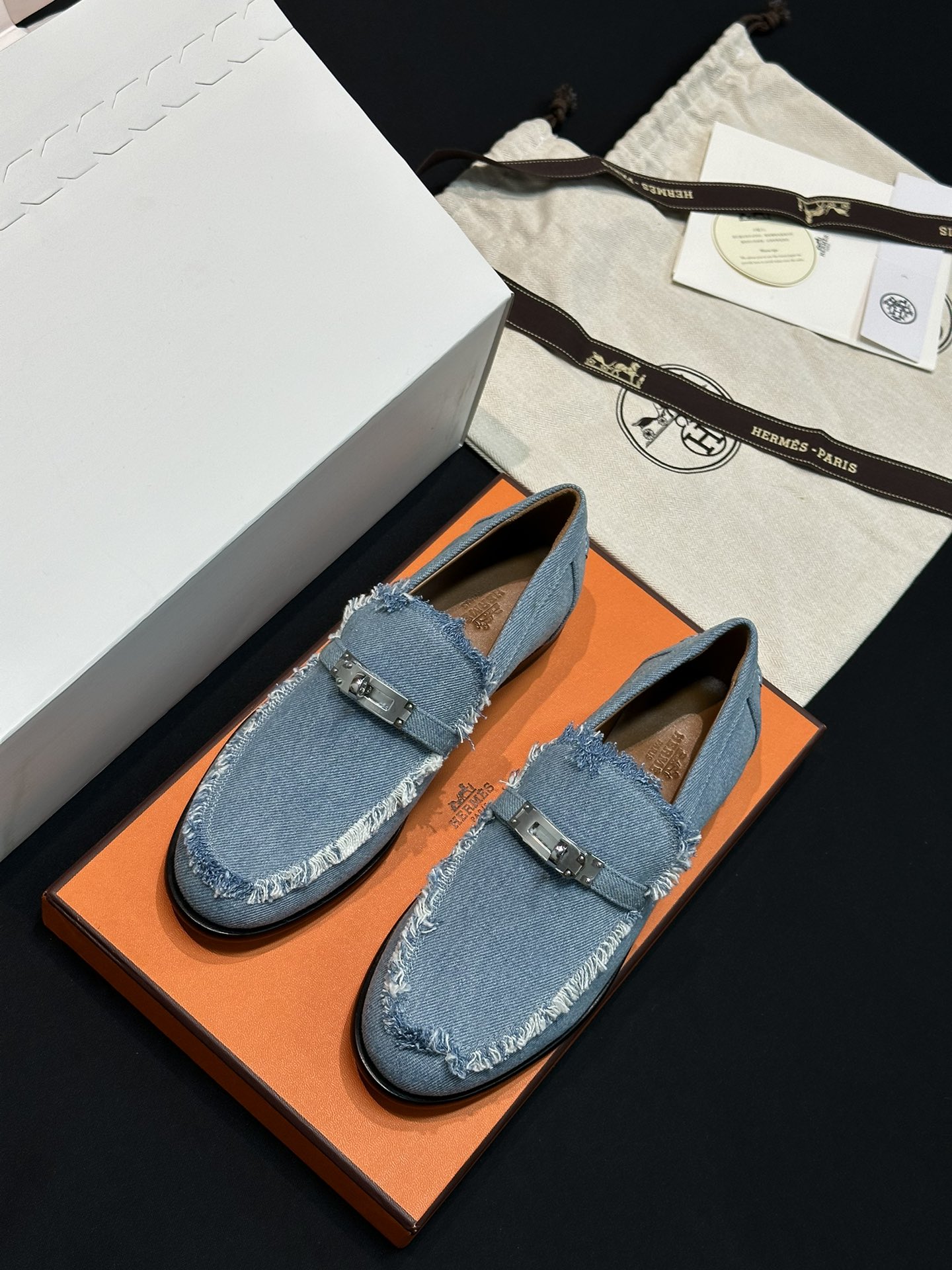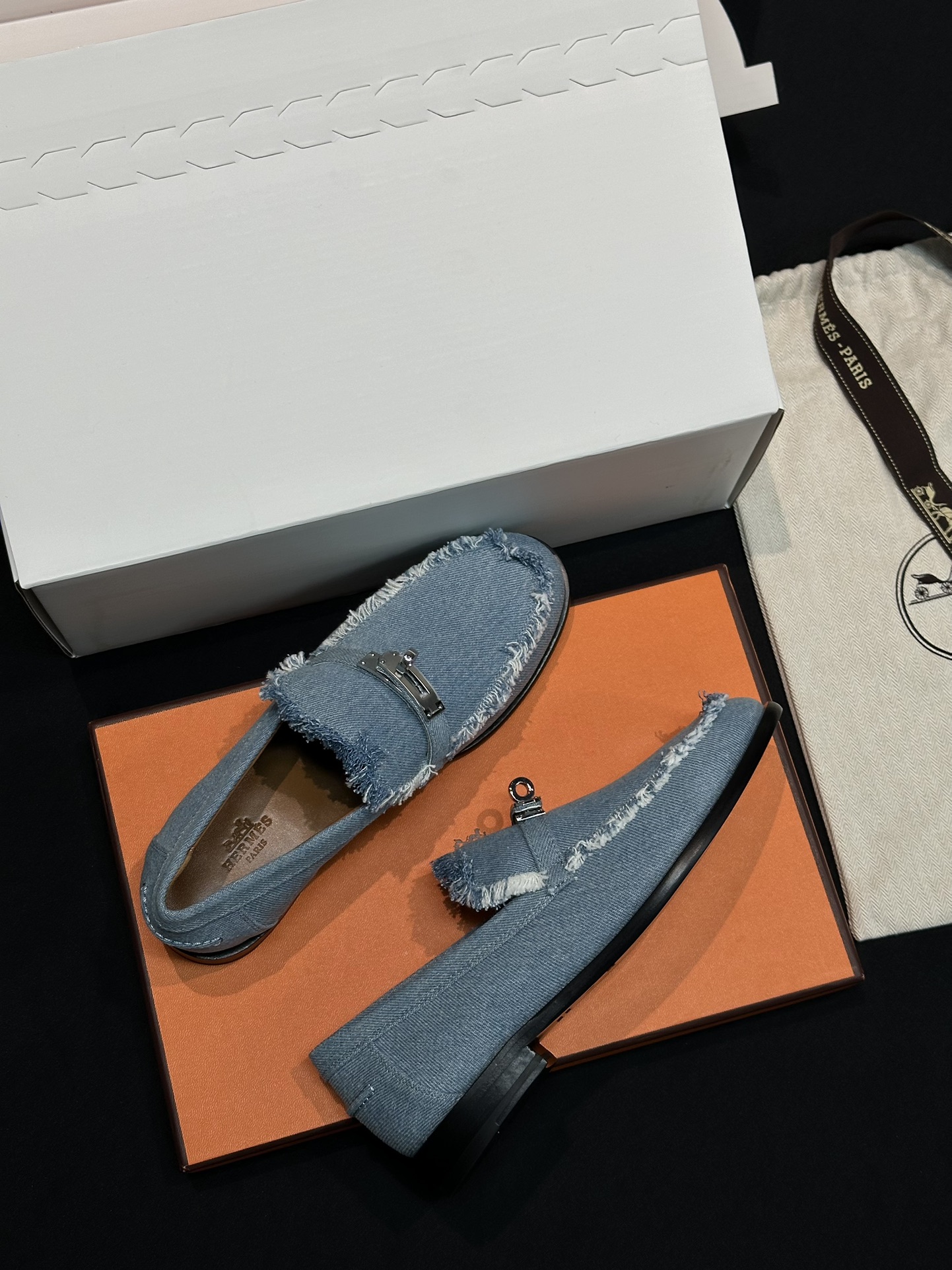 NIGO Hermes Women's Four Seasons Comfortable Solid Color Denim Loafers Shoes #nigo74354