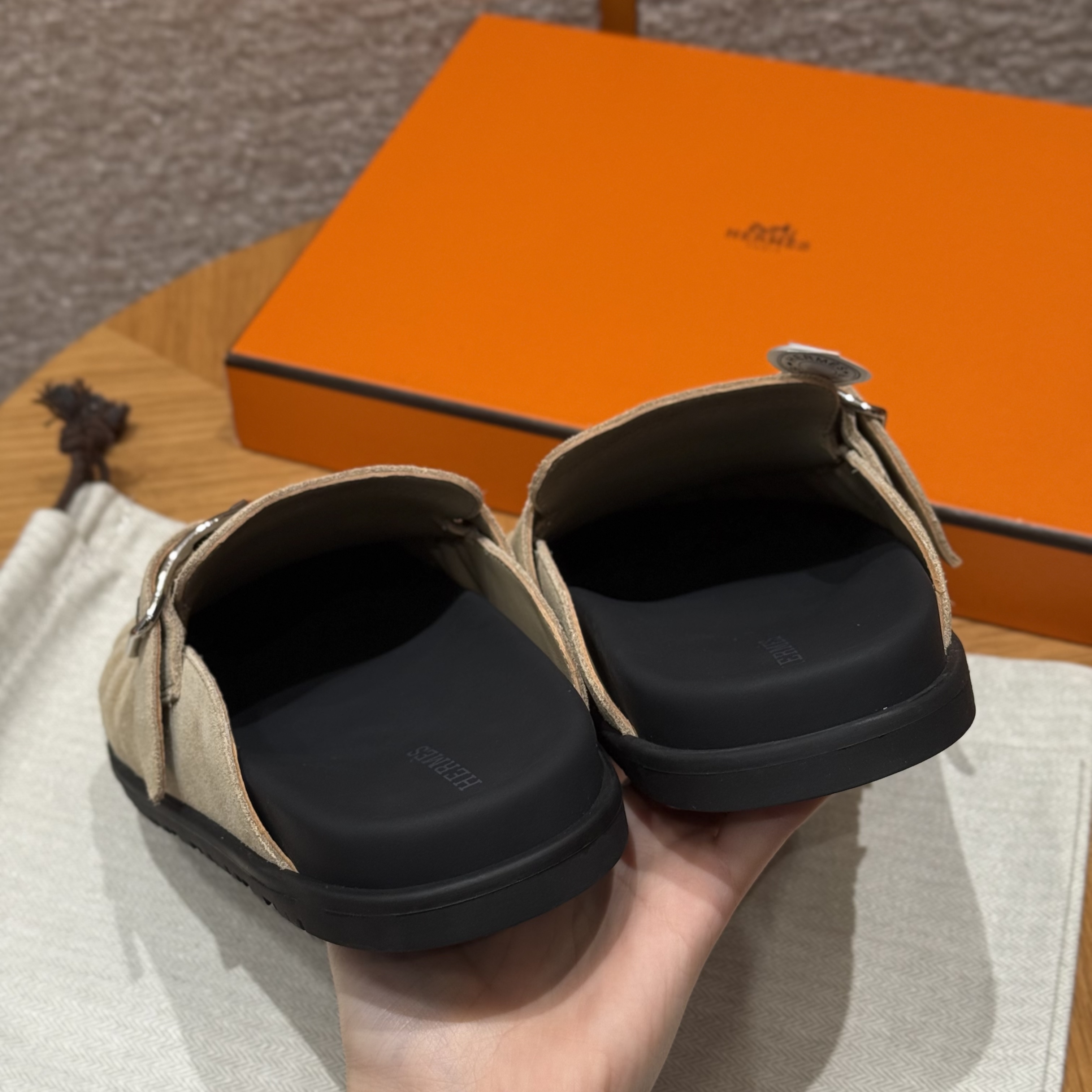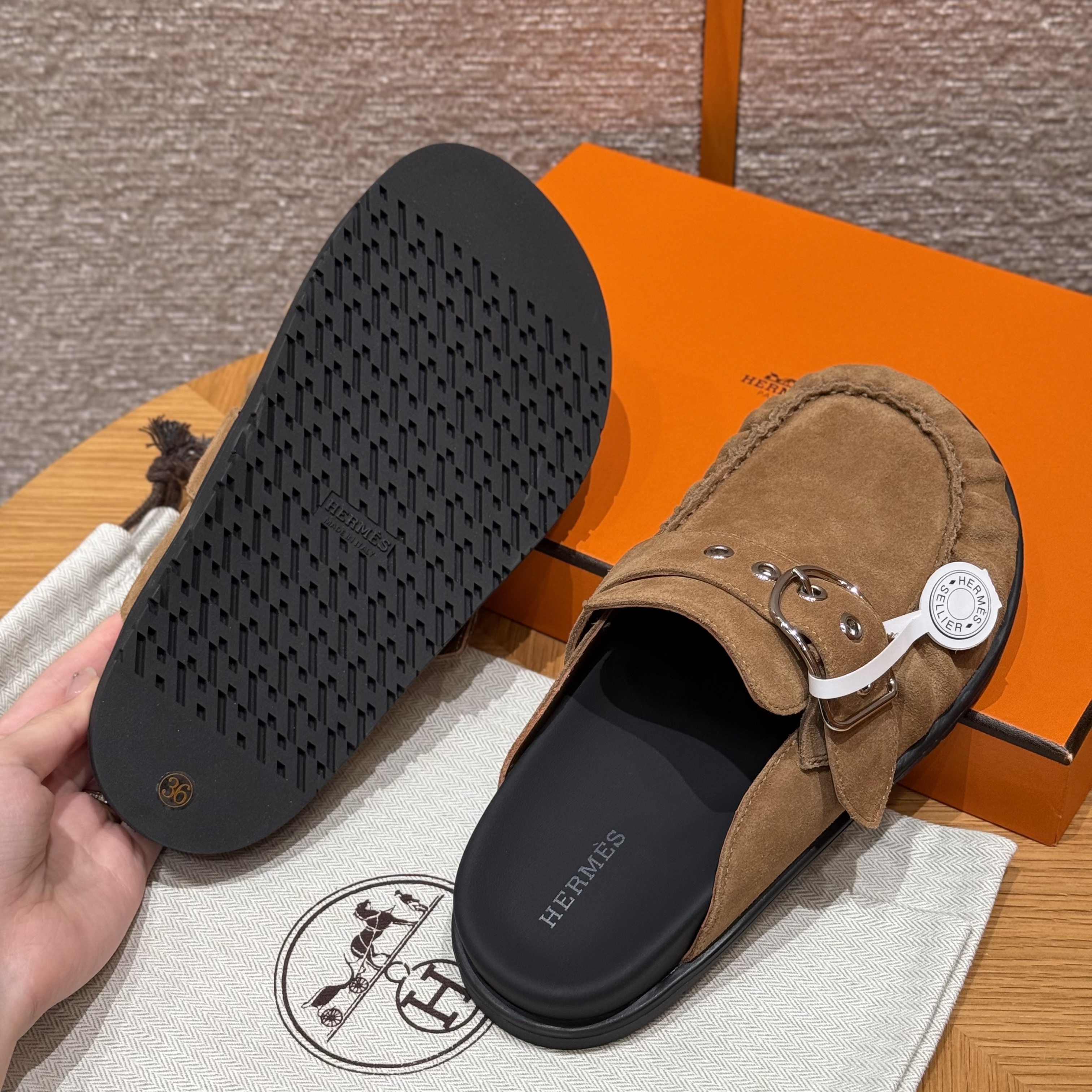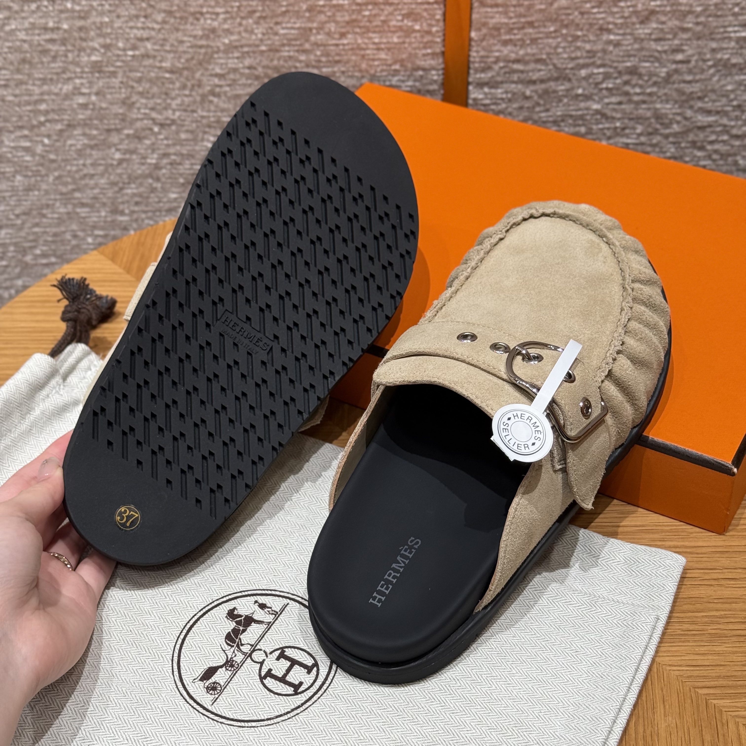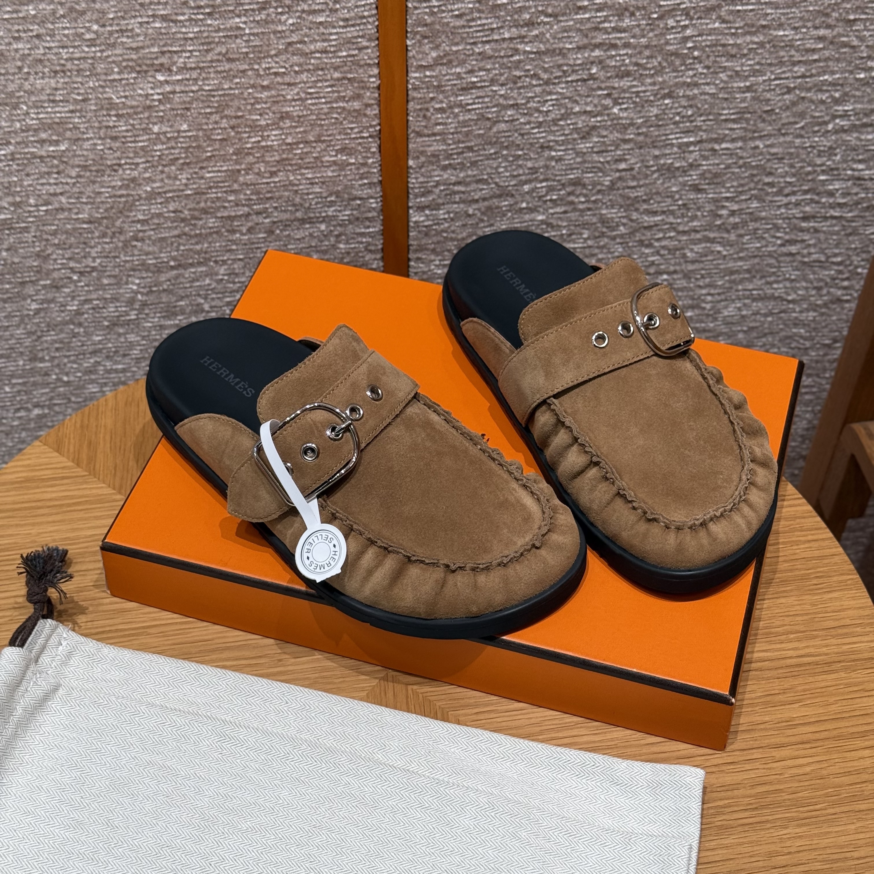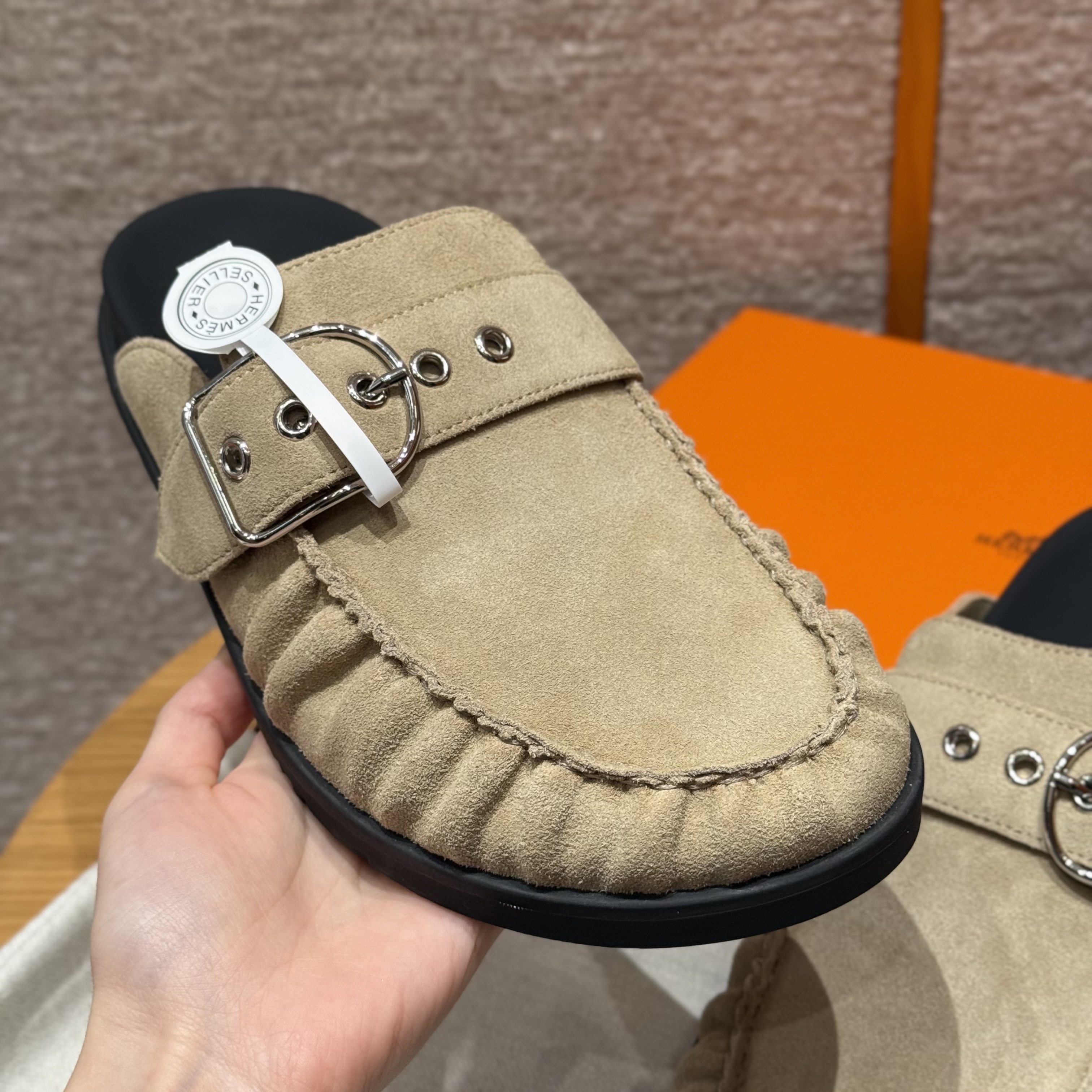 NIGO Hermes Women's Key Mule Shoes Suede Rubber Sole Silver Buckle Round Toe Slippers Summer Solid Color Casual Shoes Ngvp #nigo2129