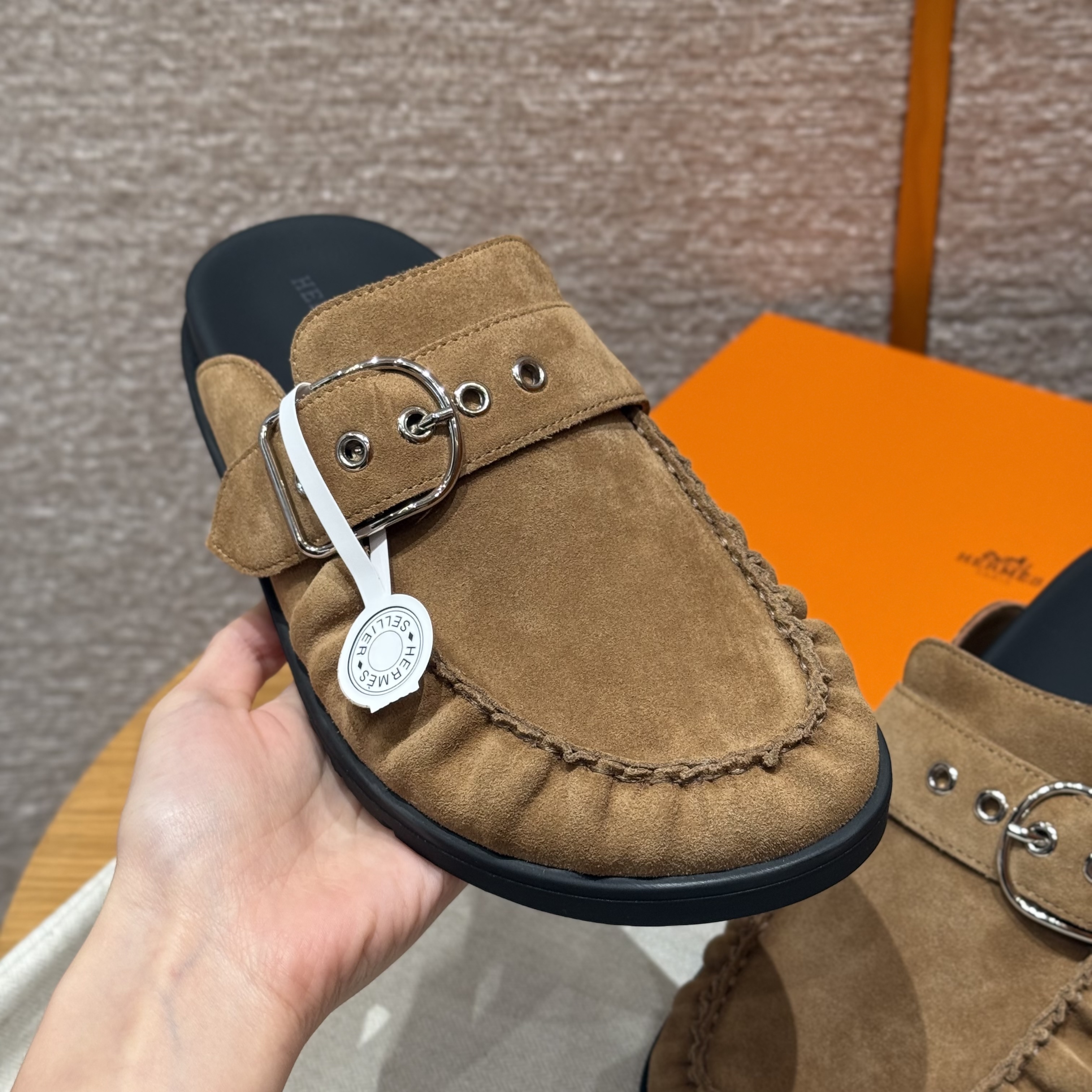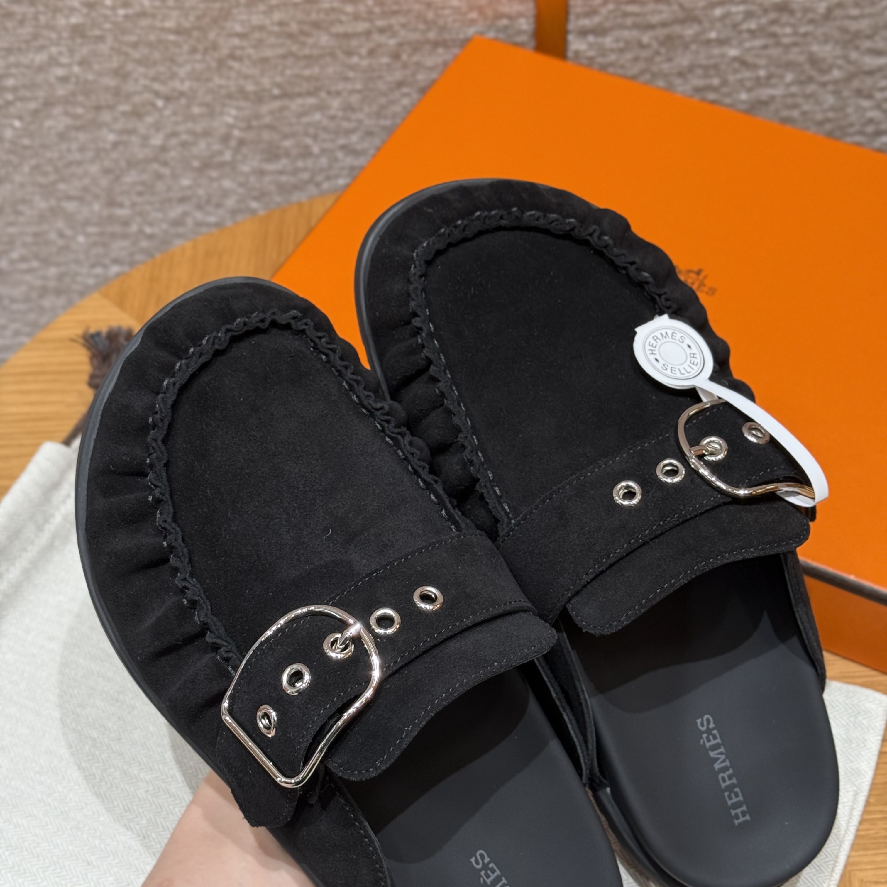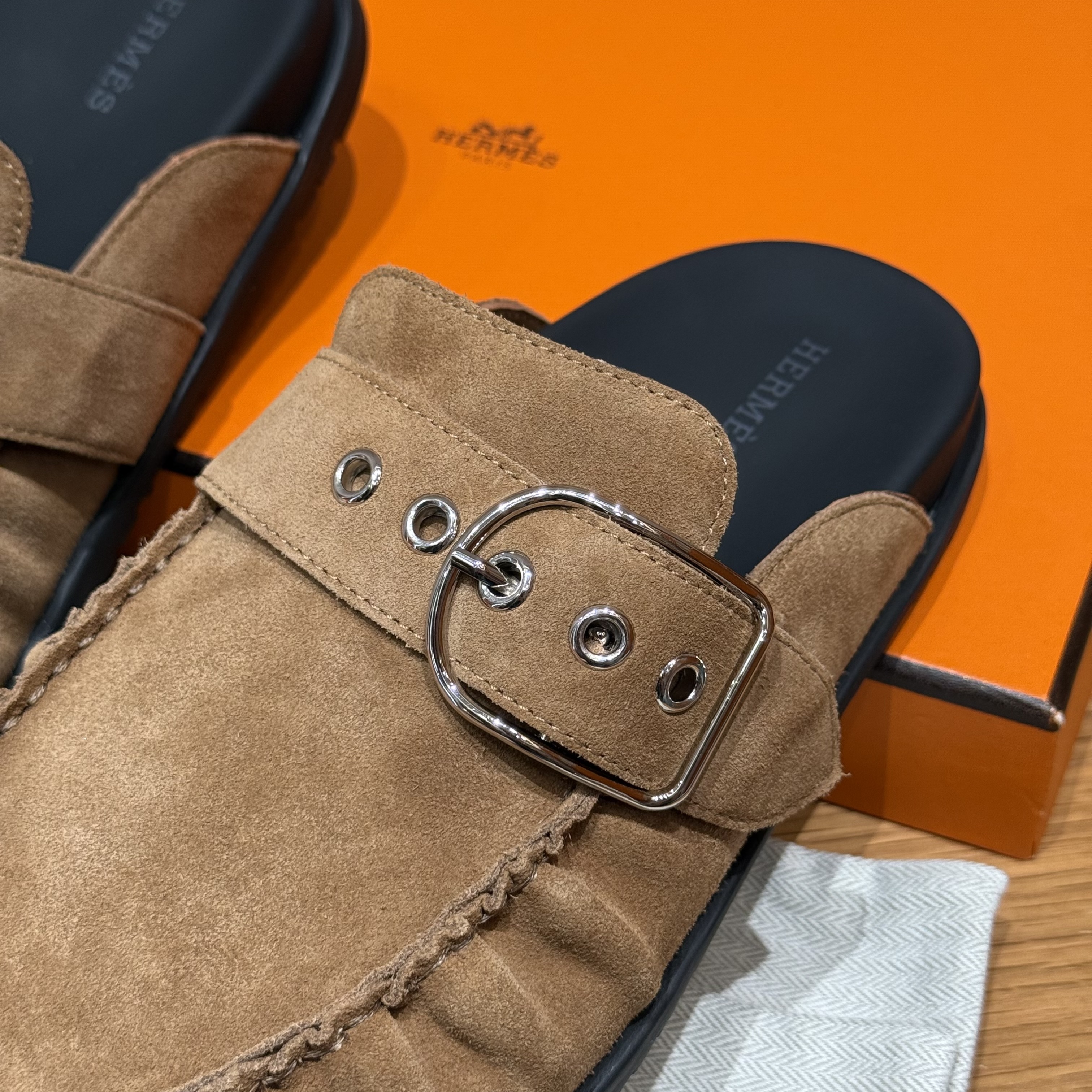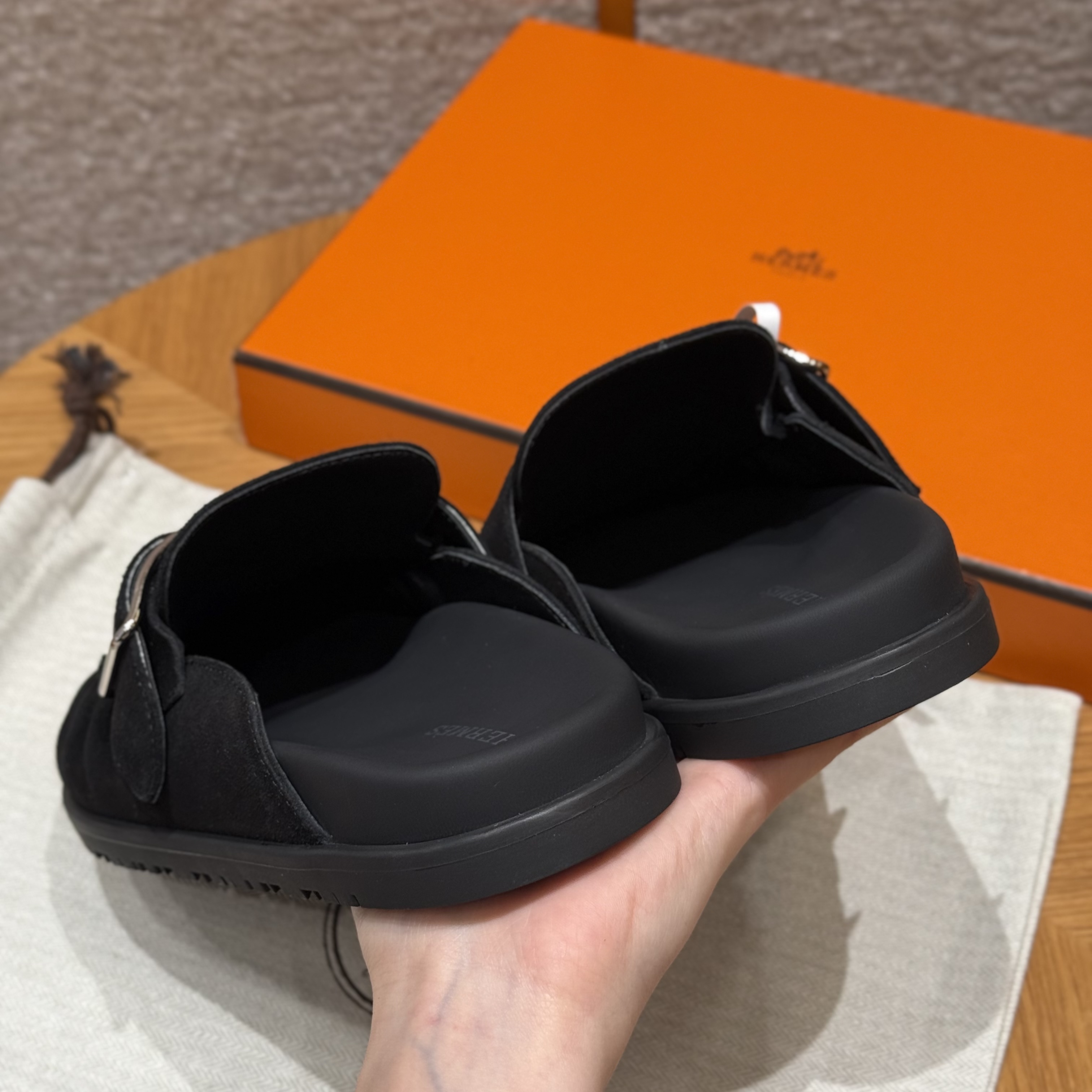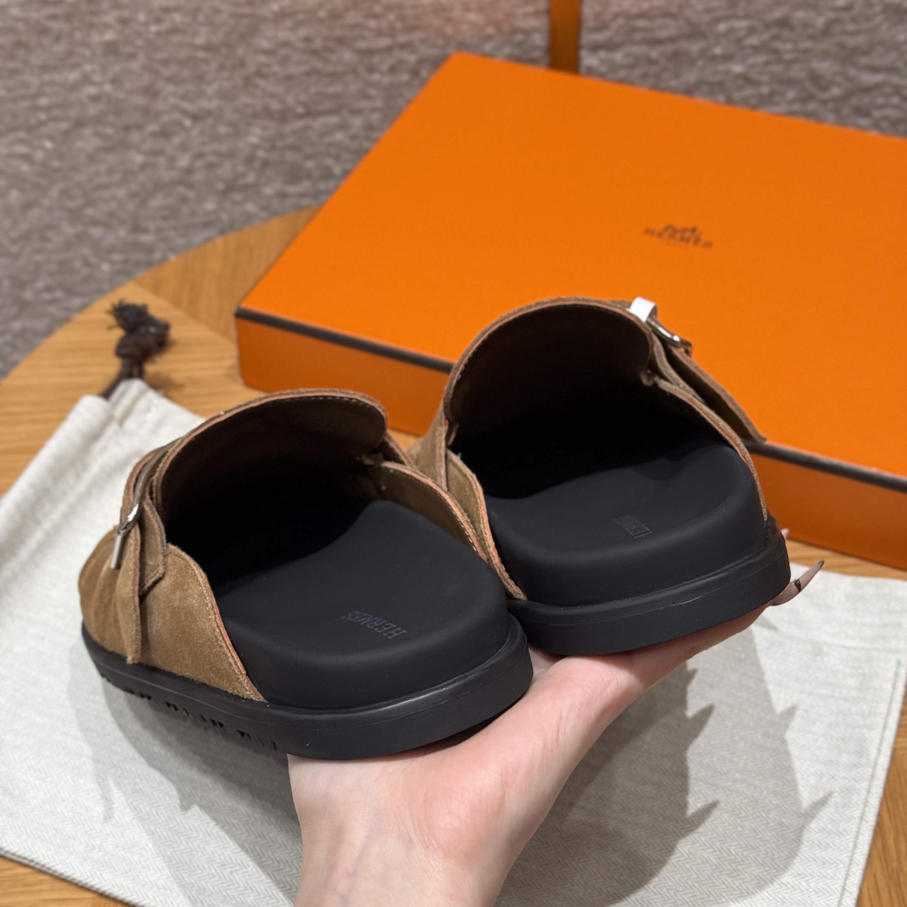 NIGO Hermes Women's Key Mule Shoes Suede Rubber Sole Silver Buckle Round Toe Slippers Summer Solid Color Casual Shoes Ngvp #nigo2129