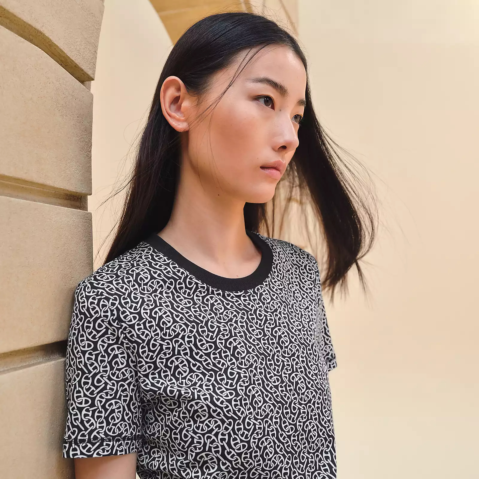 NIGO Hermes Women's Naoussa Chaine Slim Fit T-Shirt Graphic Print Colorblocking Fashion Casual Top #nigo71353