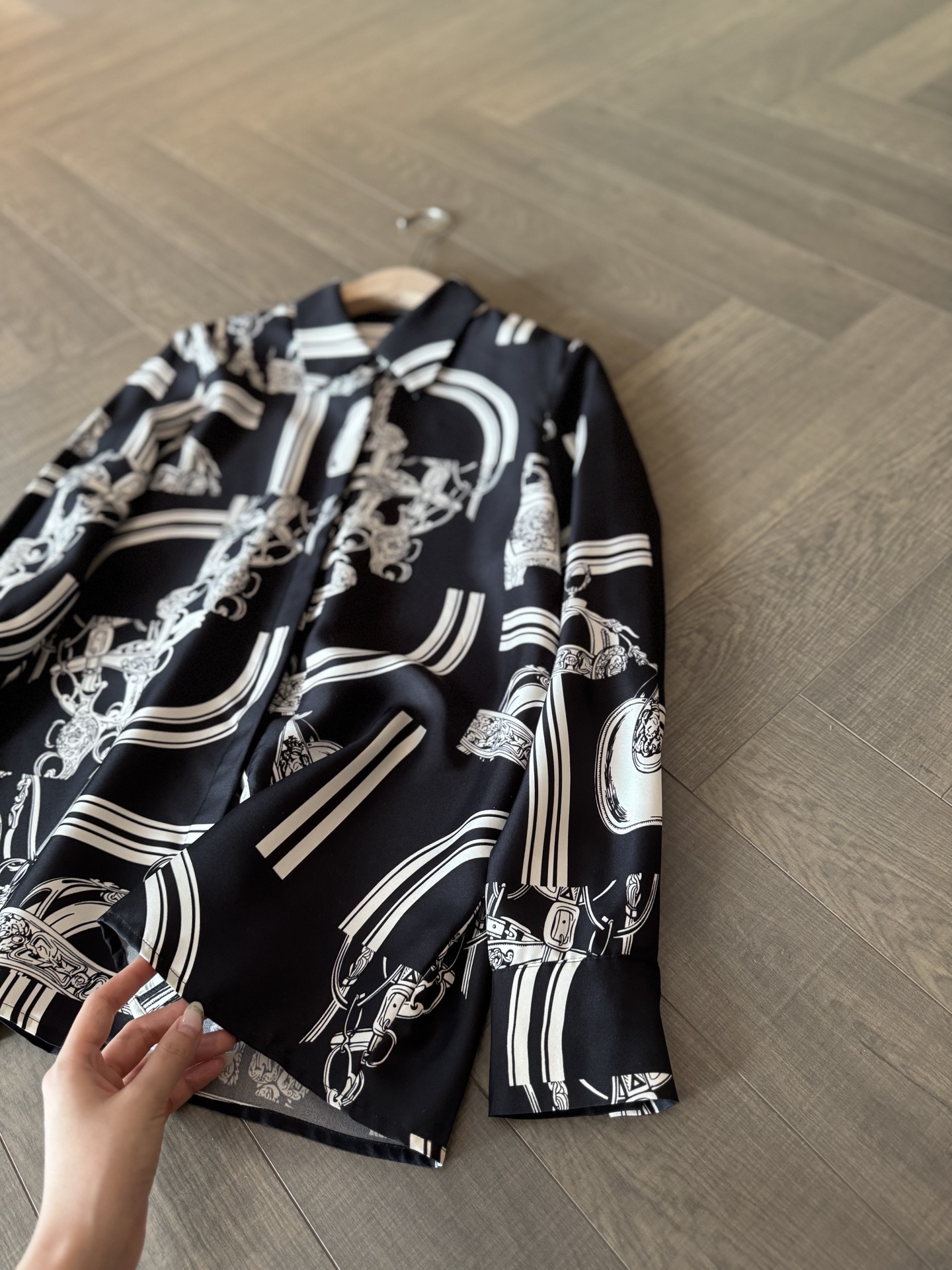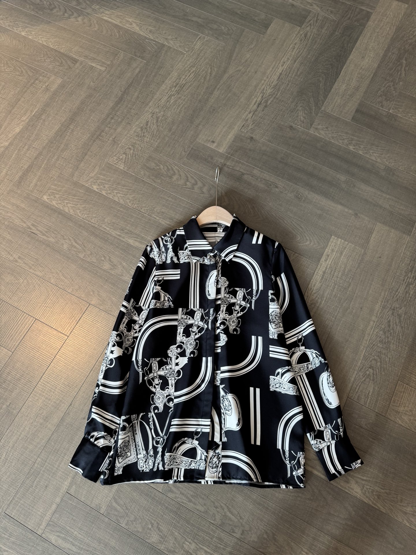 NIGO Hermes Women's Pattern Printed Lapel Long Sleeve Solid Color Spring And Autumn Loose Blouse Silk Shirt Ngvp #nigo2116
