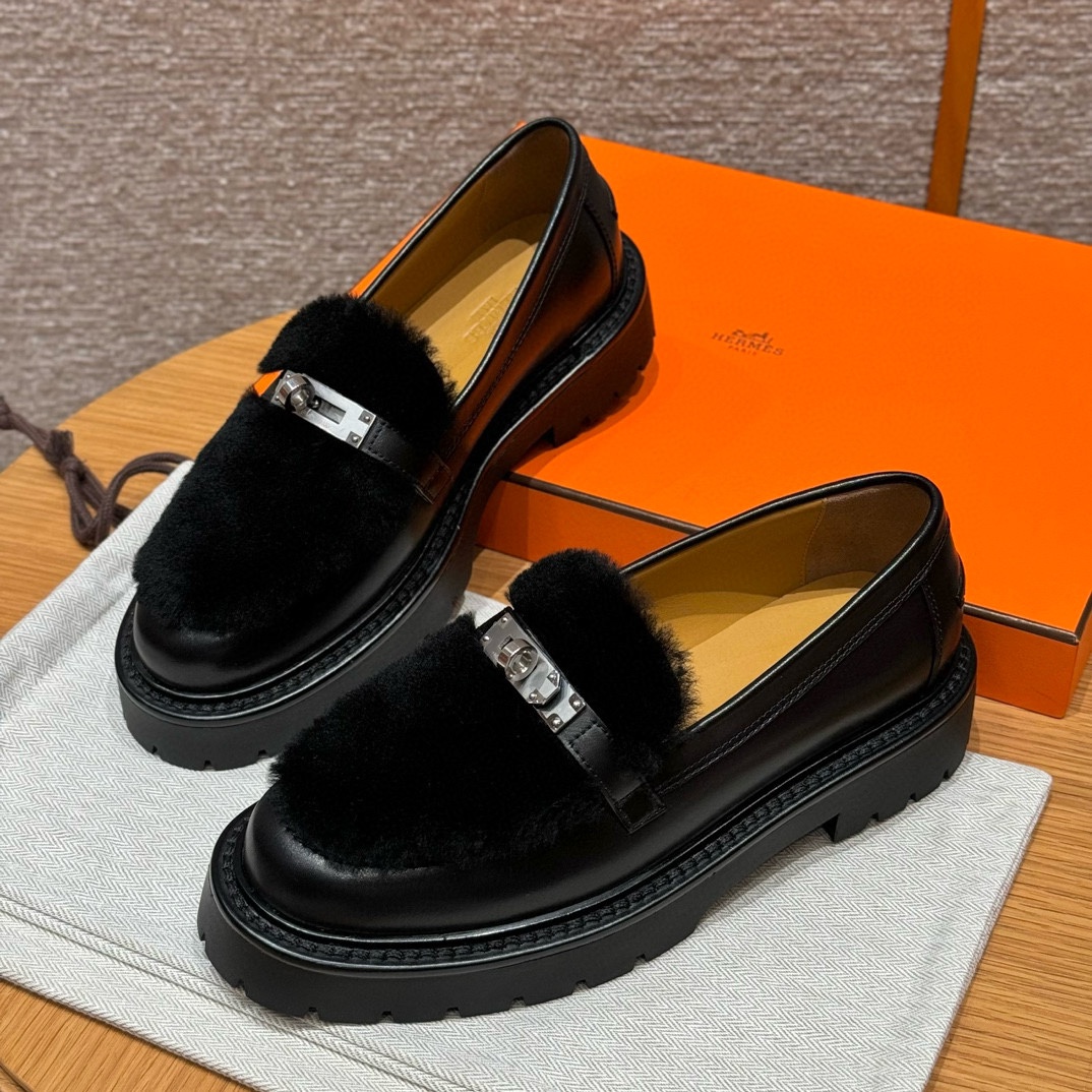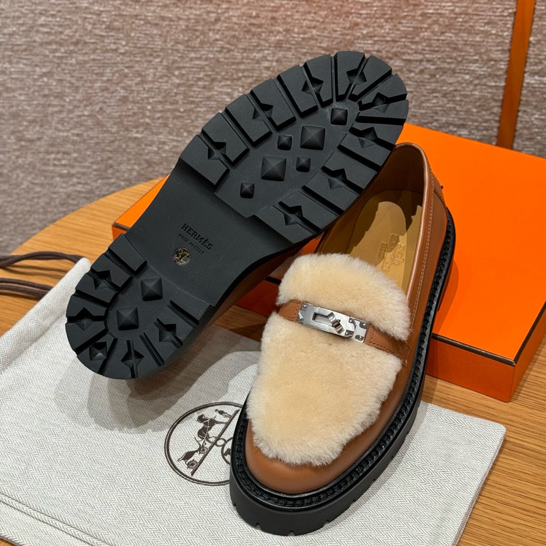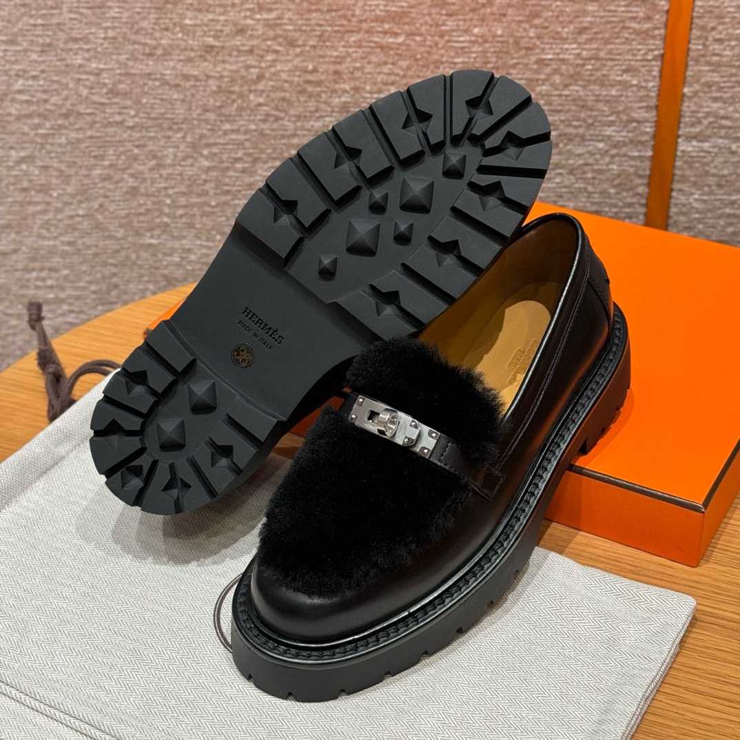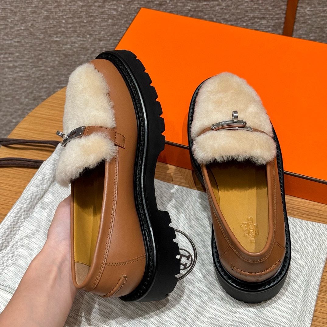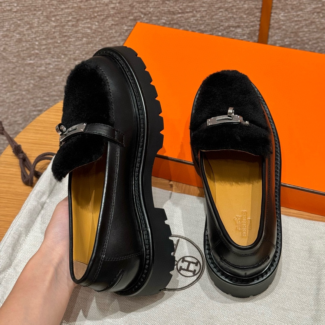 NIGO Hermes Women's Solid Color Cowhide Thick Sole Functional Buckle Loafers Shoes #nigo74463