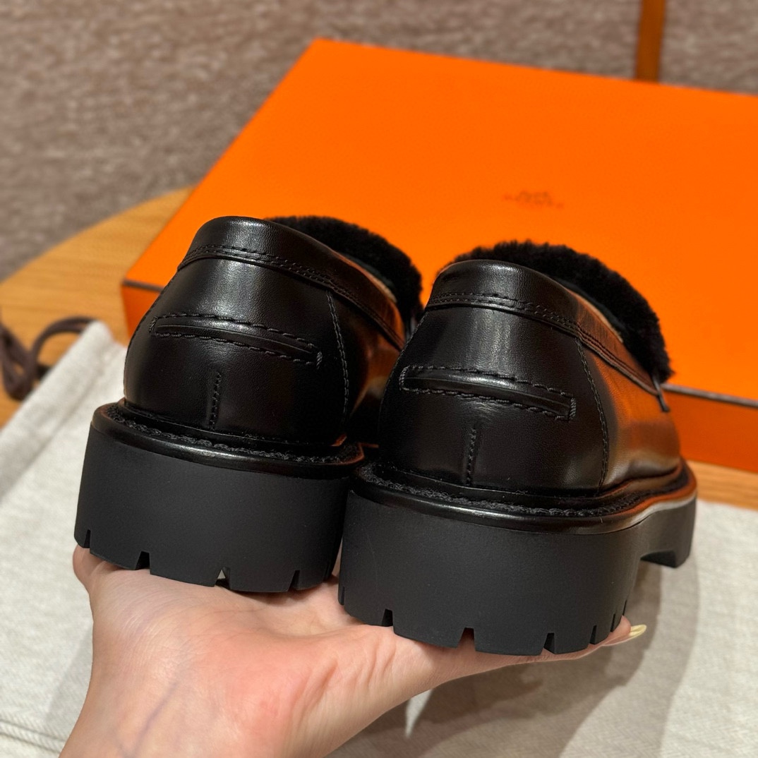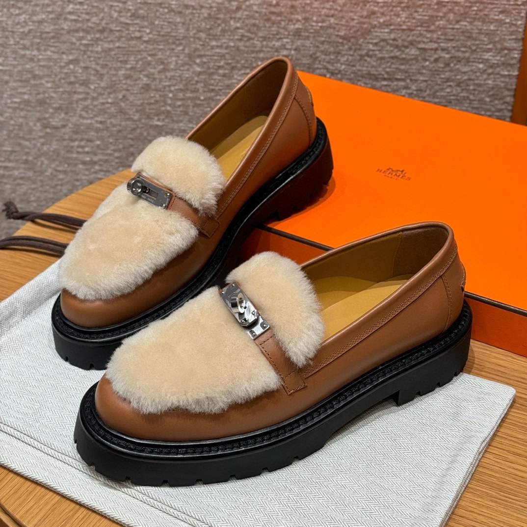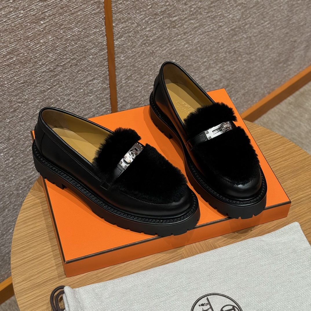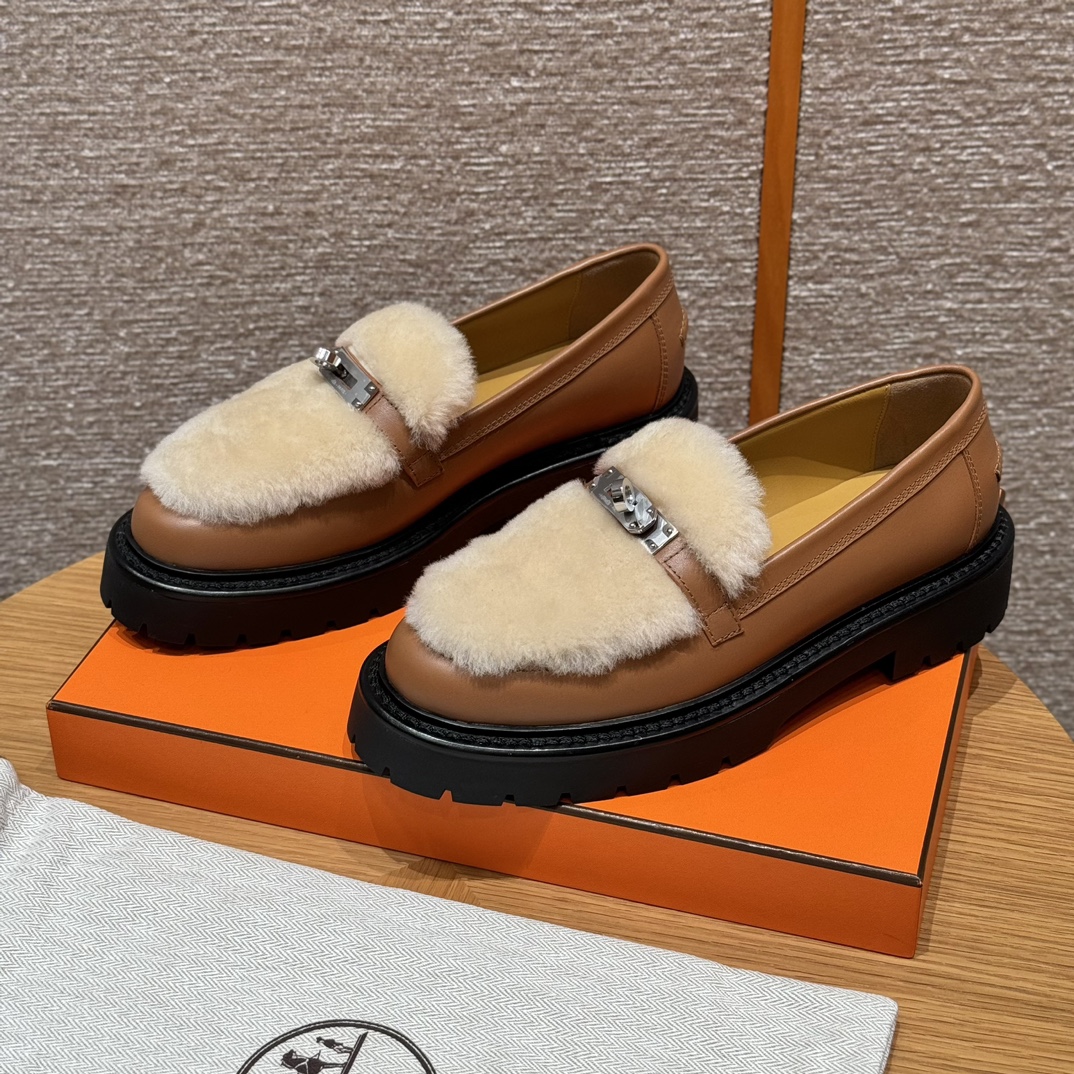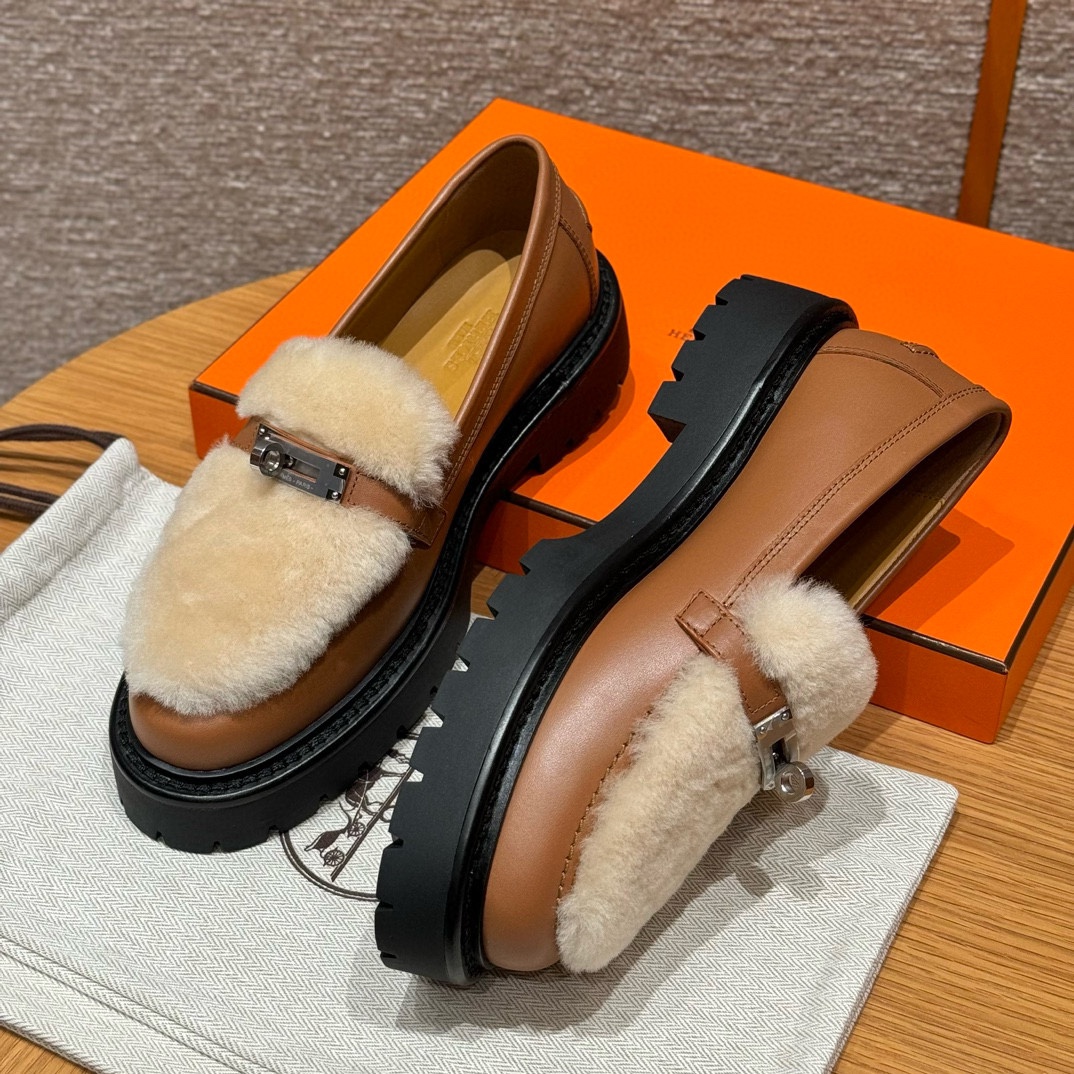 NIGO Hermes Women's Solid Color Cowhide Thick Sole Functional Buckle Loafers Shoes #nigo74463