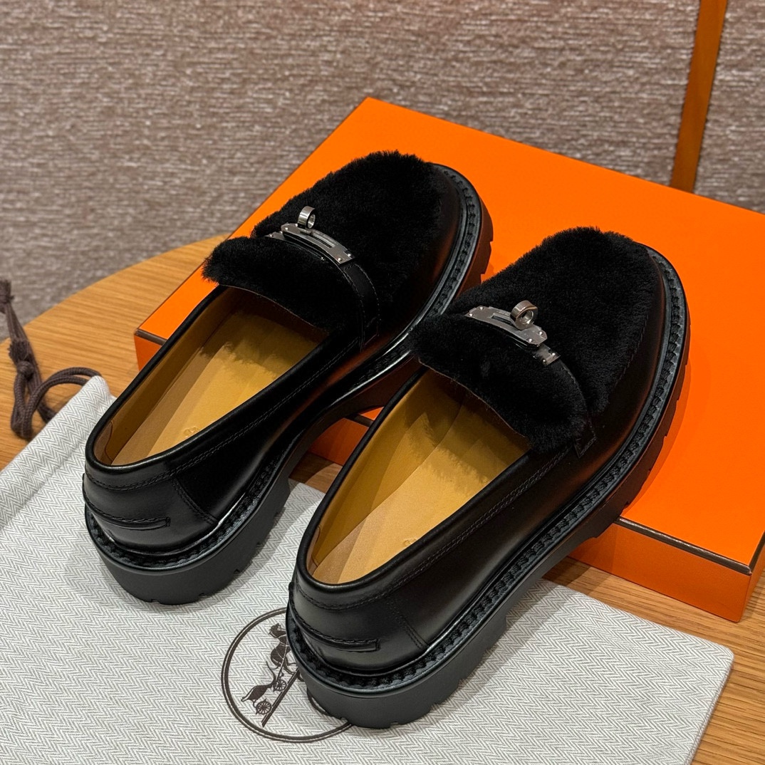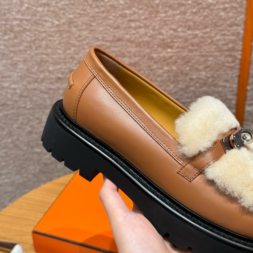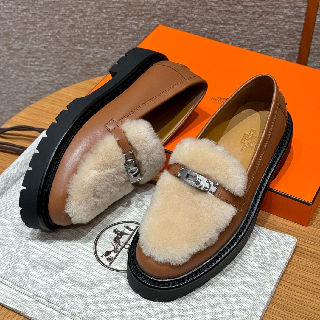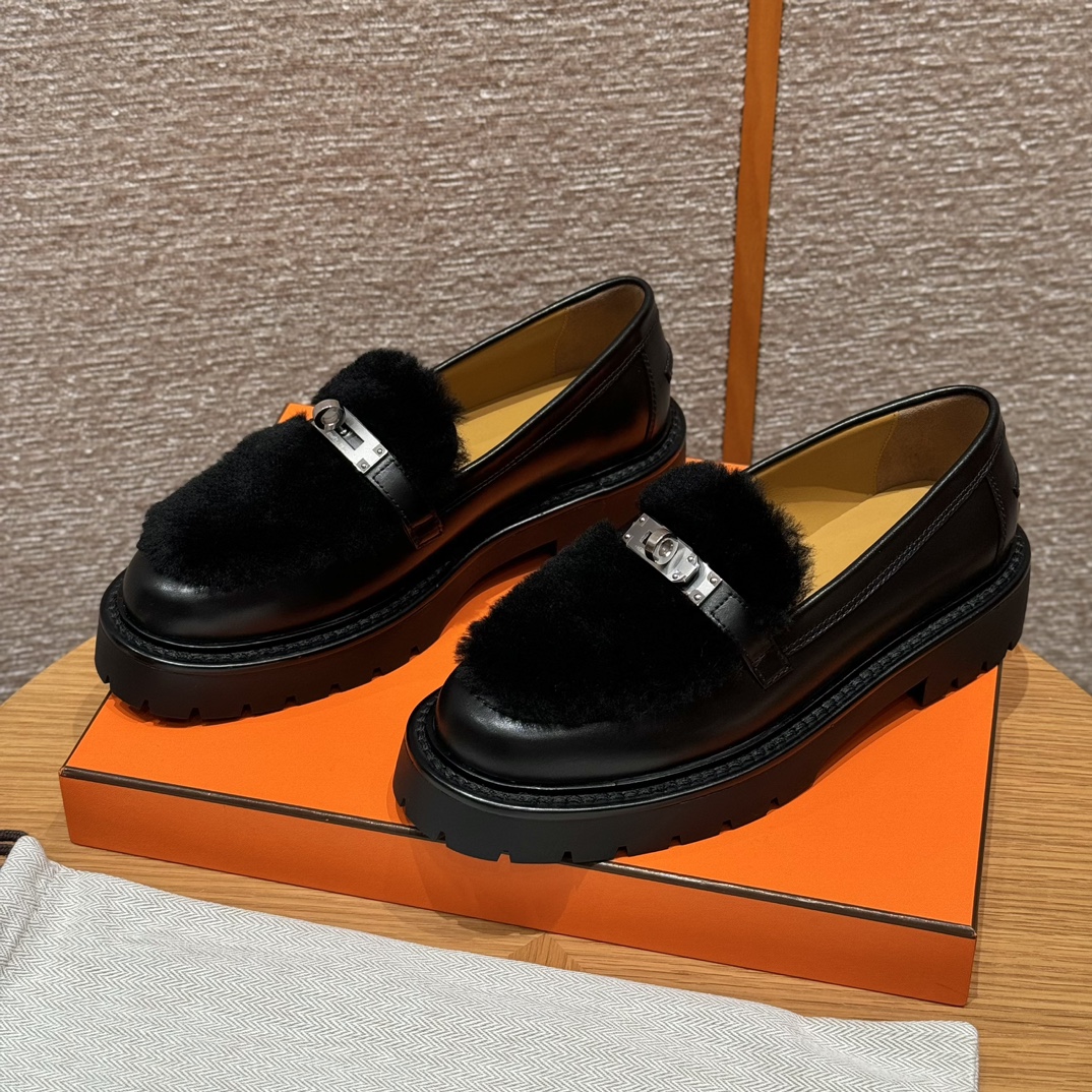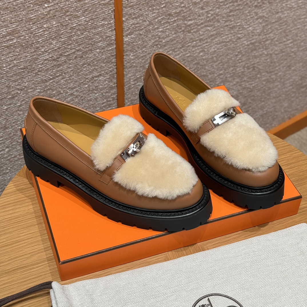 NIGO Hermes Women's Solid Color Cowhide Thick Sole Functional Buckle Loafers Shoes #nigo74463