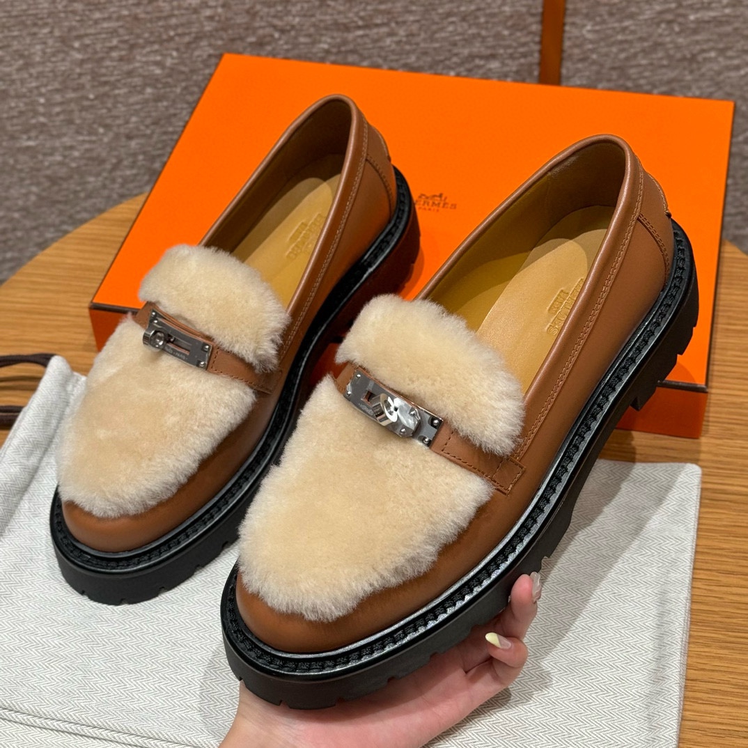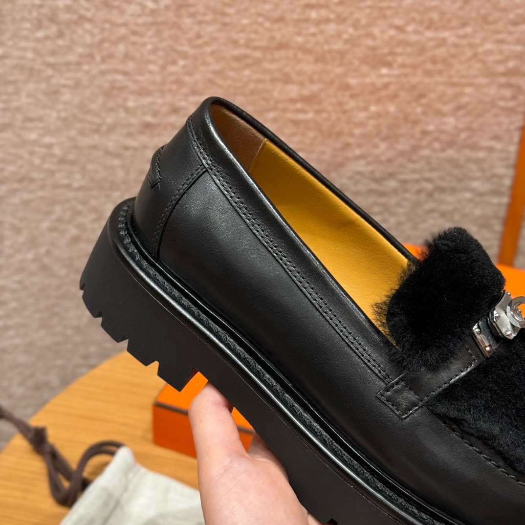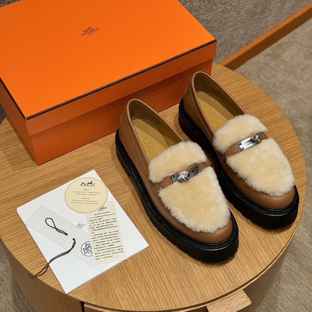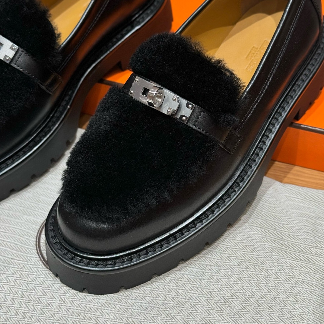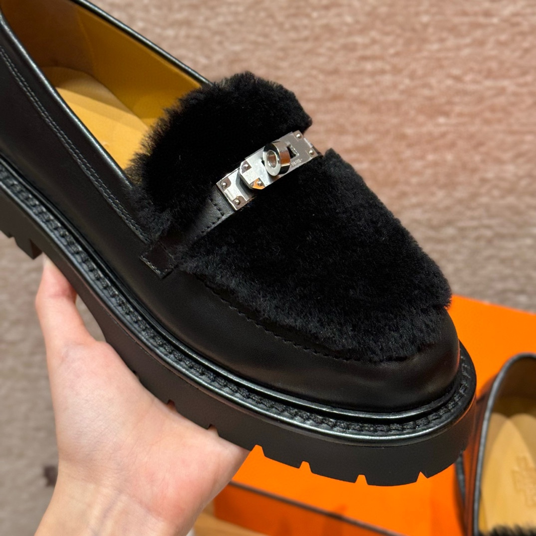 NIGO Hermes Women's Solid Color Cowhide Thick Sole Functional Buckle Loafers Shoes #nigo74463