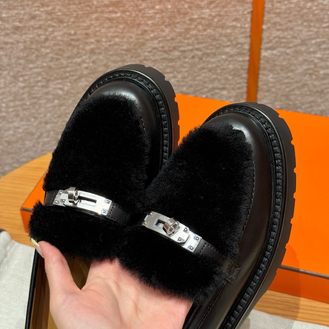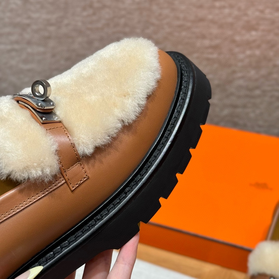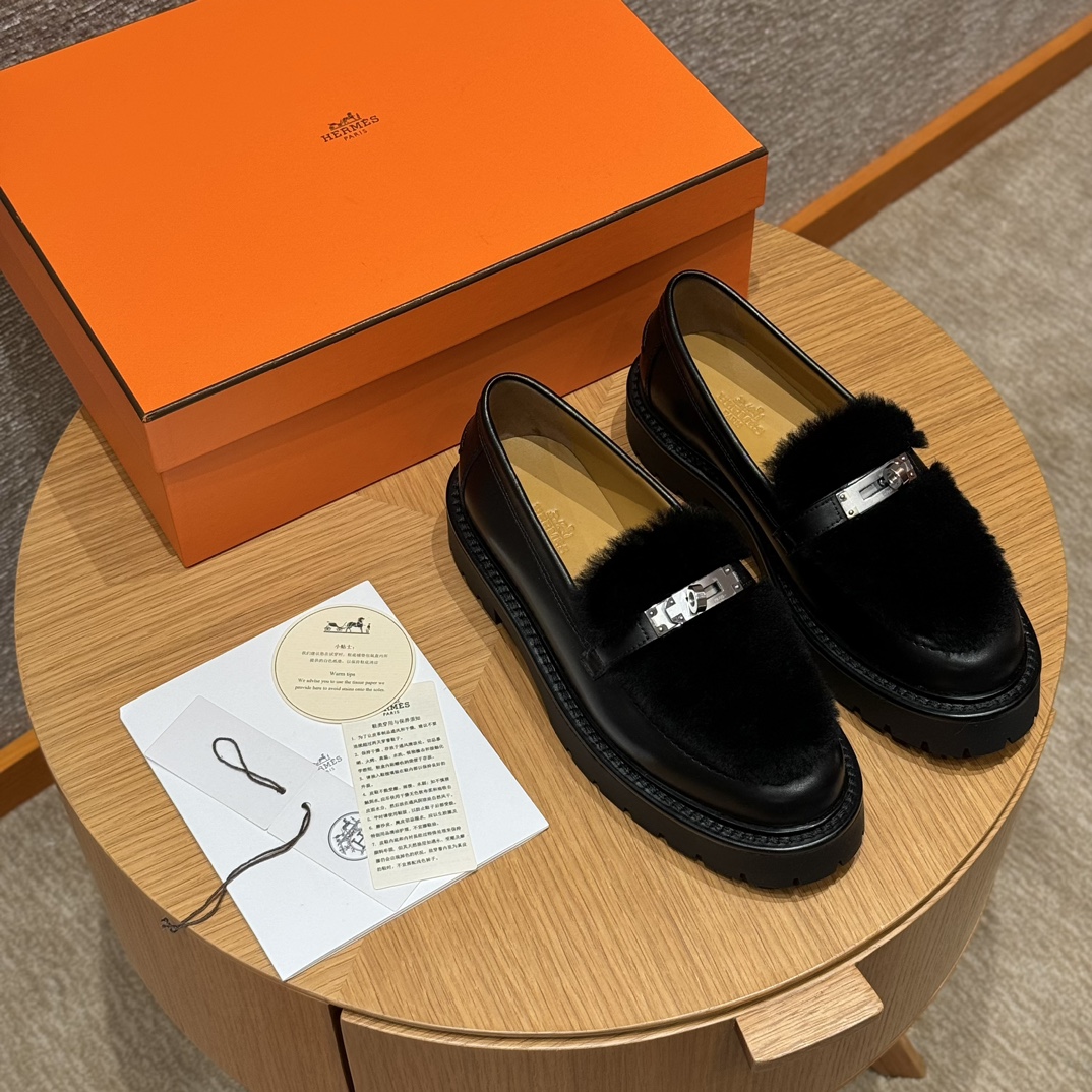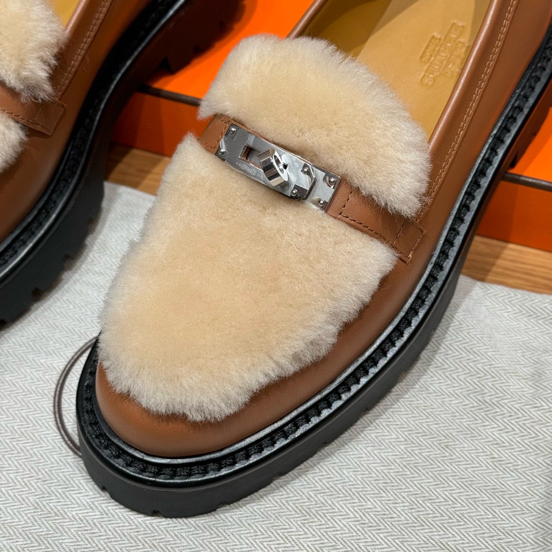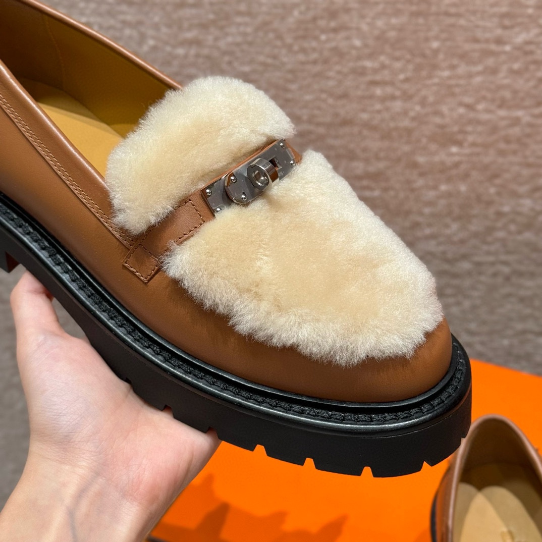 NIGO Hermes Women's Solid Color Cowhide Thick Sole Functional Buckle Loafers Shoes #nigo74463