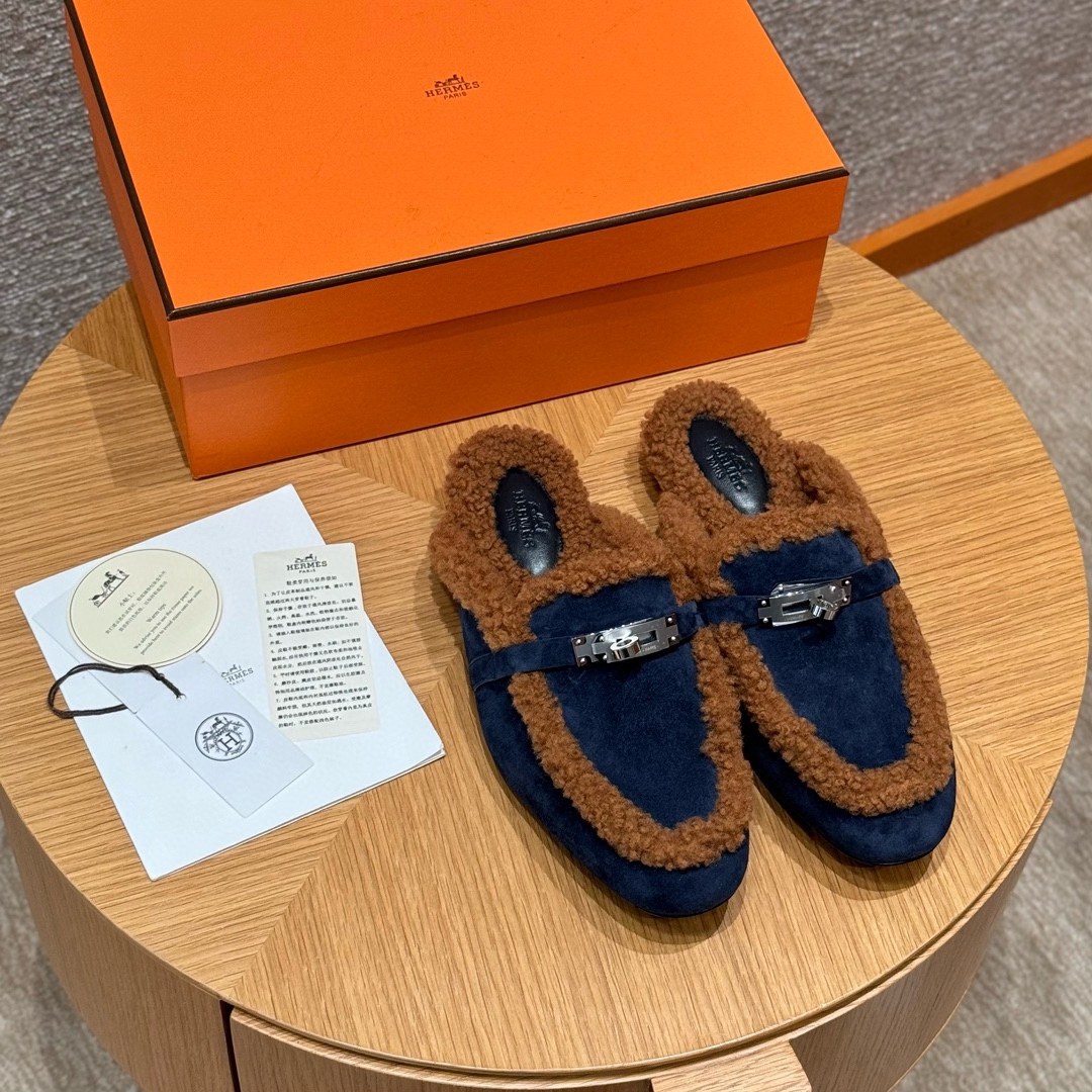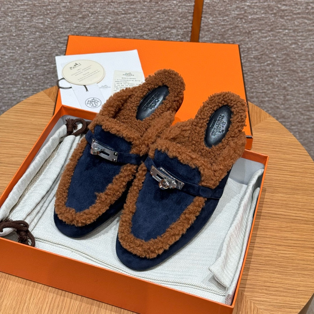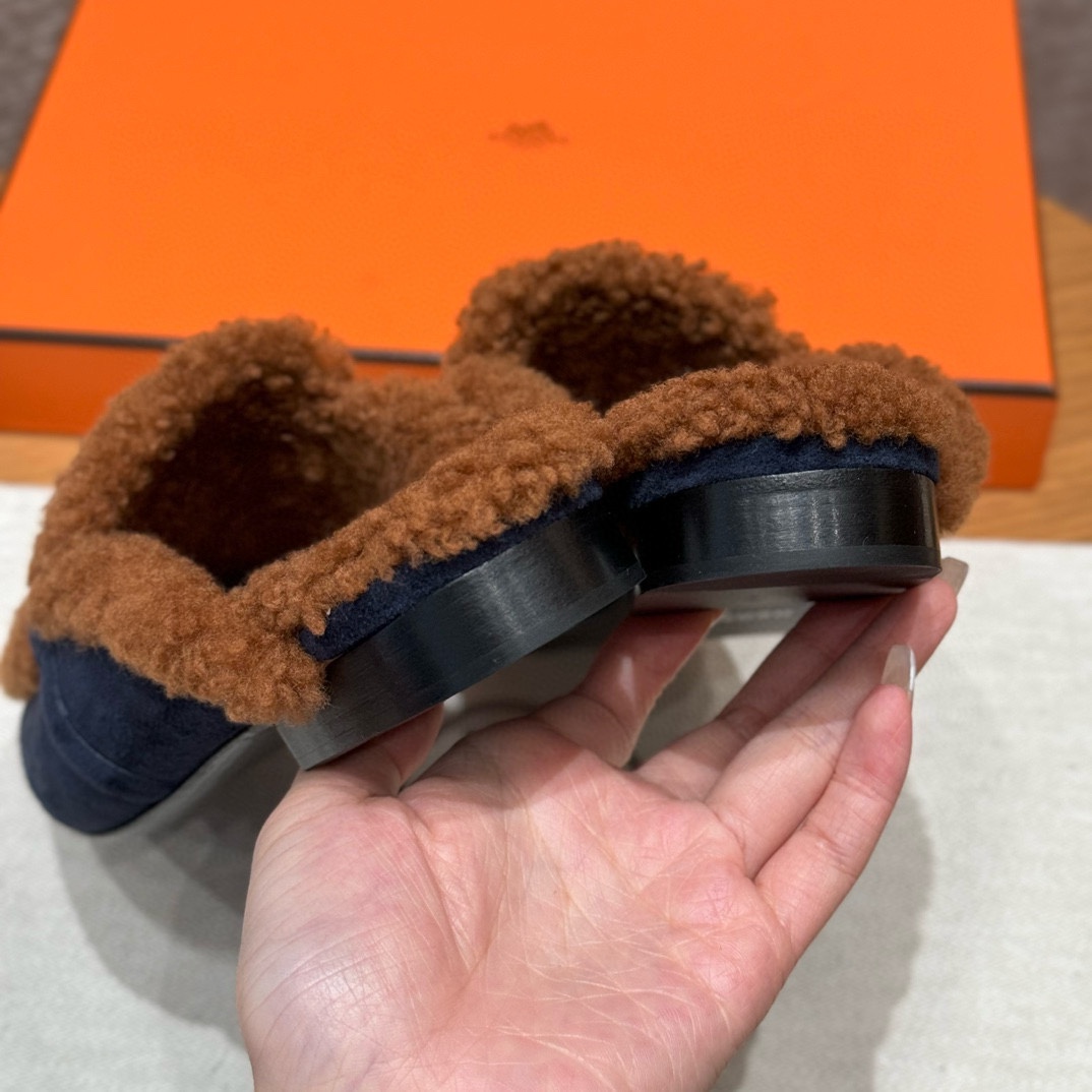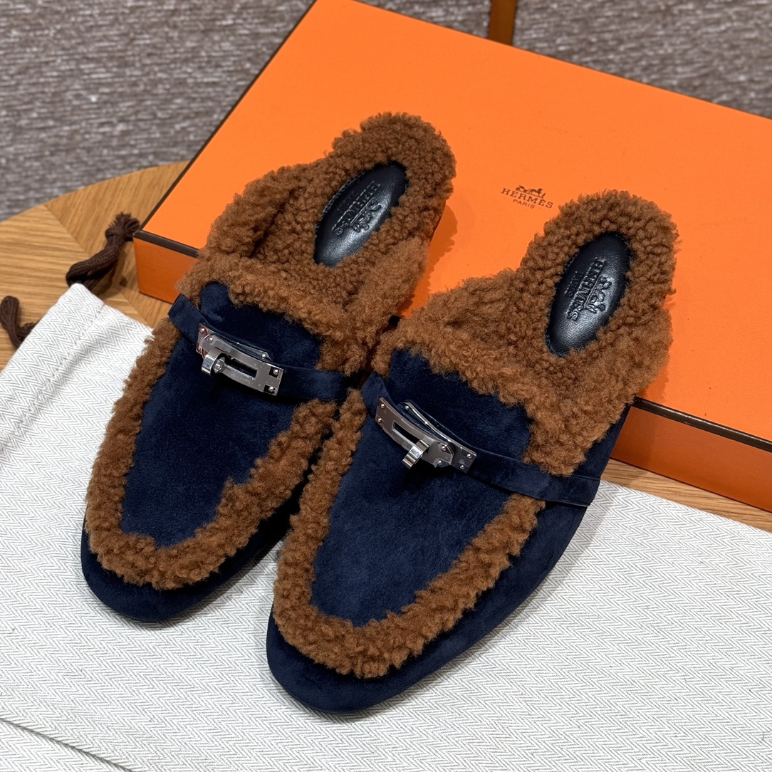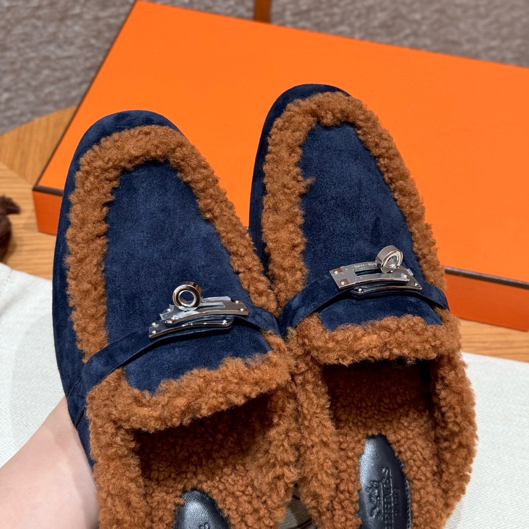 NIGO Hermes Women's Solid Color Suede Round Toe Flat Mule Shoes Slippers #nigo74233