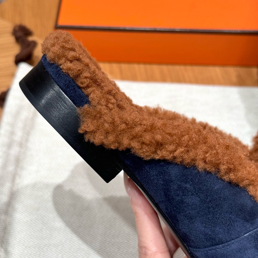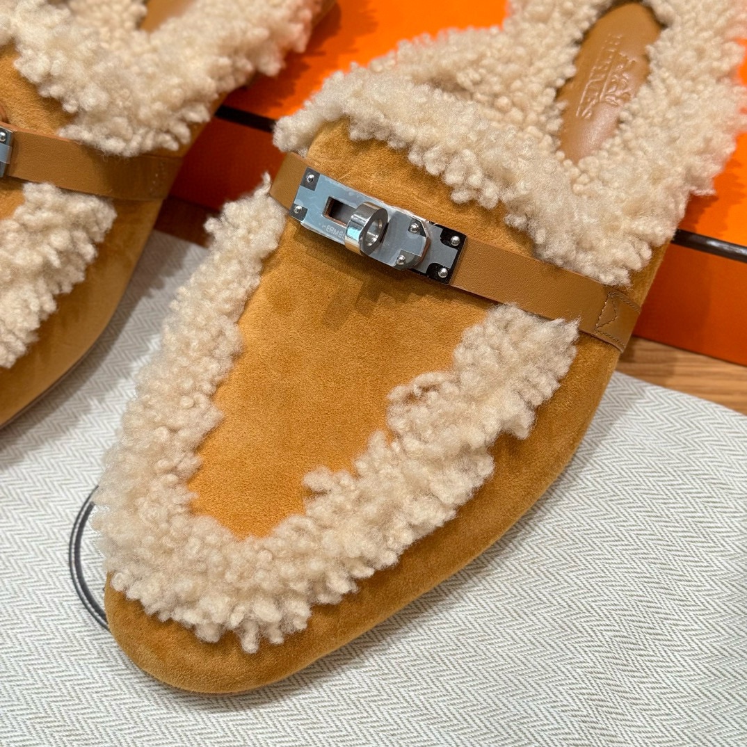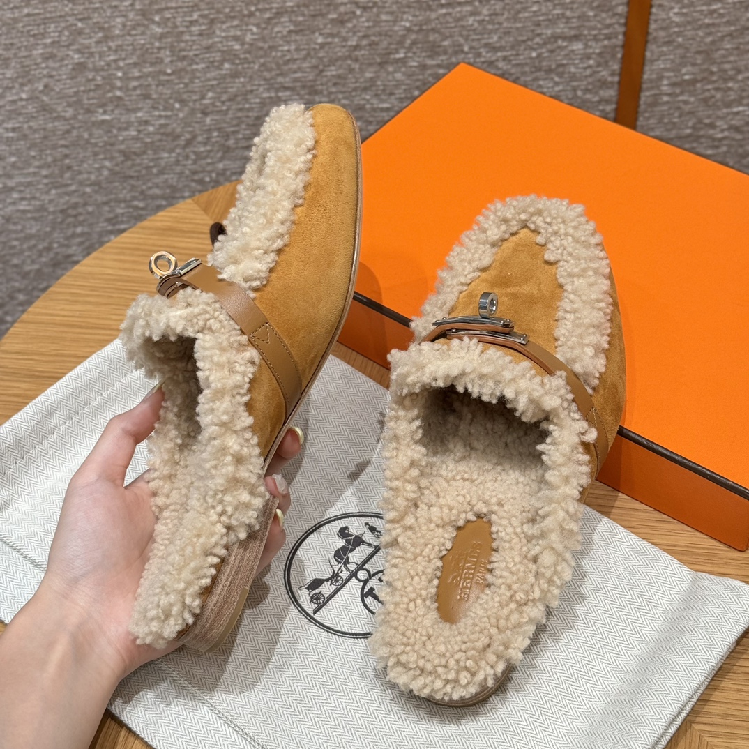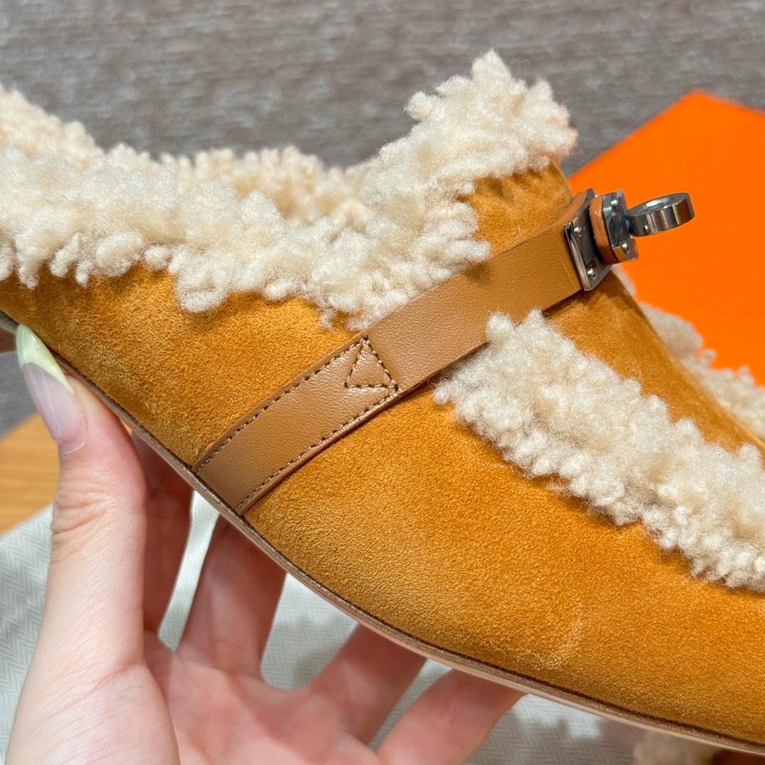 NIGO Hermes Women's Solid Color Suede Round Toe Flat Mule Shoes Slippers #nigo74233