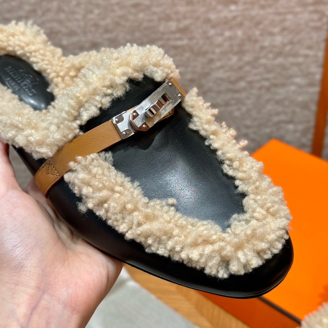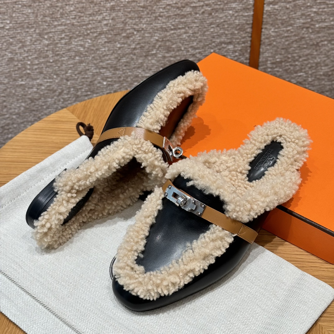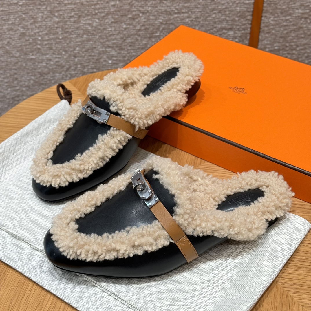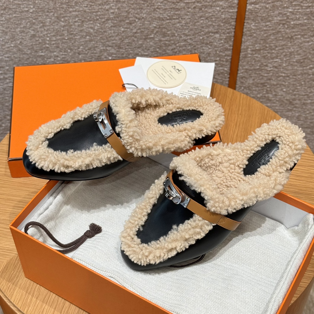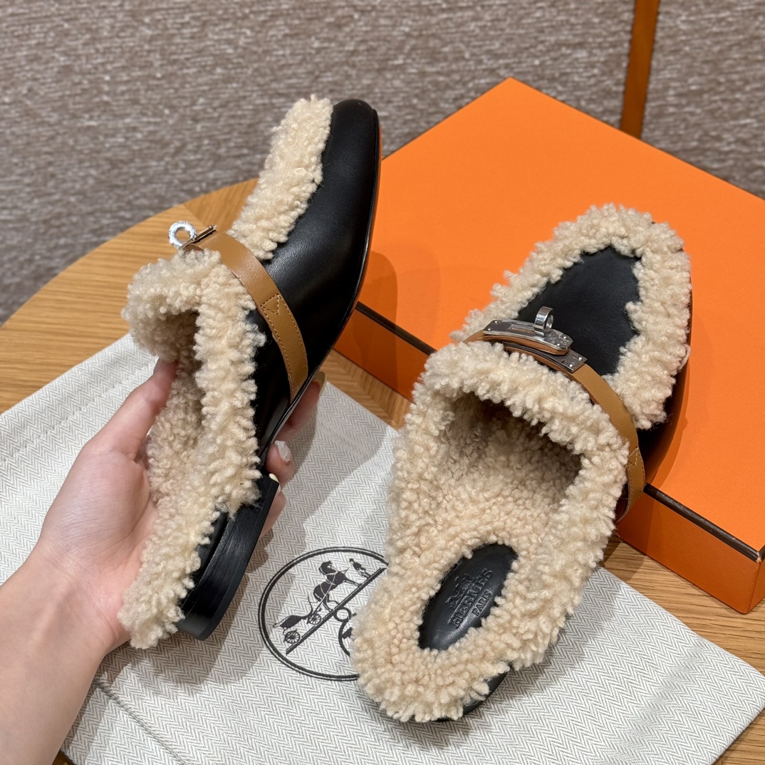 NIGO Hermes Women's Solid Color Suede Round Toe Flat Mule Shoes Slippers #nigo74233