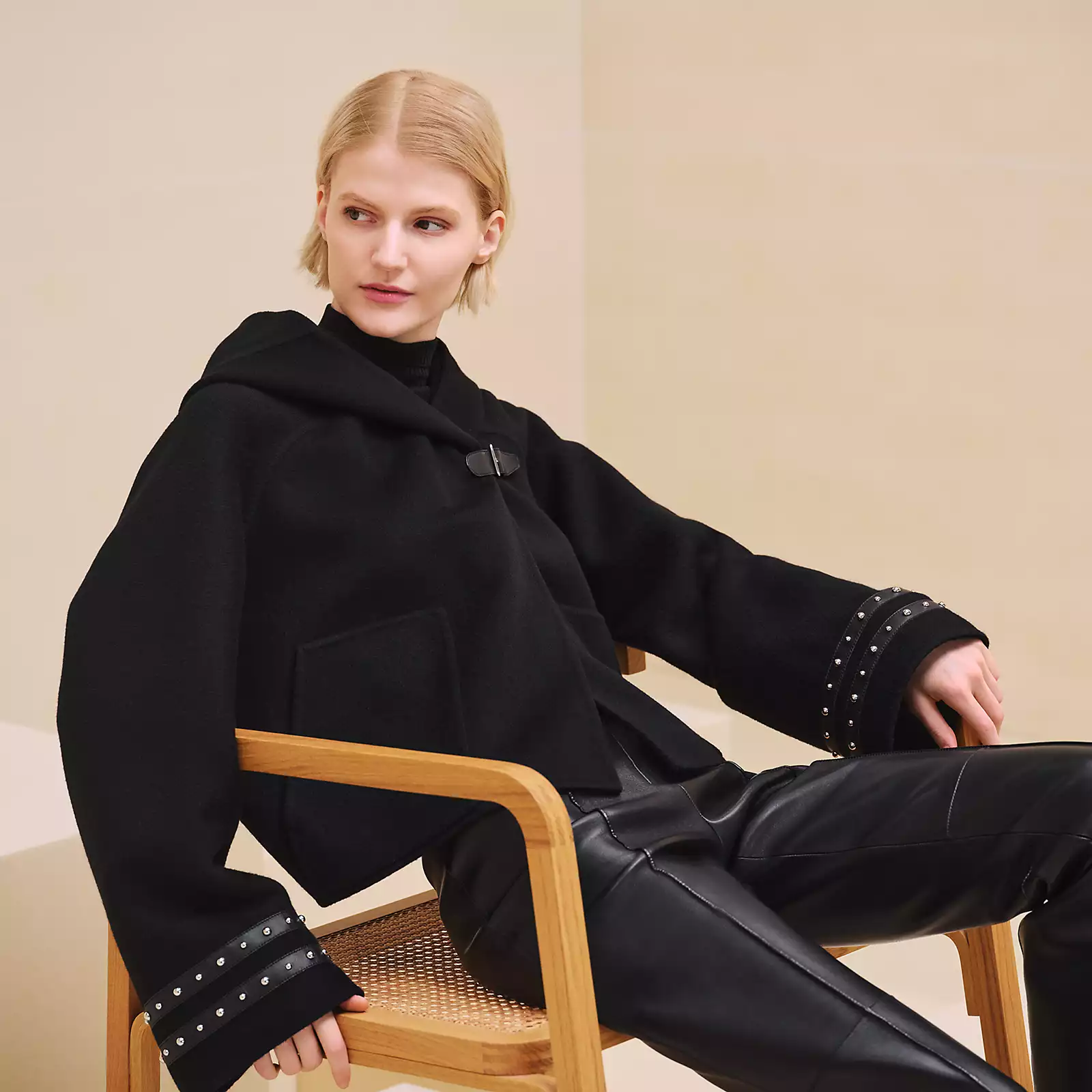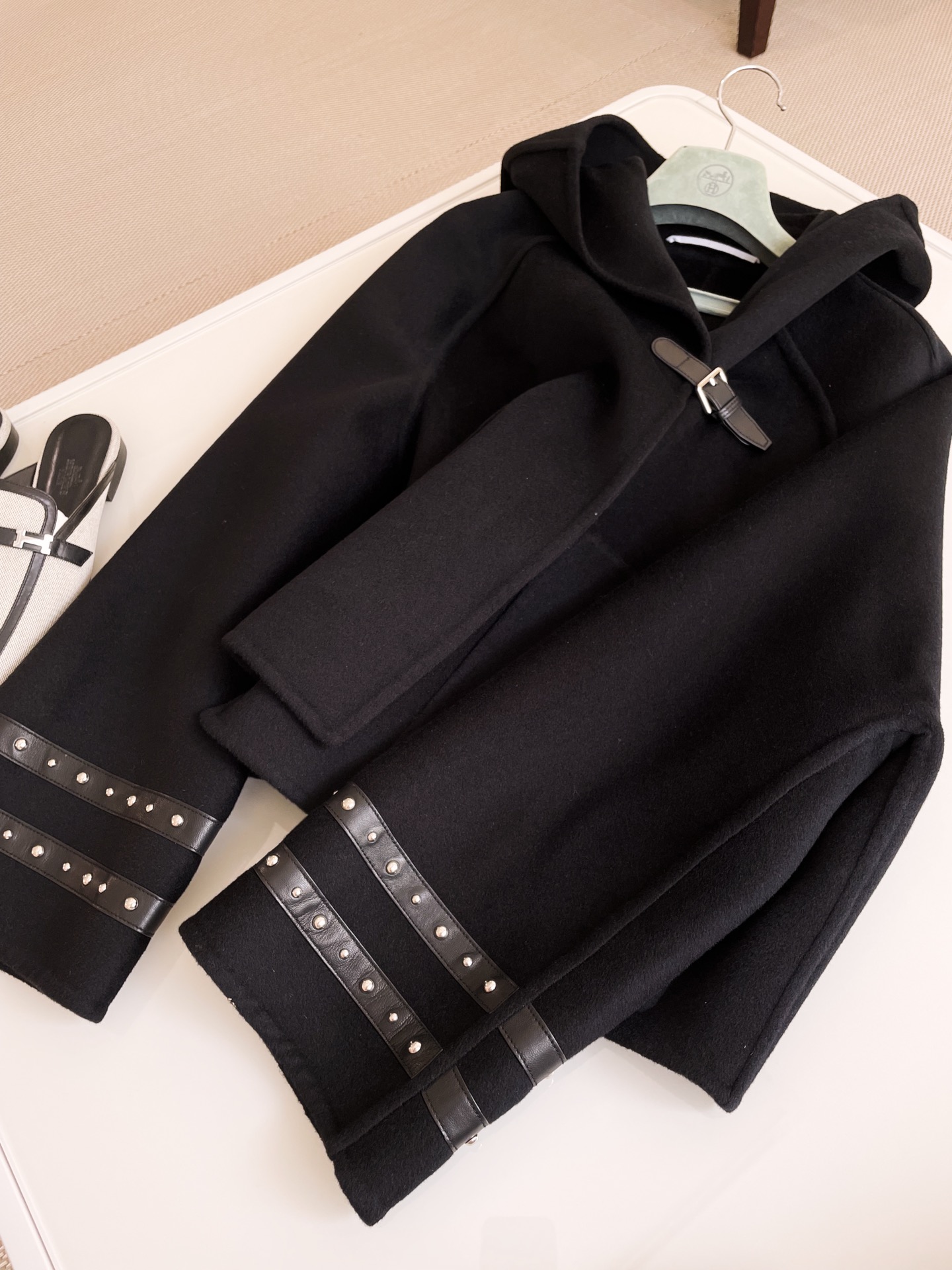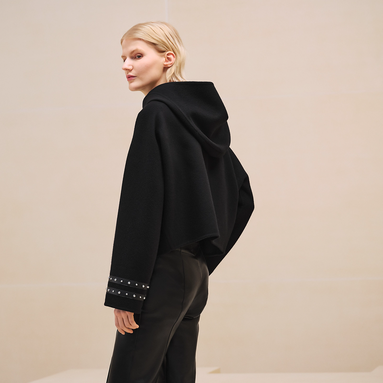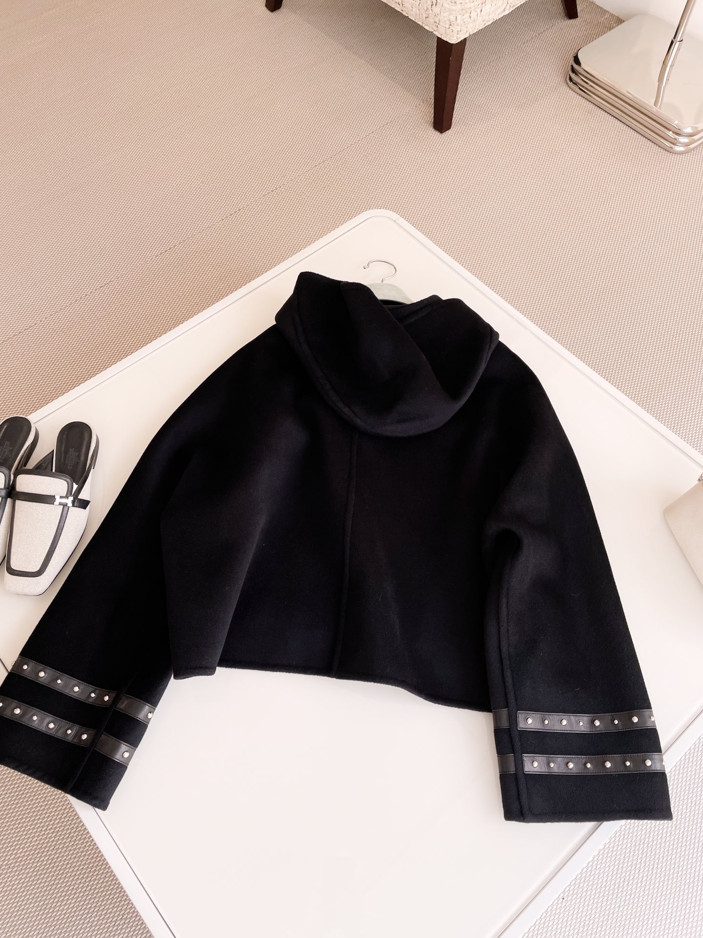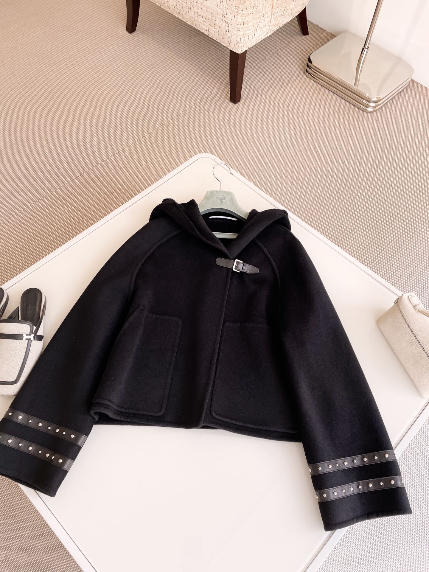 NIGO Hermes Women's Spring And Fall Double-Faced Cashmere Tweed Hooded Short Straight Solid Color Coat Ngvp #nigo9493