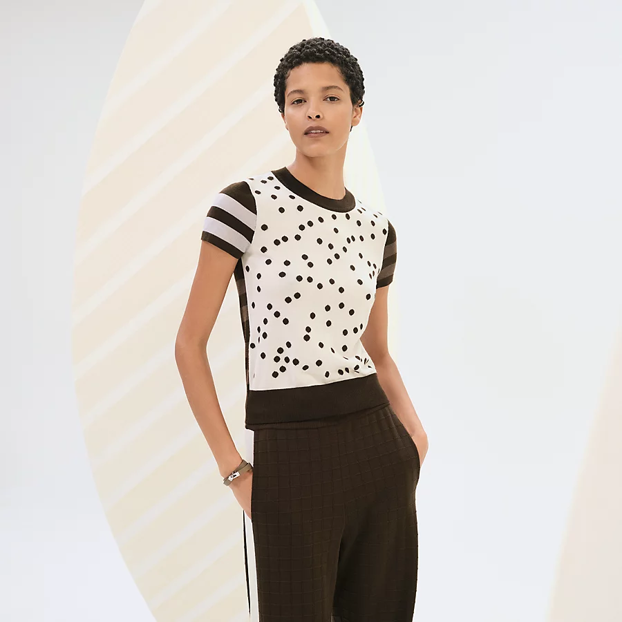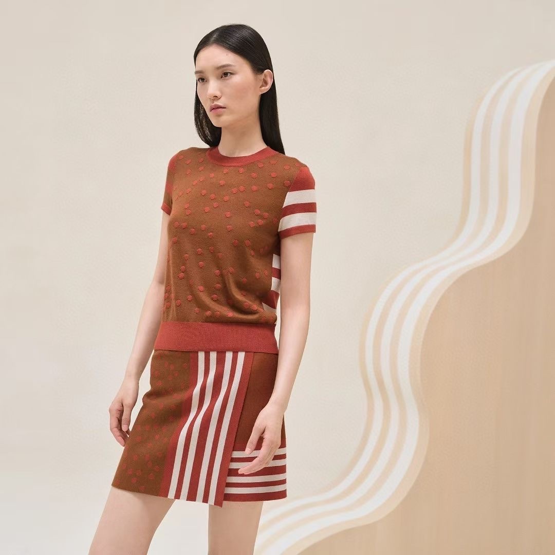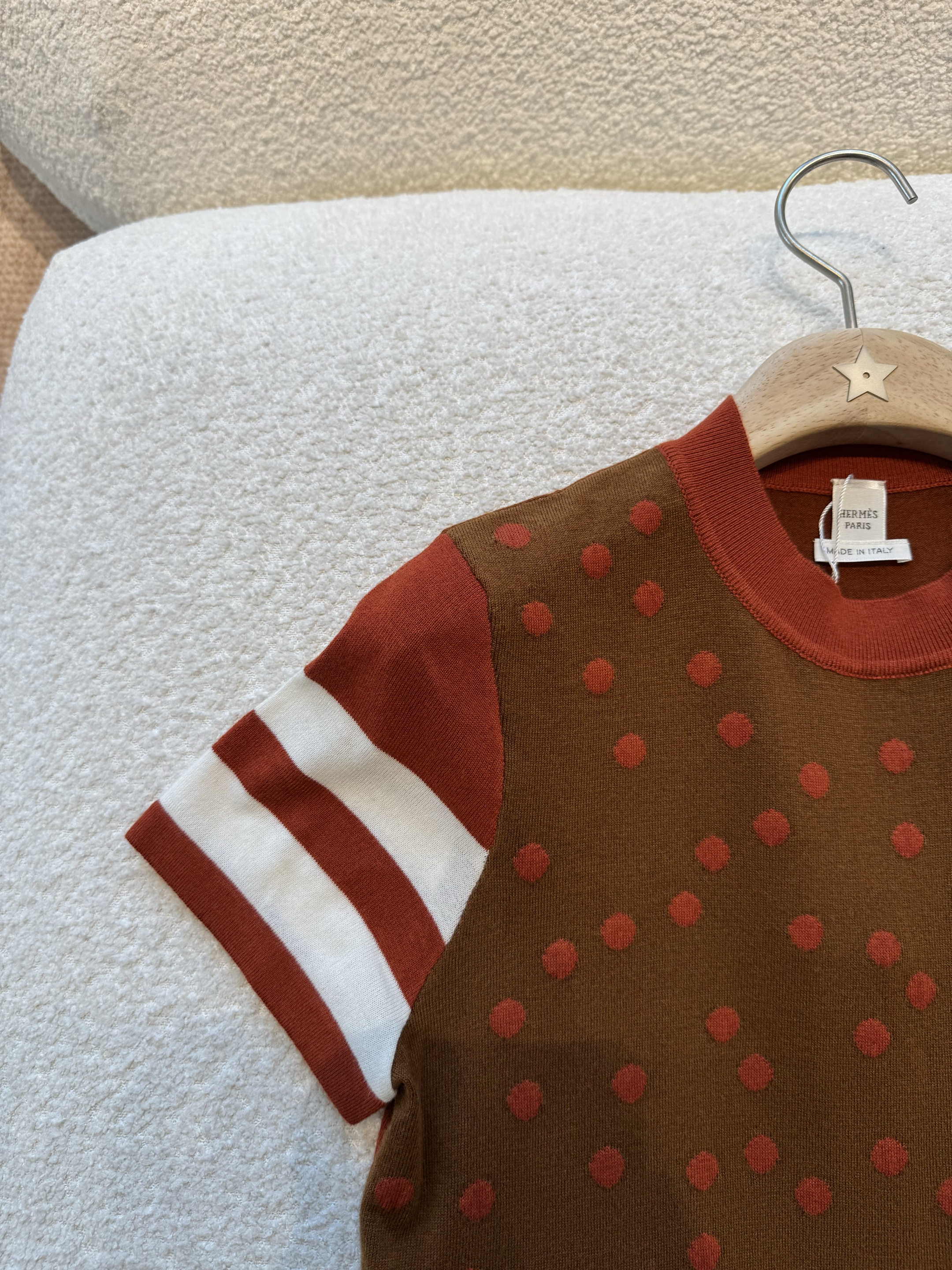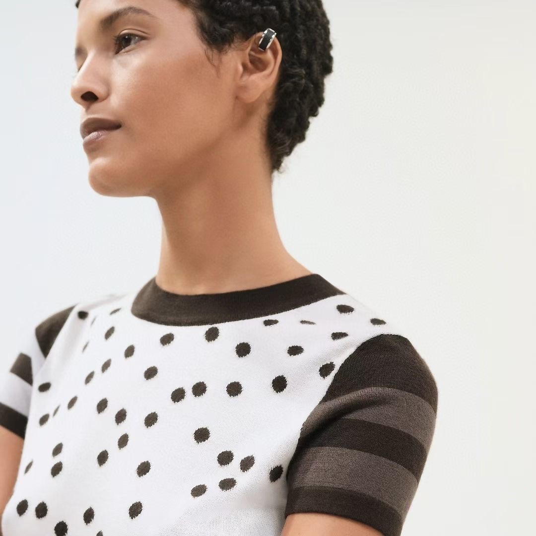 NIGO Hermes Women's Spring And Summer Cashmere Knitted T-shirt Round Neck Short-sleeved Color Collision Striped Polka Dot Short Knitted Sweater Bottoming Sweater Ngvp #nigo2473