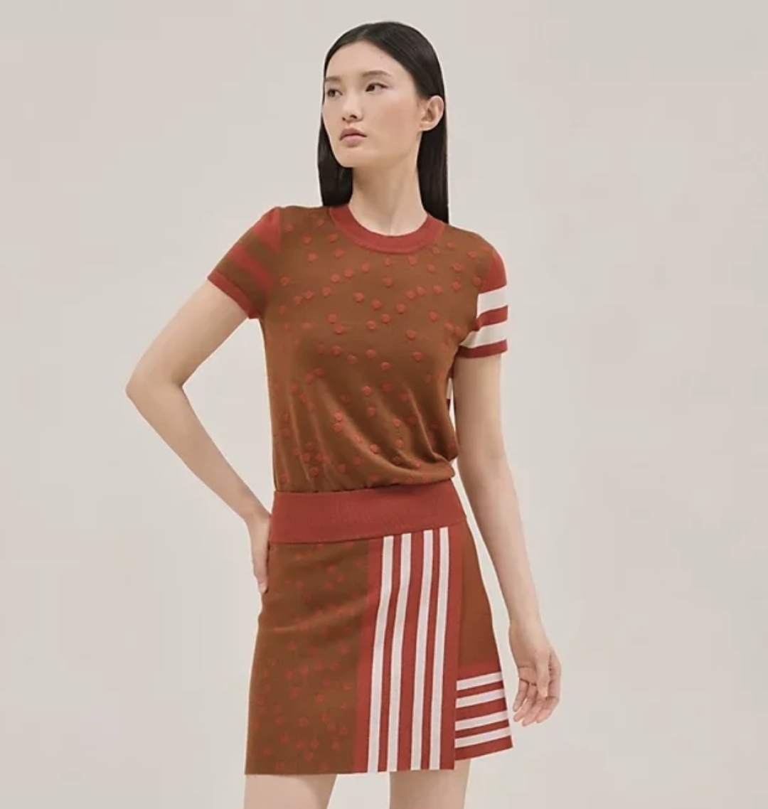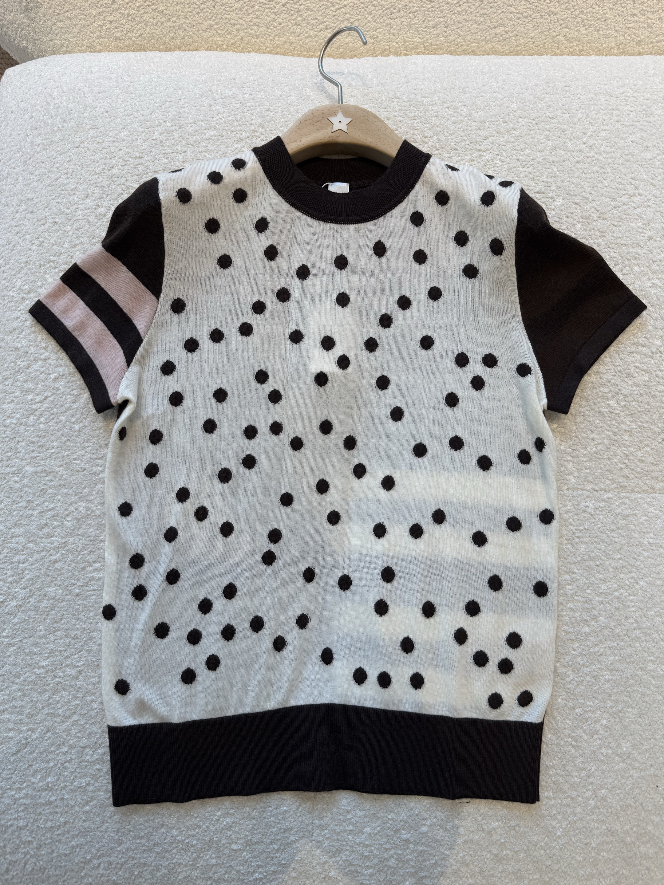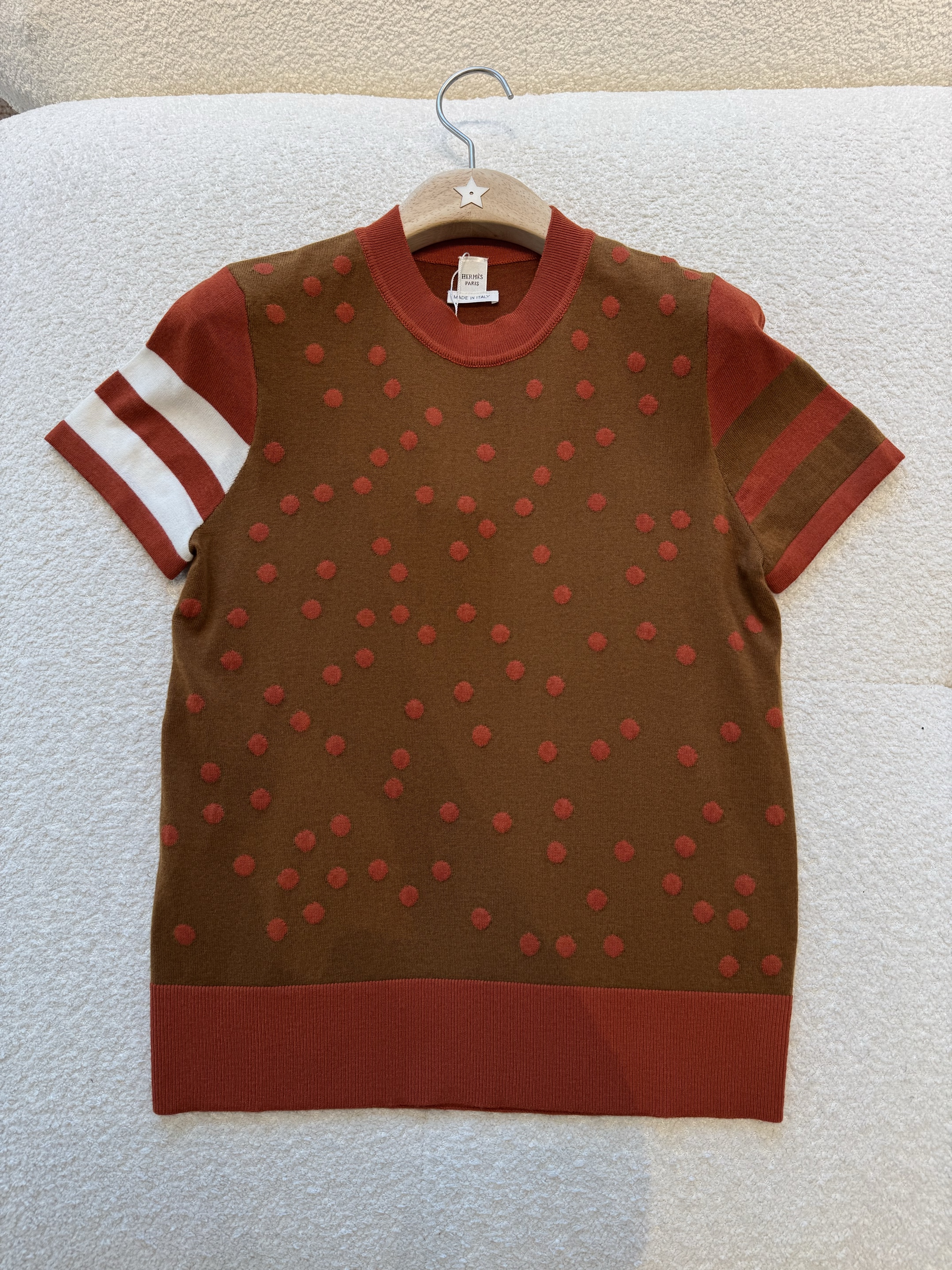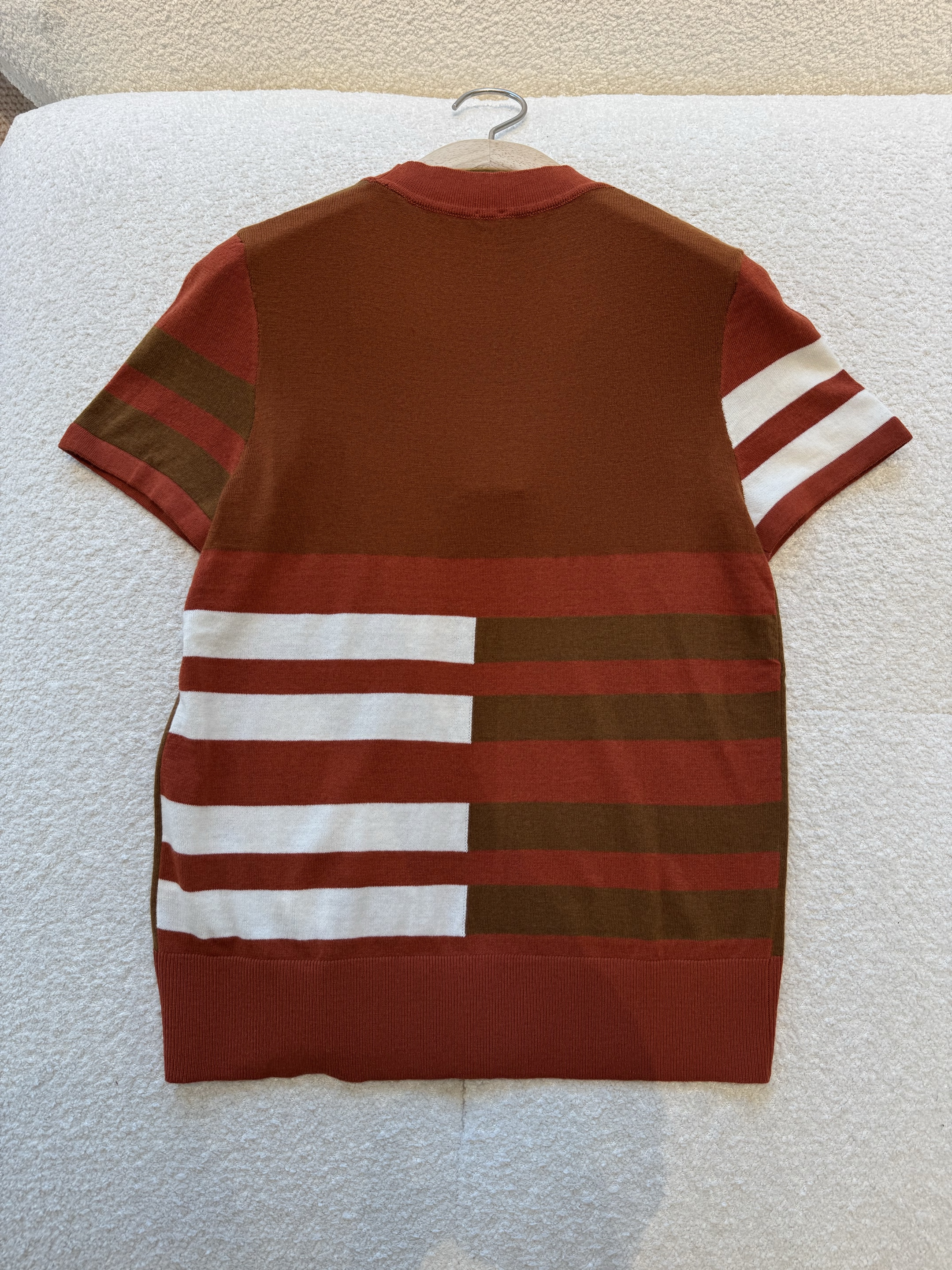 NIGO Hermes Women's Spring And Summer Cashmere Knitted T-shirt Round Neck Short-sleeved Color Collision Striped Polka Dot Short Knitted Sweater Bottoming Sweater Ngvp #nigo2473