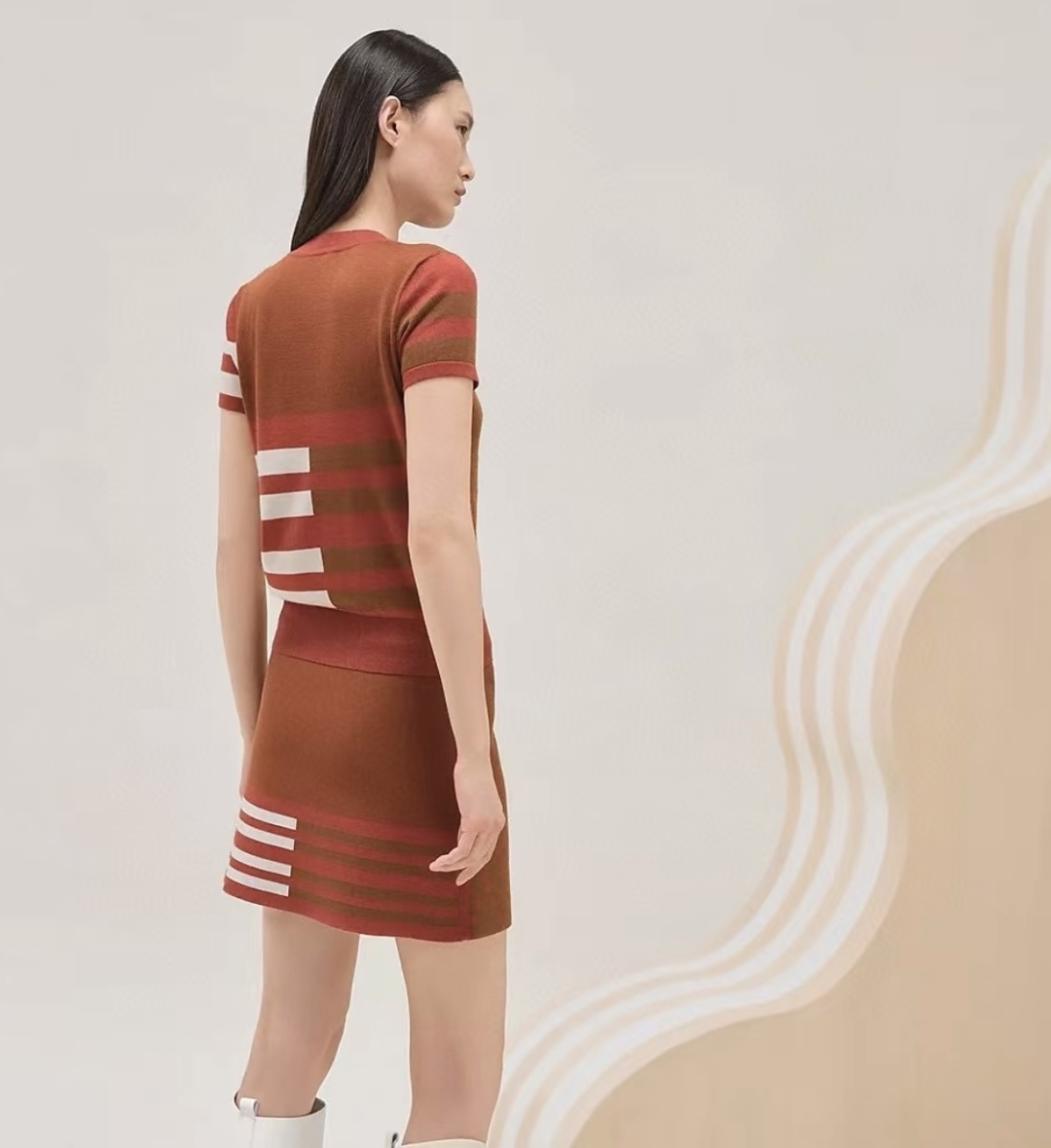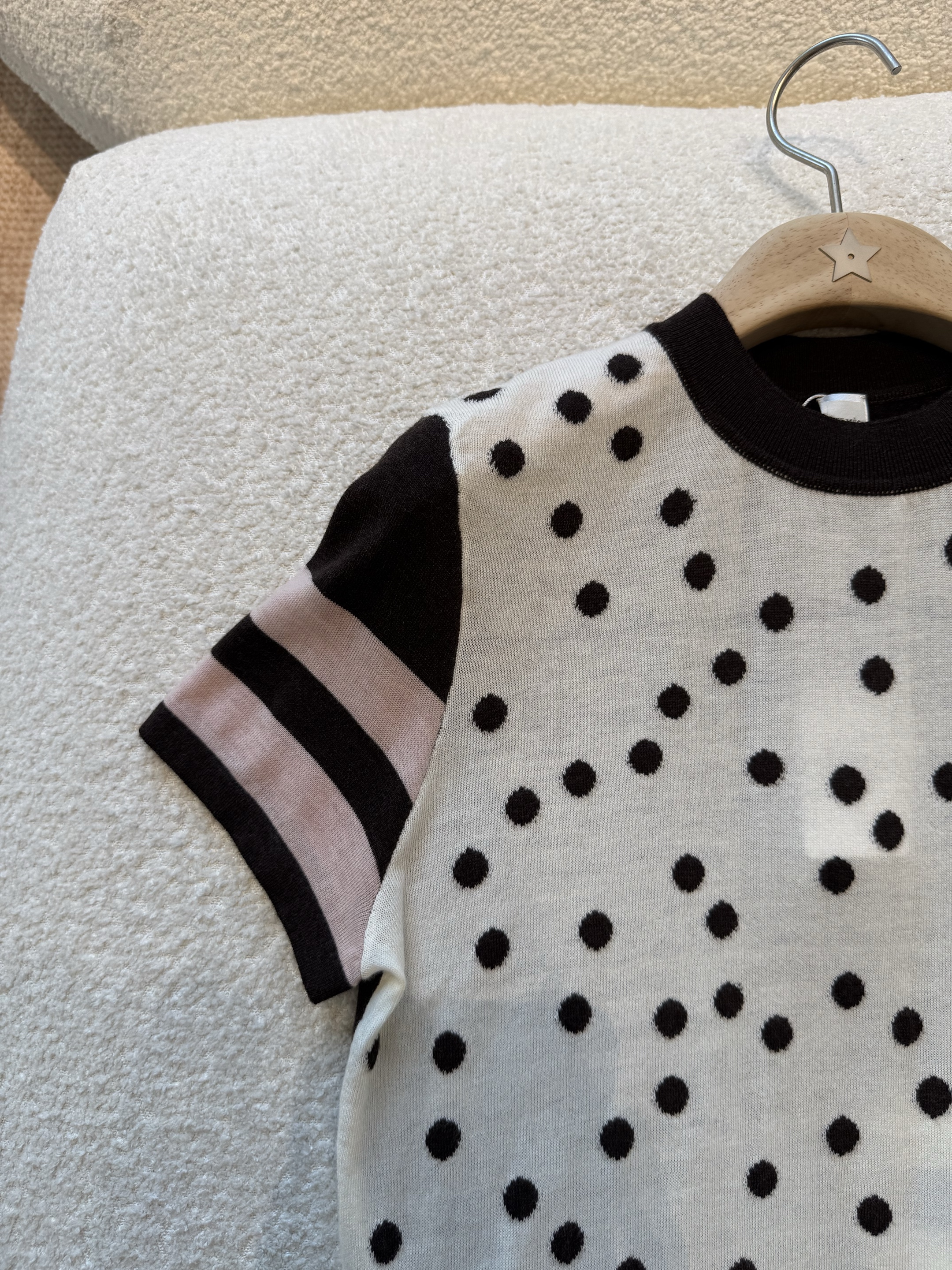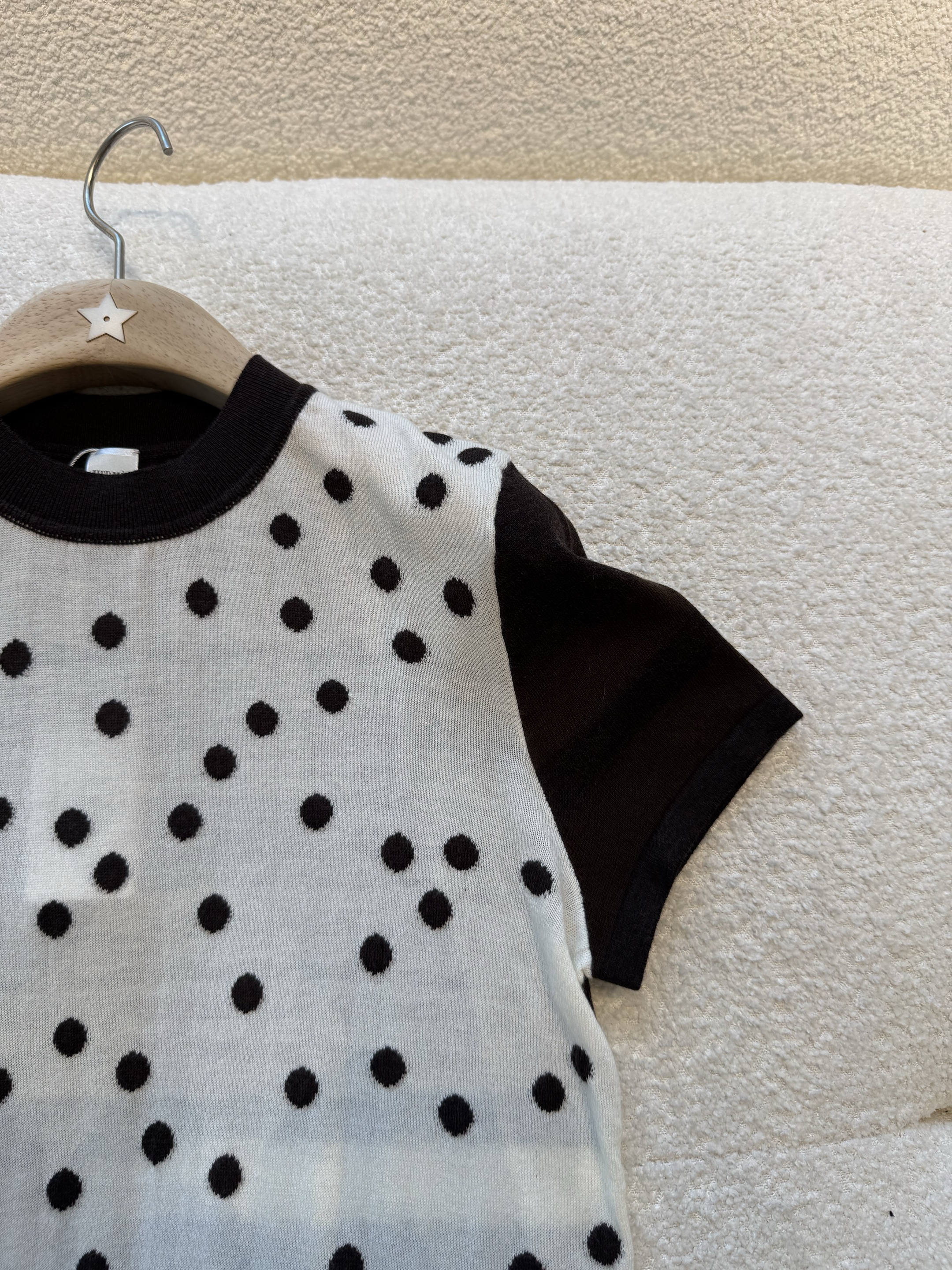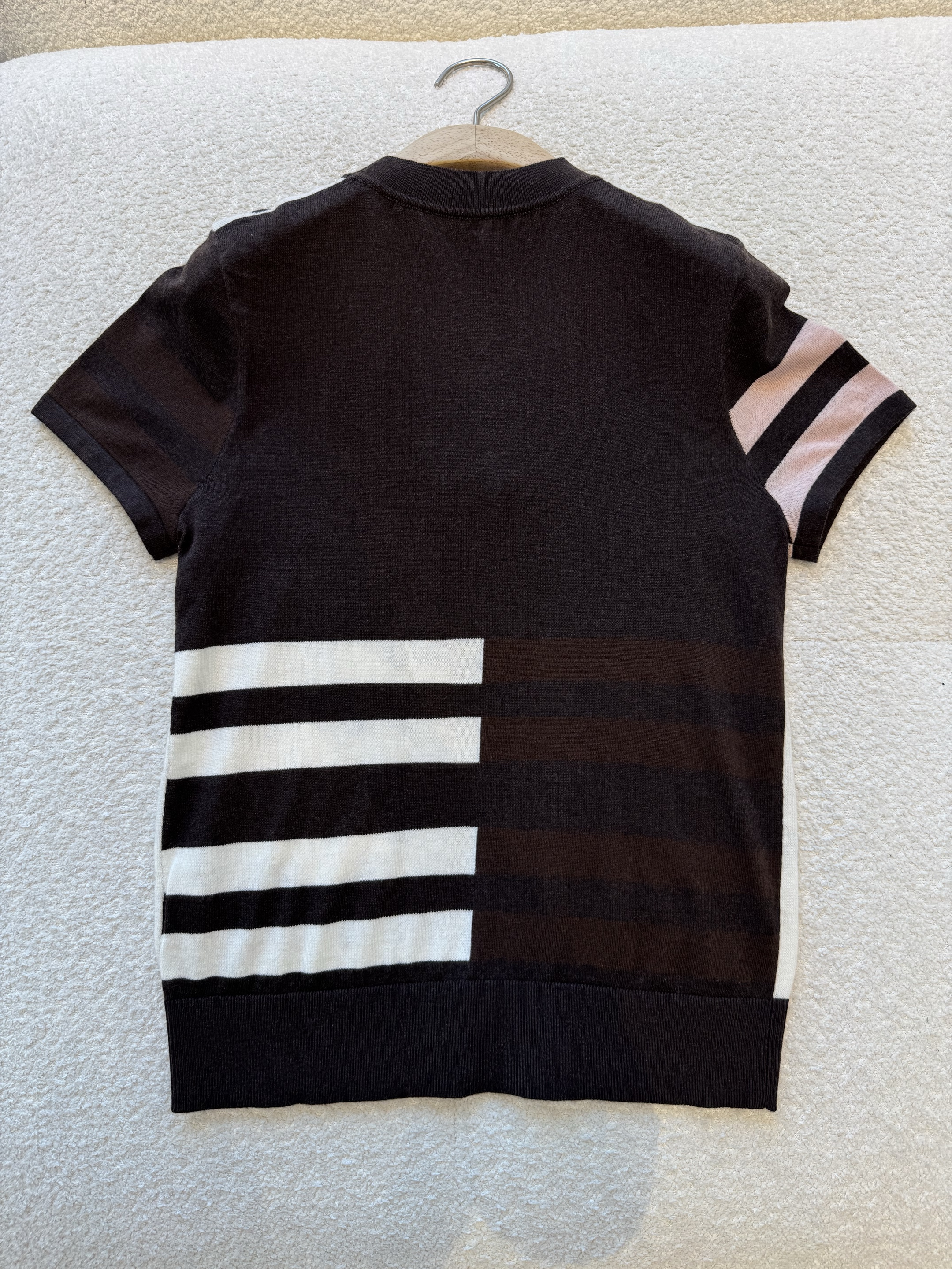 NIGO Hermes Women's Spring And Summer Cashmere Knitted T-shirt Round Neck Short-sleeved Color Collision Striped Polka Dot Short Knitted Sweater Bottoming Sweater Ngvp #nigo2473