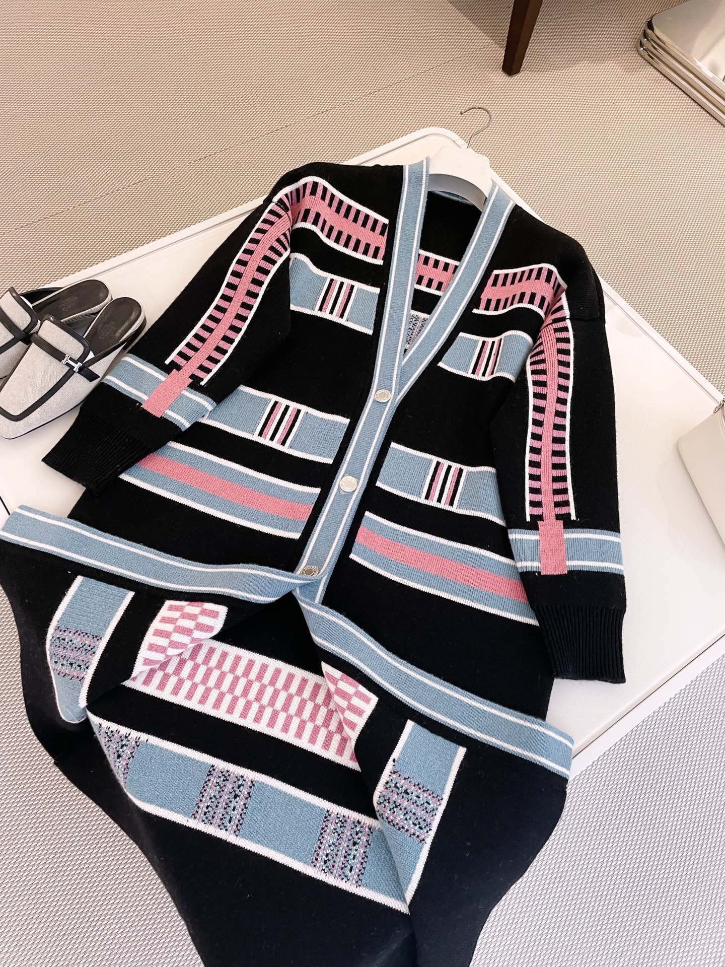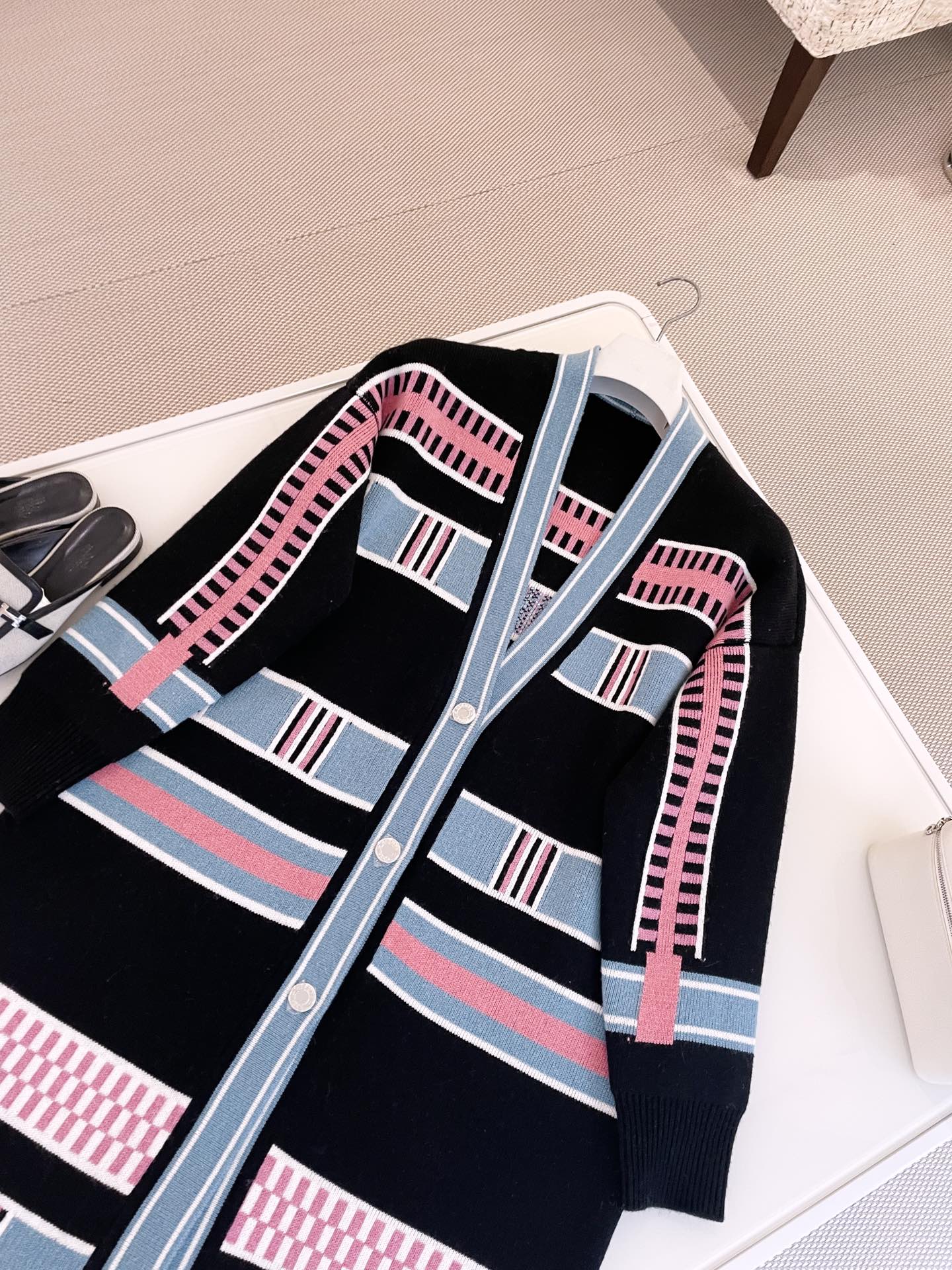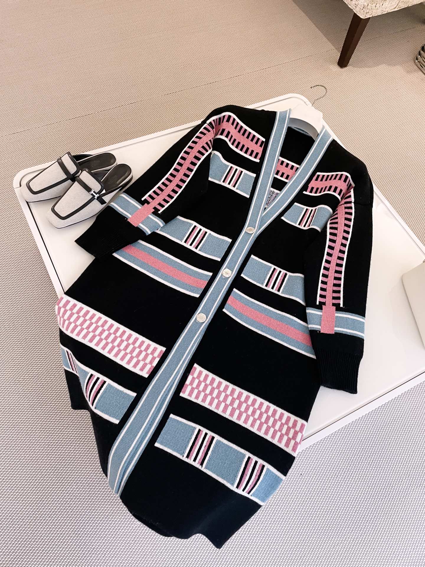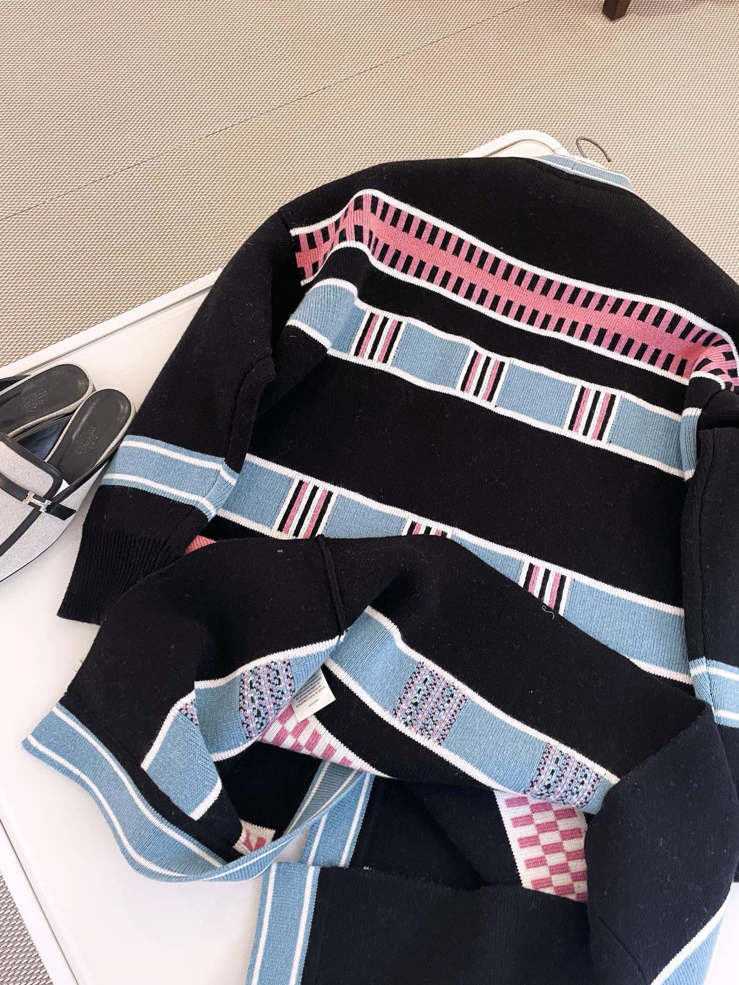 NIGO Hermes Women's Spring, Fall And Winter “Lettres Equestres” Cardigan Colorblocked Striped V-Neck Long-Sleeved Cashmere Knit Coat Ngvp #nigo9779