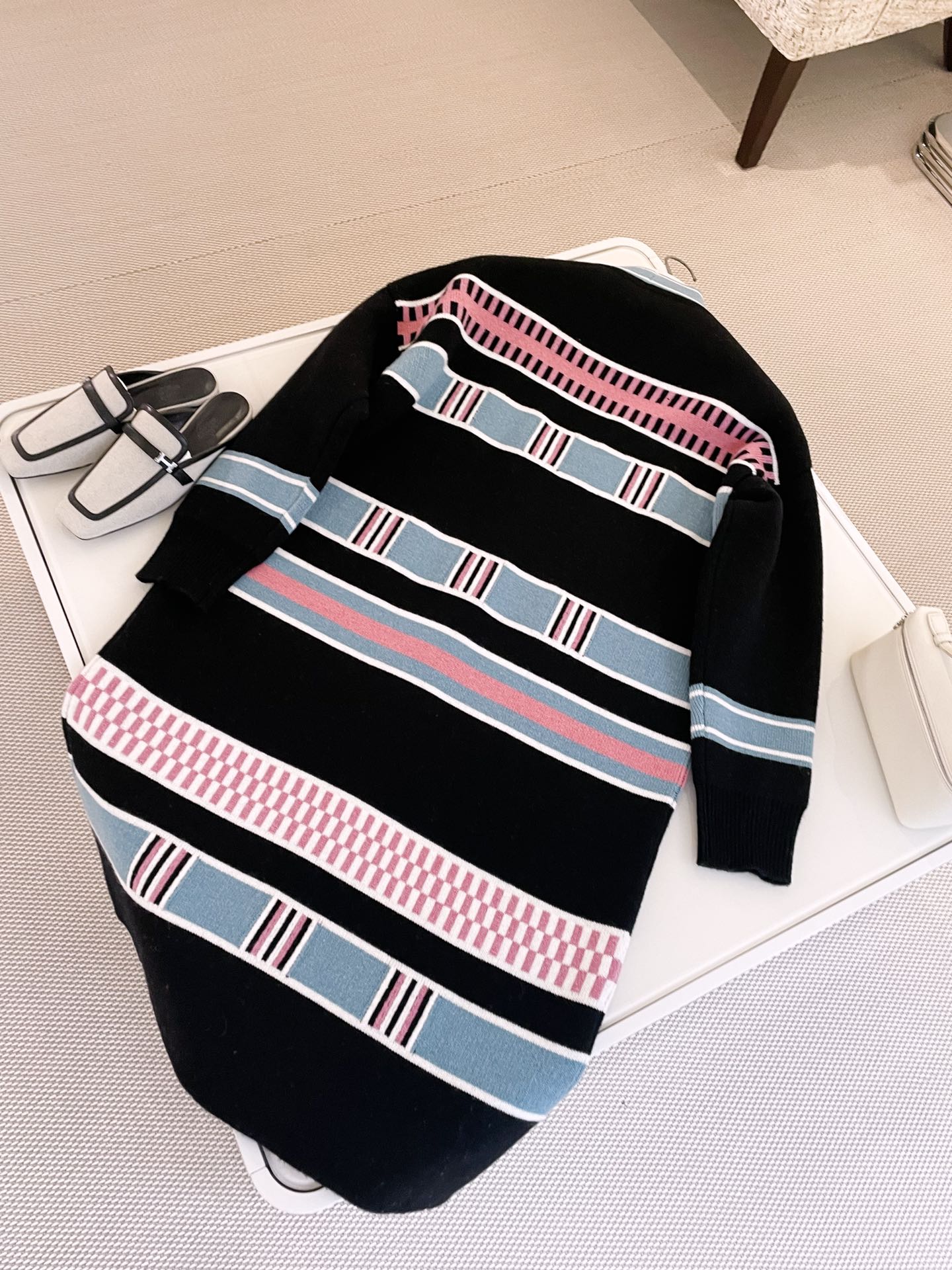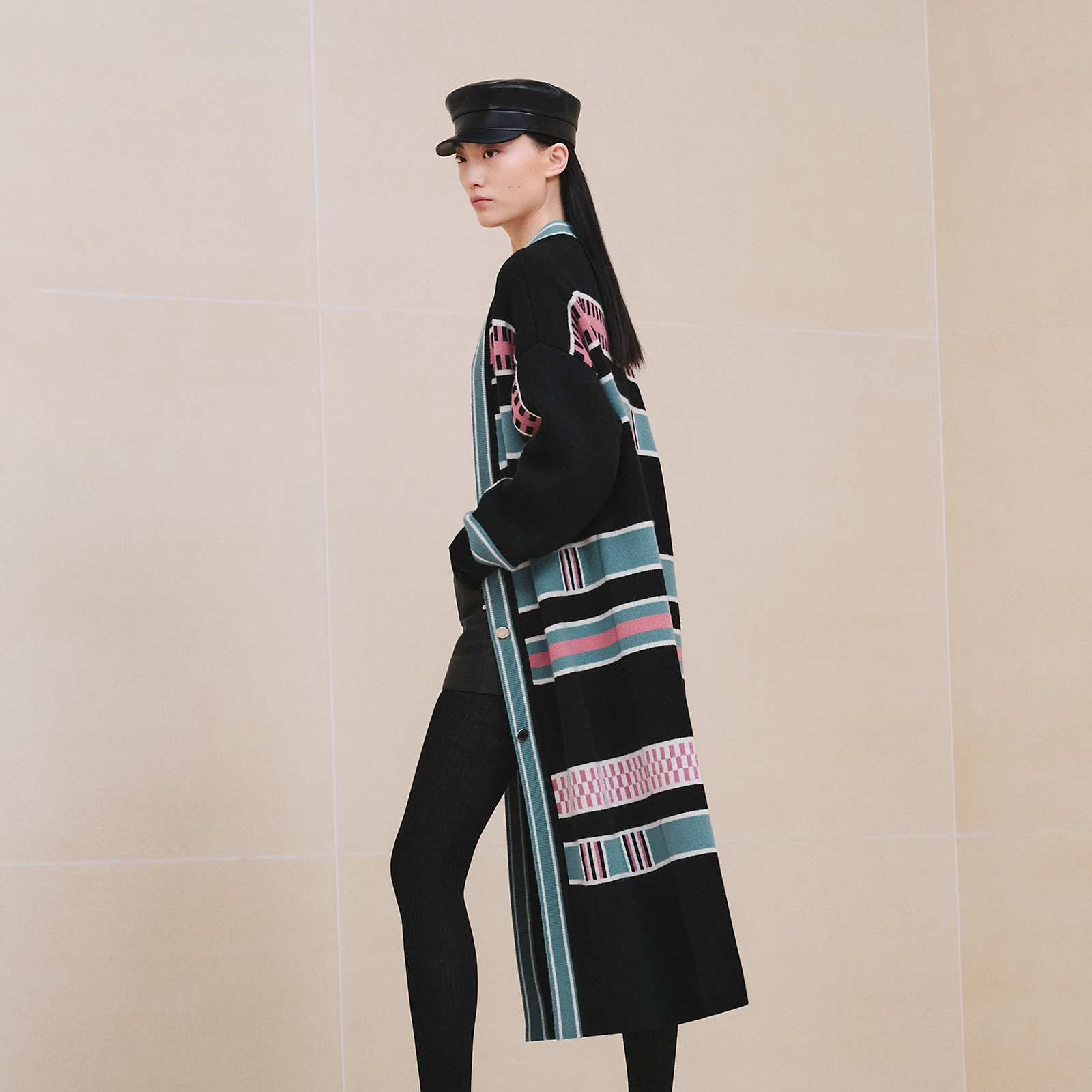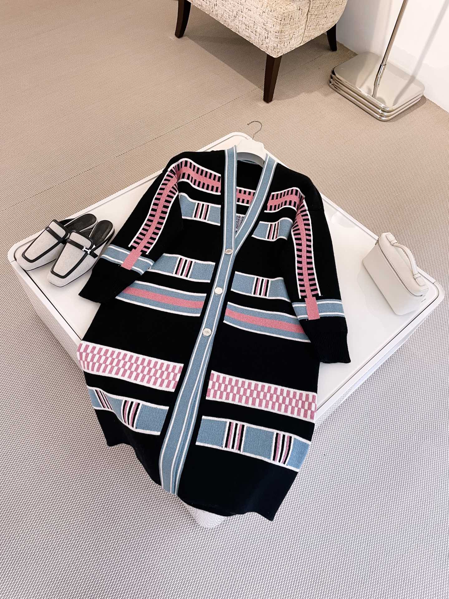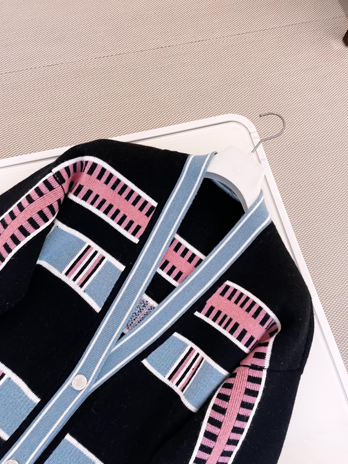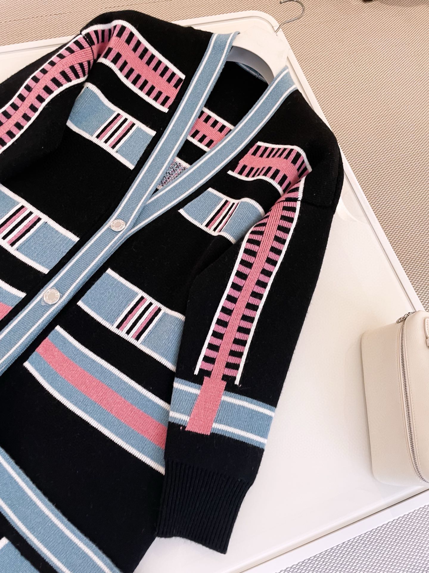 NIGO Hermes Women's Spring, Fall And Winter “Lettres Equestres” Cardigan Colorblocked Striped V-Neck Long-Sleeved Cashmere Knit Coat Ngvp #nigo9779