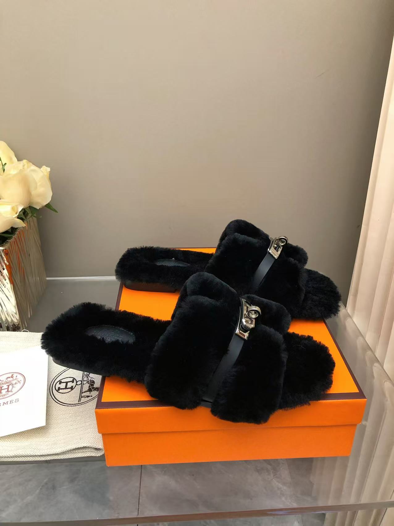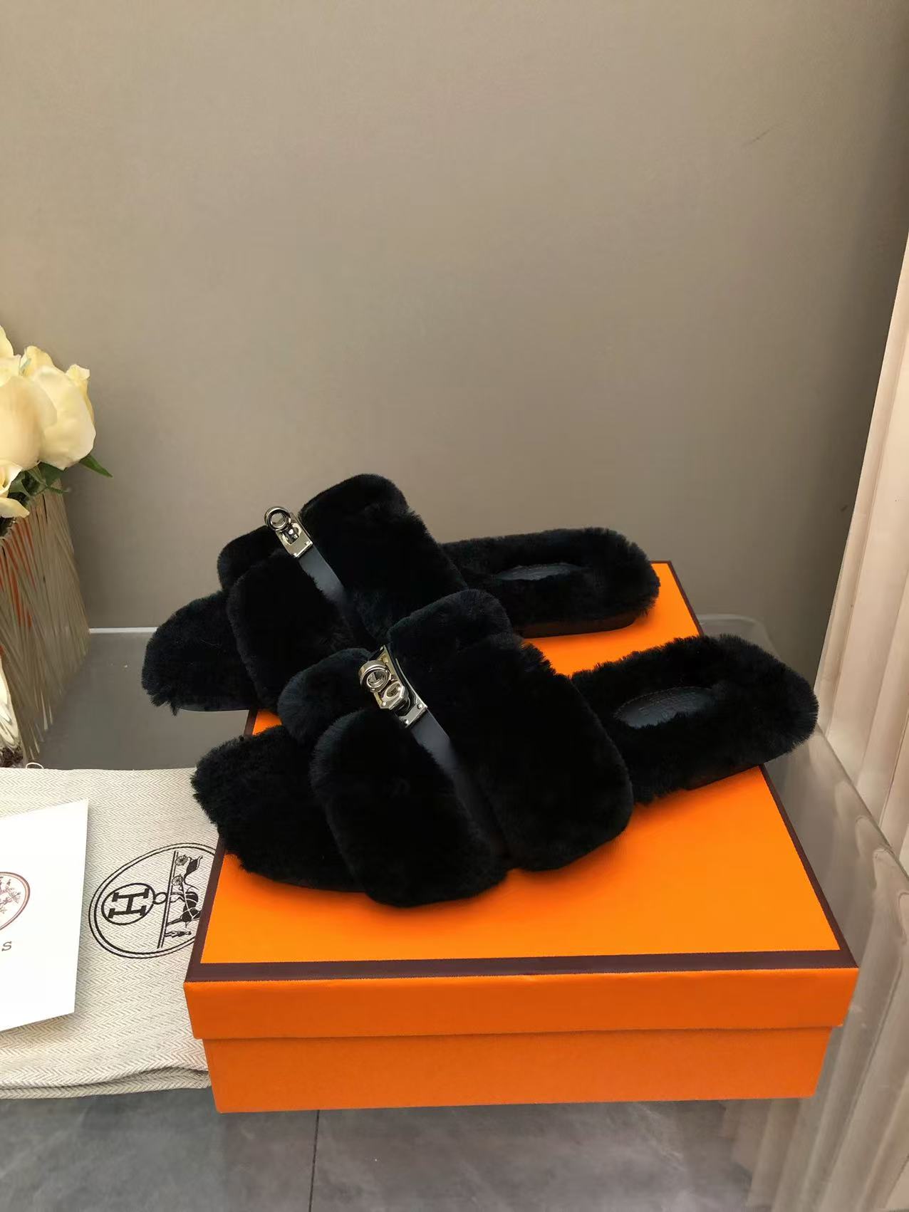 NIGO Hermes Women's Spring, Summer, And Fall Solid Color Wool And Leather Slip-On Flat Casual Shoes #nigo81516