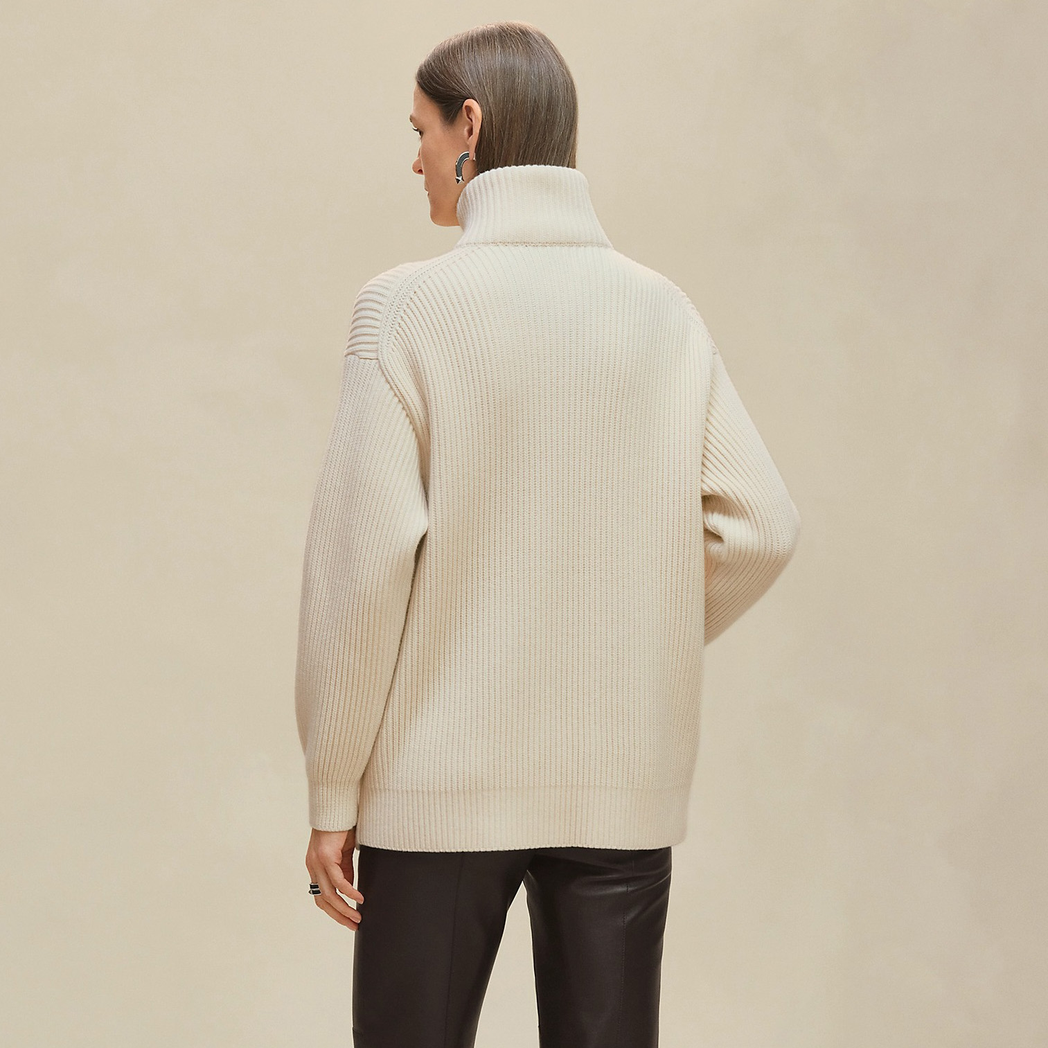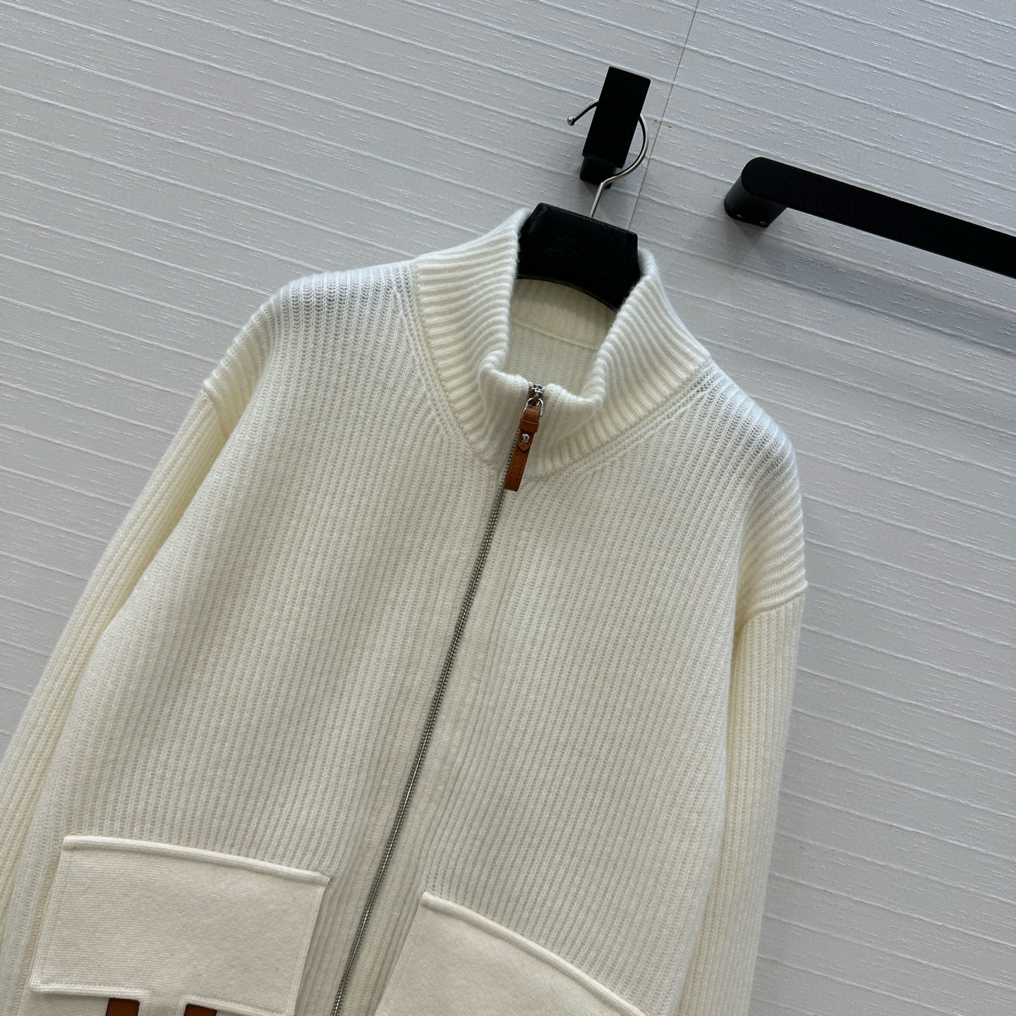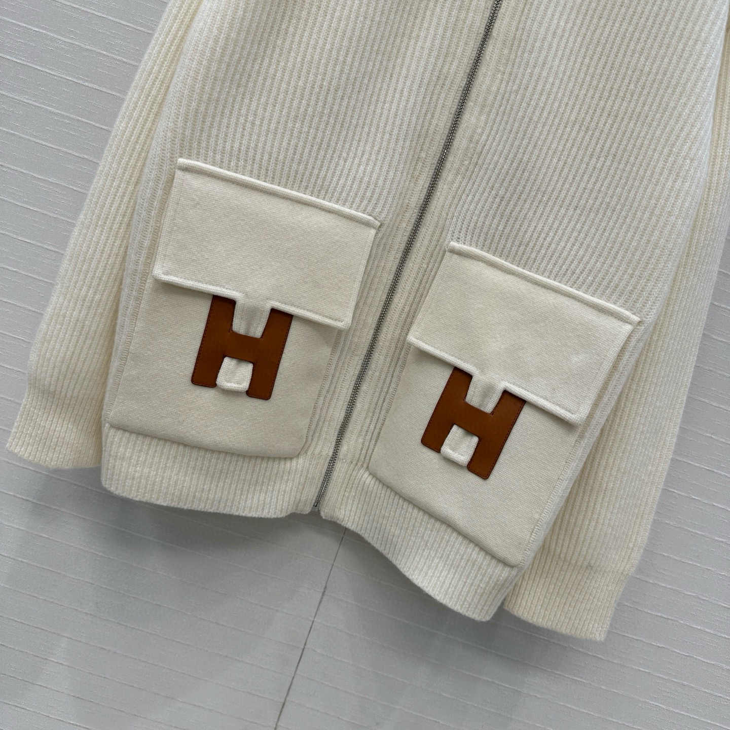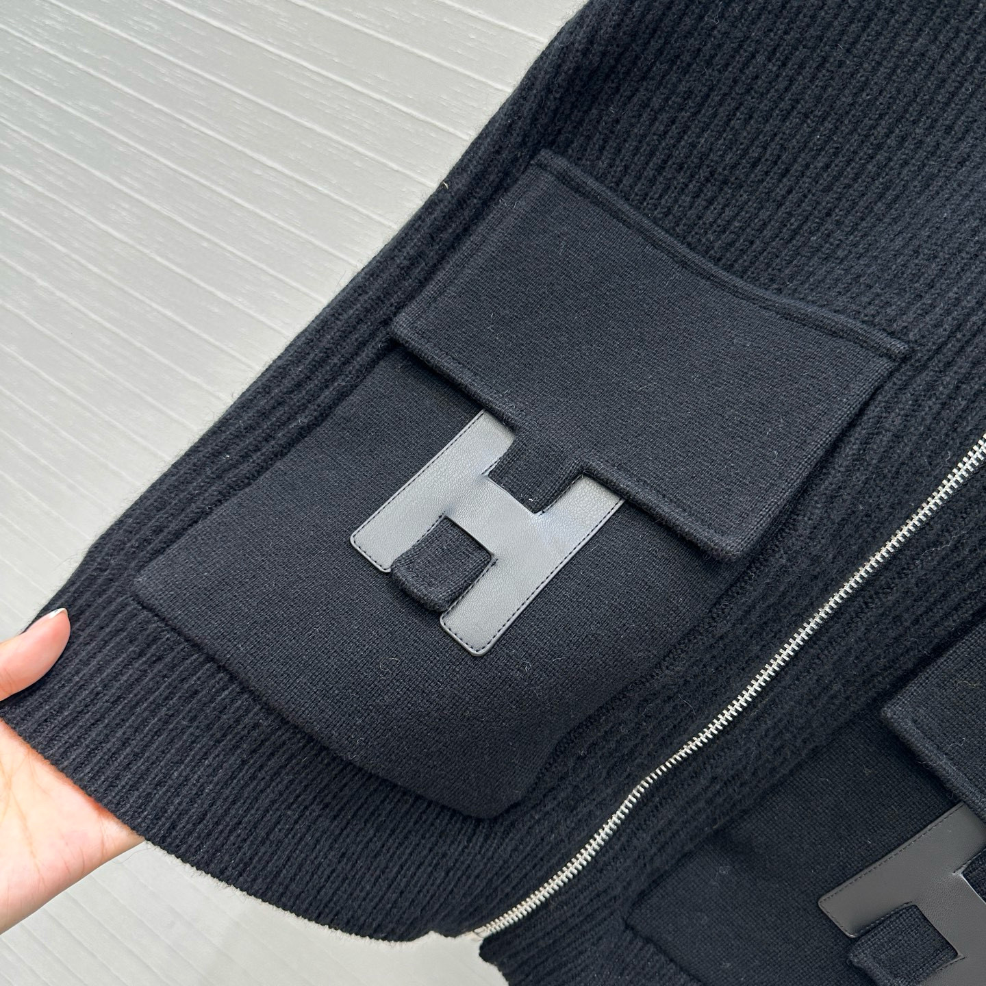 NIGO Hermes Women's Spring/summer Casual Fashion Solid Color Stand Up Collar Zipper Leather H-shaped Pocket Wool Knit Mid Length Coat Jacket #nigo78292