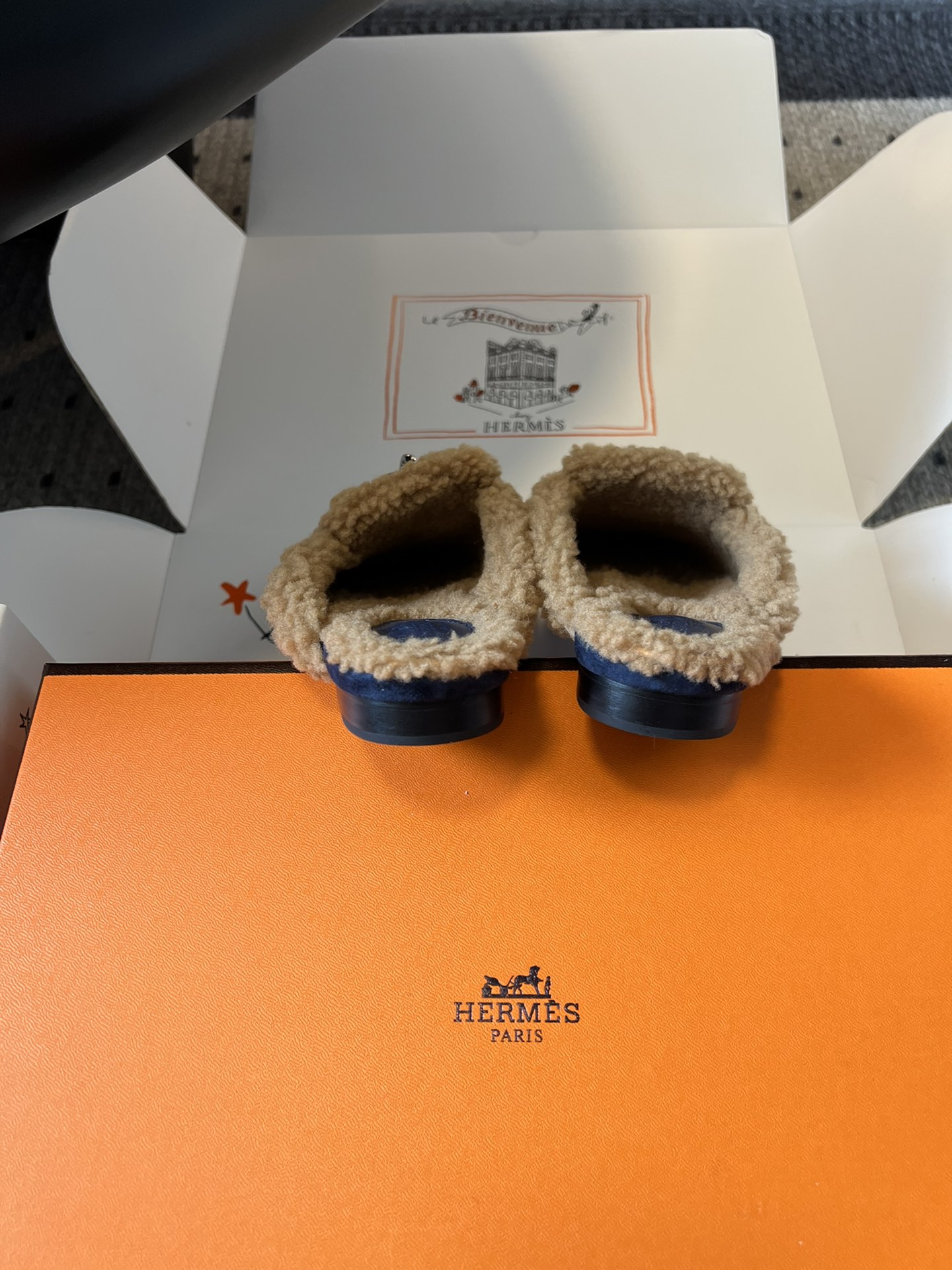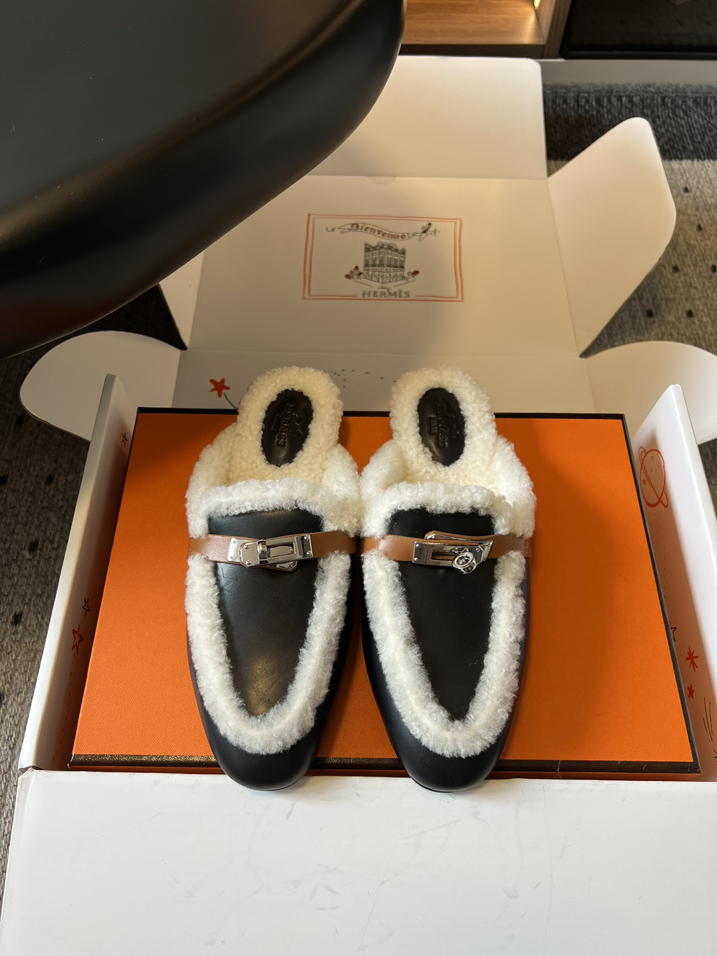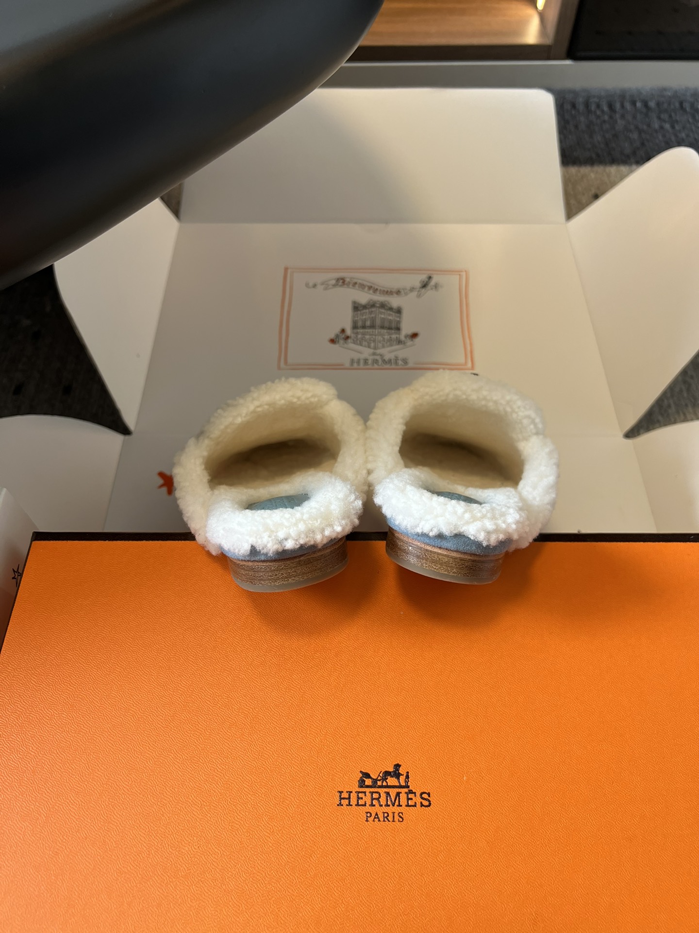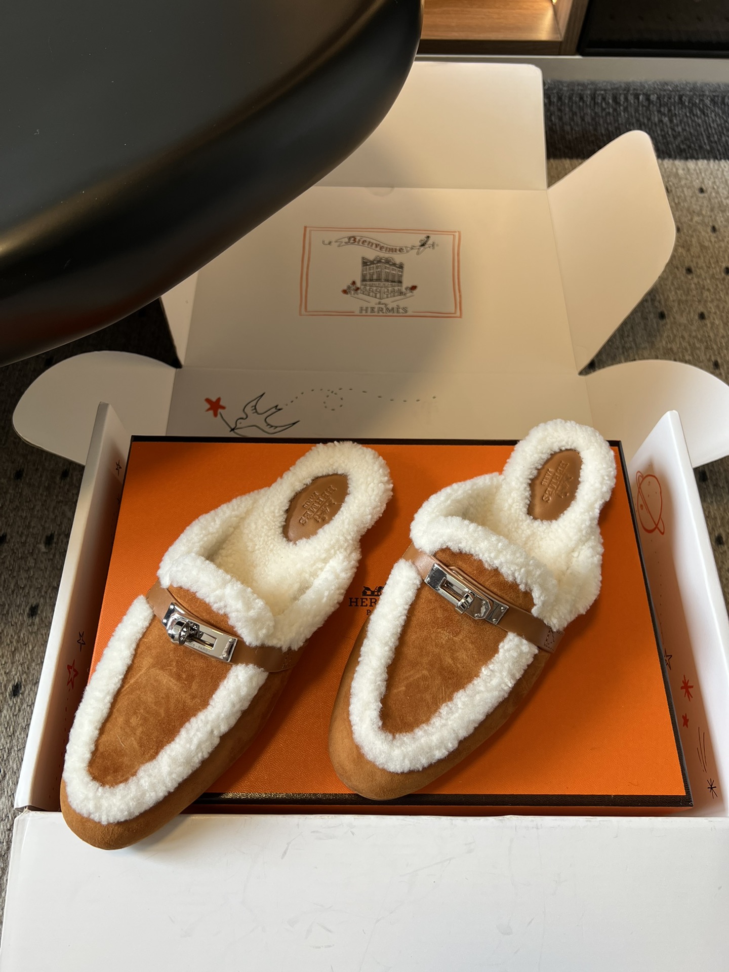 NIGO Hermes Women's Winter Suede Round-Toe Flat Half-Slip-On Shoes, Casual Solid Color Slip-On Slippers #nigo81517