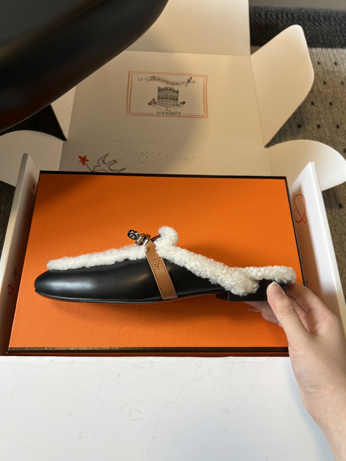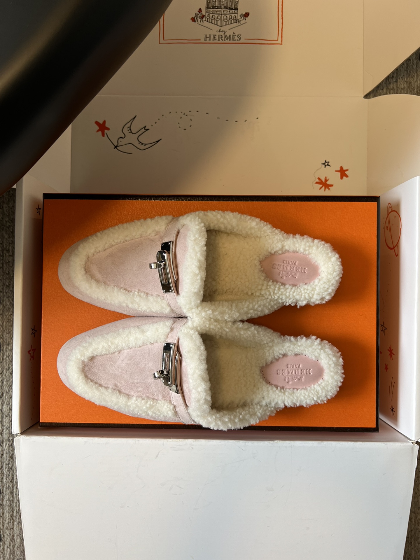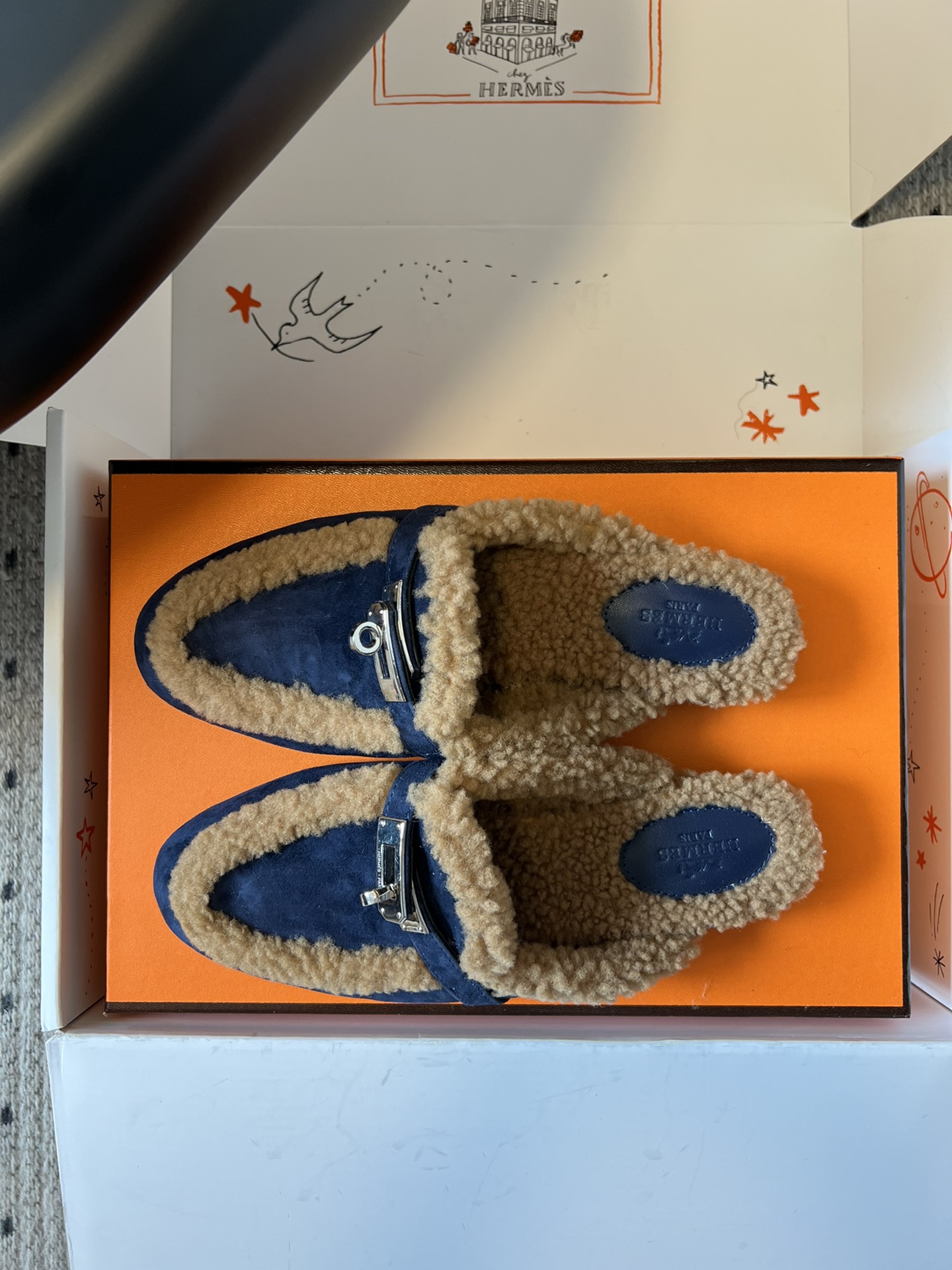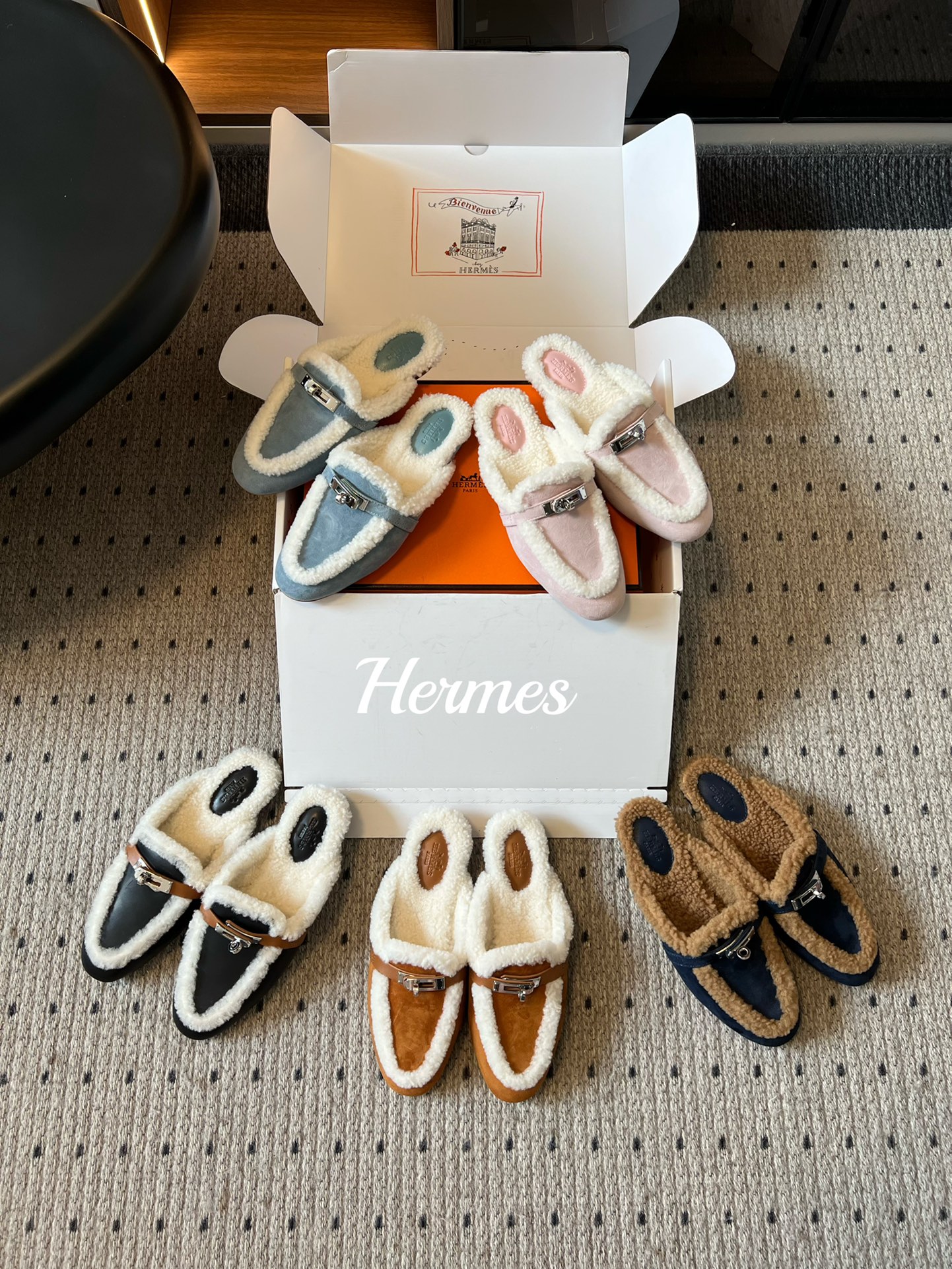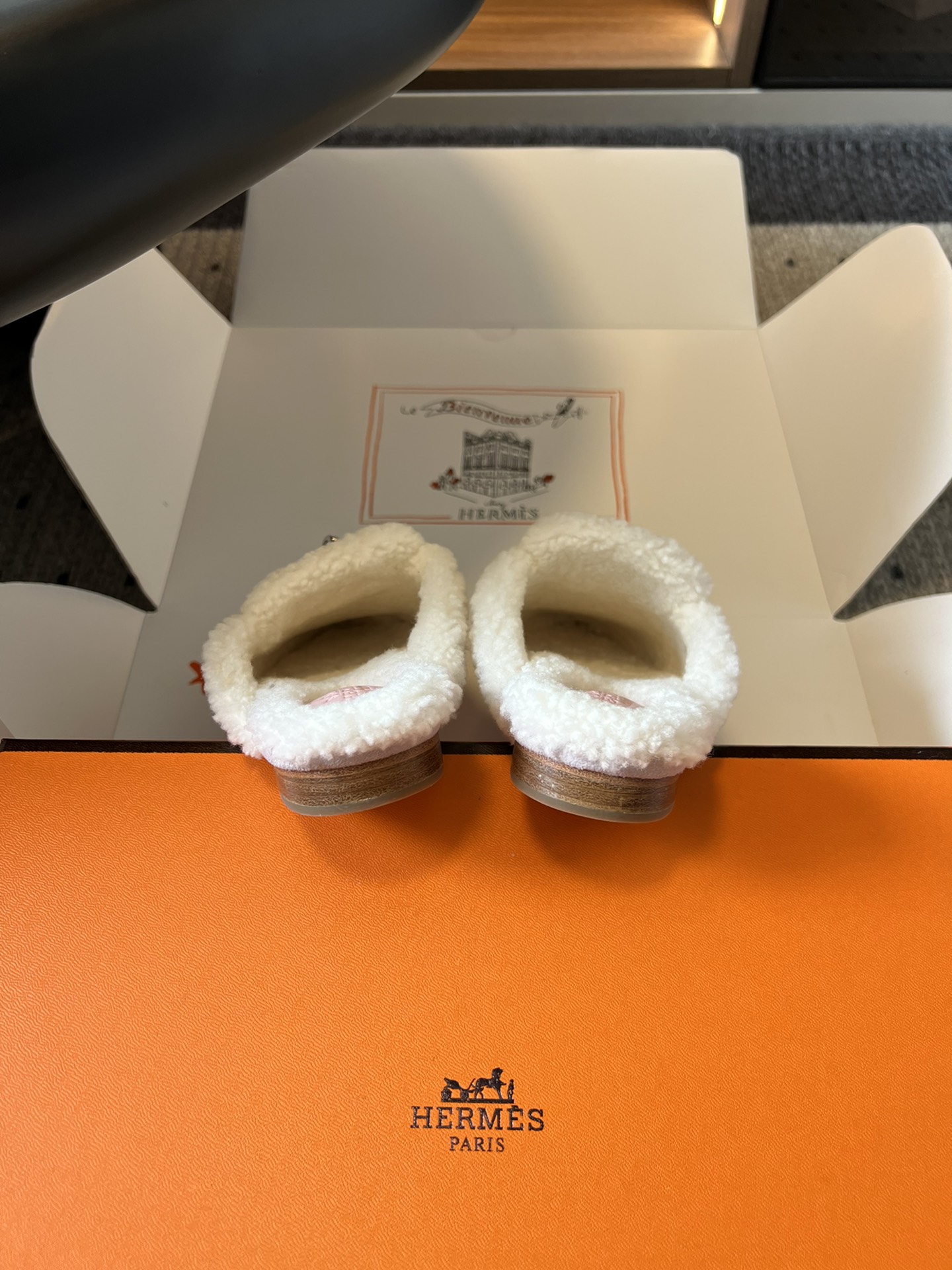 NIGO Hermes Women's Winter Suede Round-Toe Flat Half-Slip-On Shoes, Casual Solid Color Slip-On Slippers #nigo81517