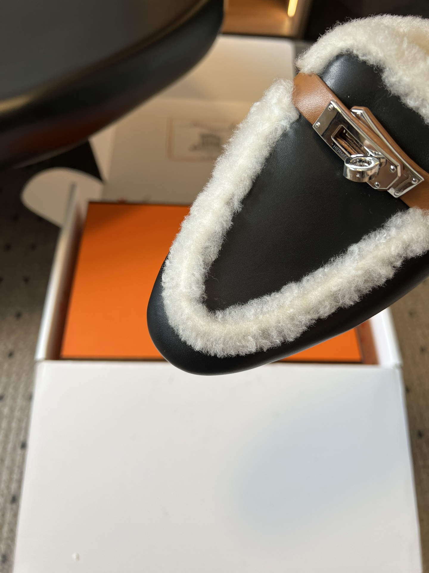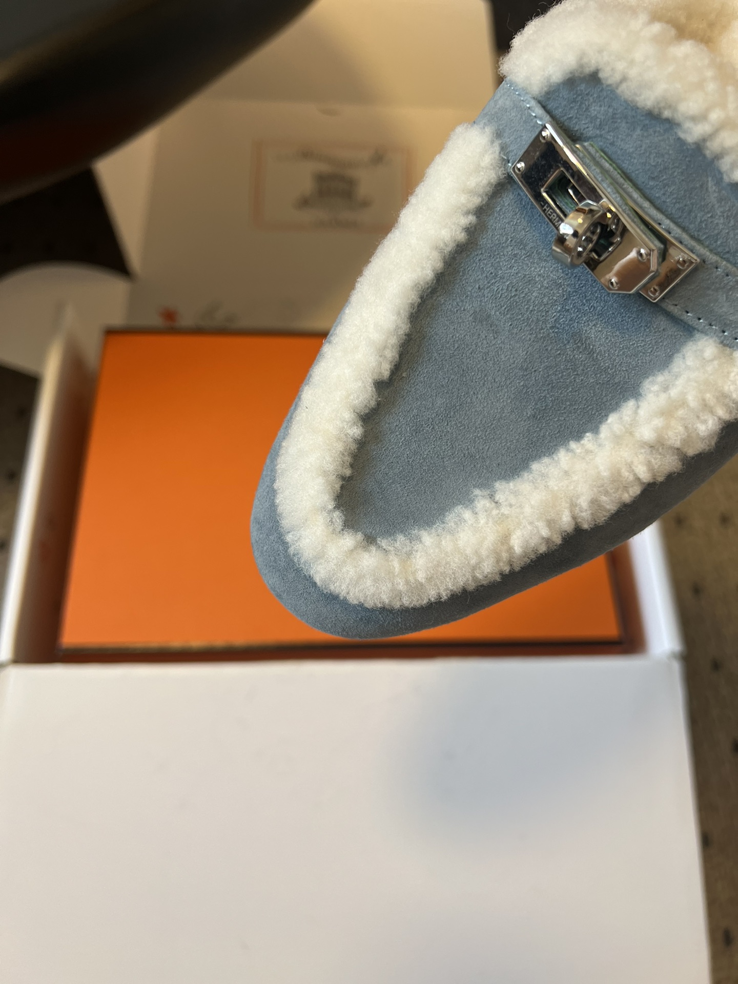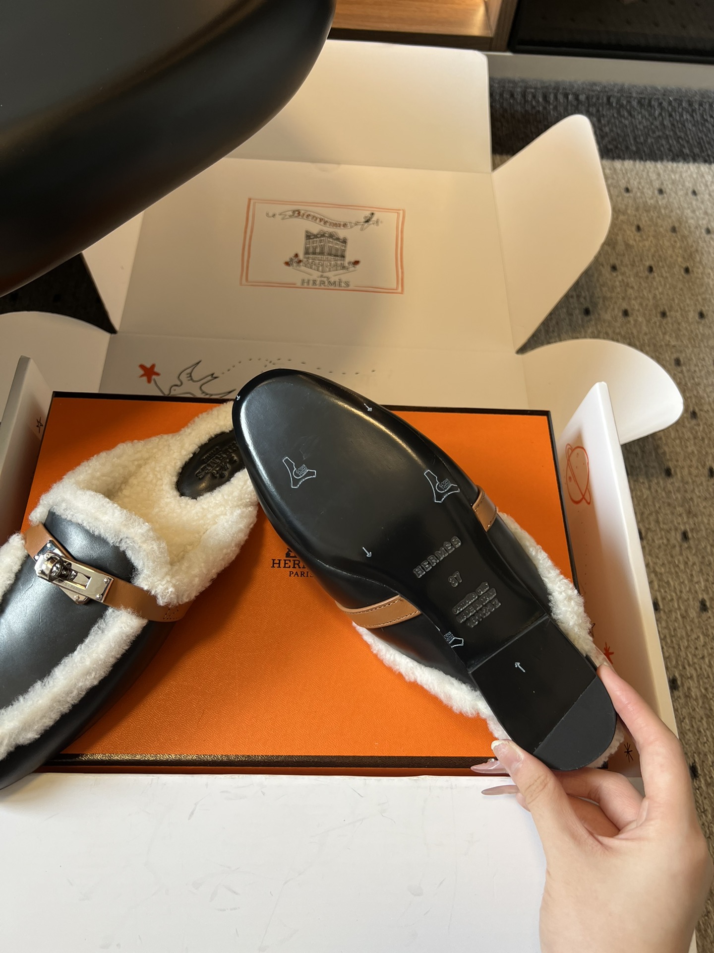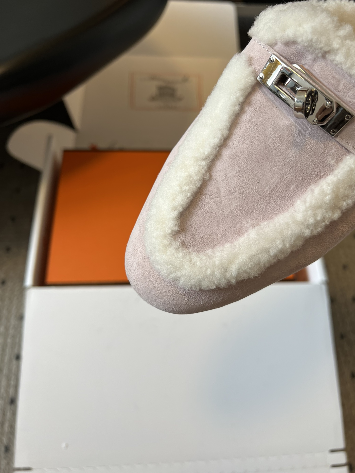 NIGO Hermes Women's Winter Suede Round-Toe Flat Half-Slip-On Shoes, Casual Solid Color Slip-On Slippers #nigo81517