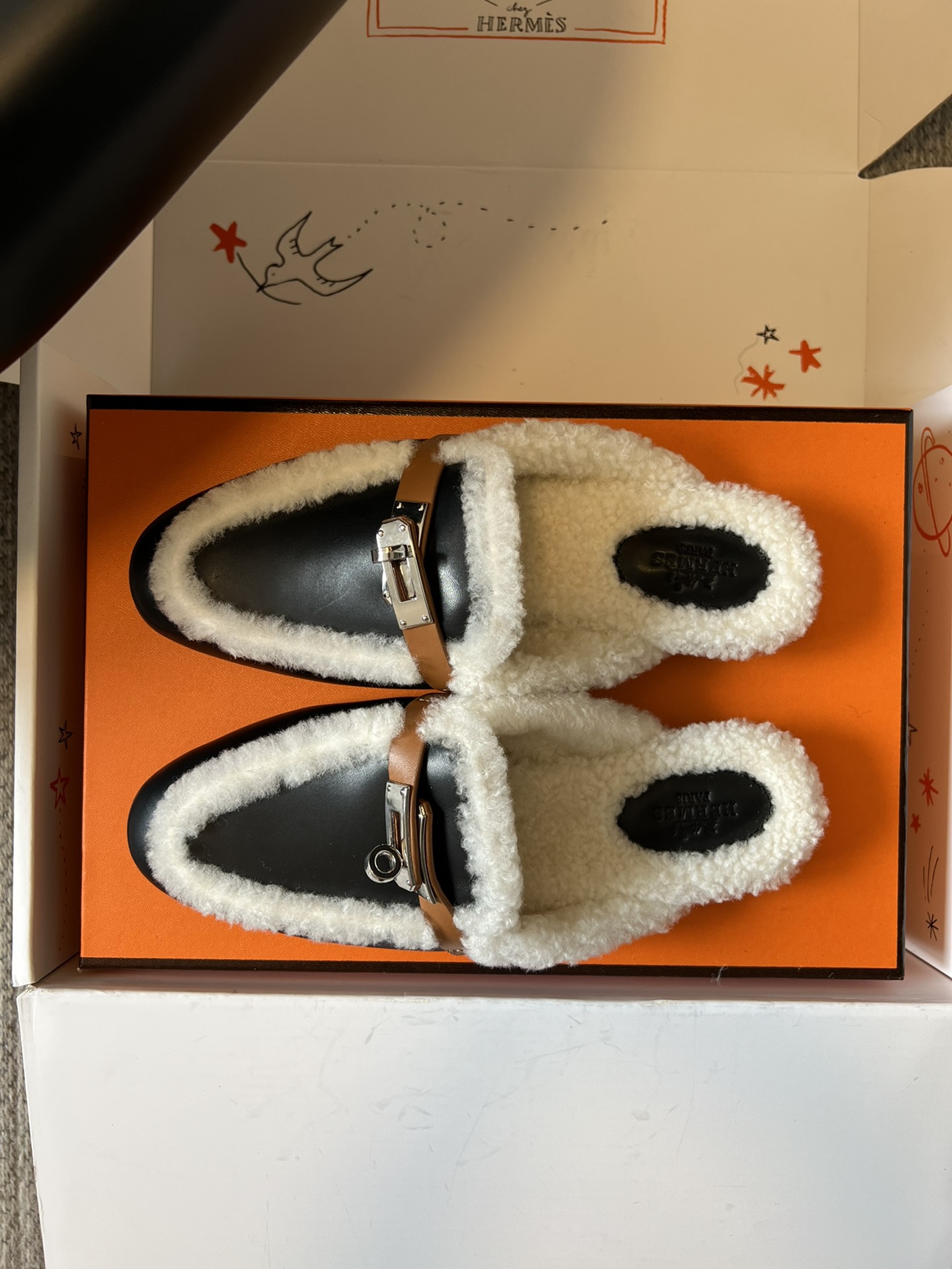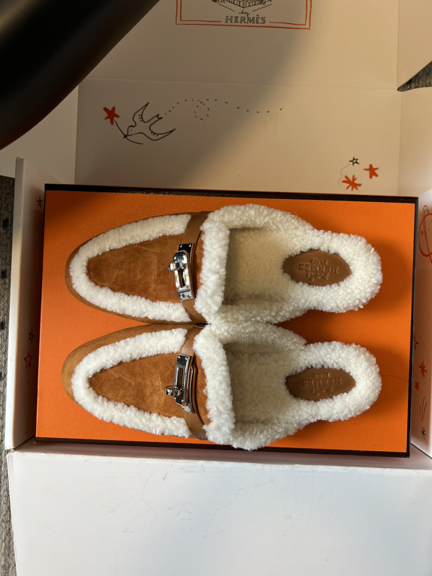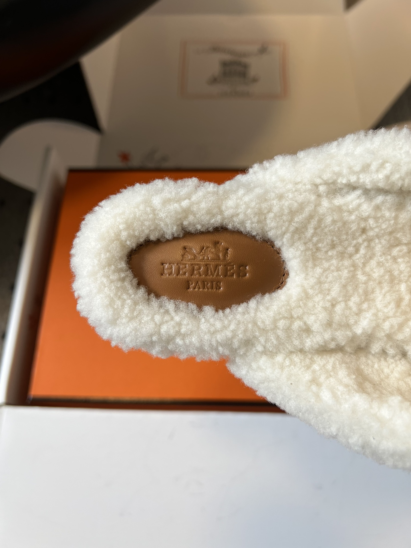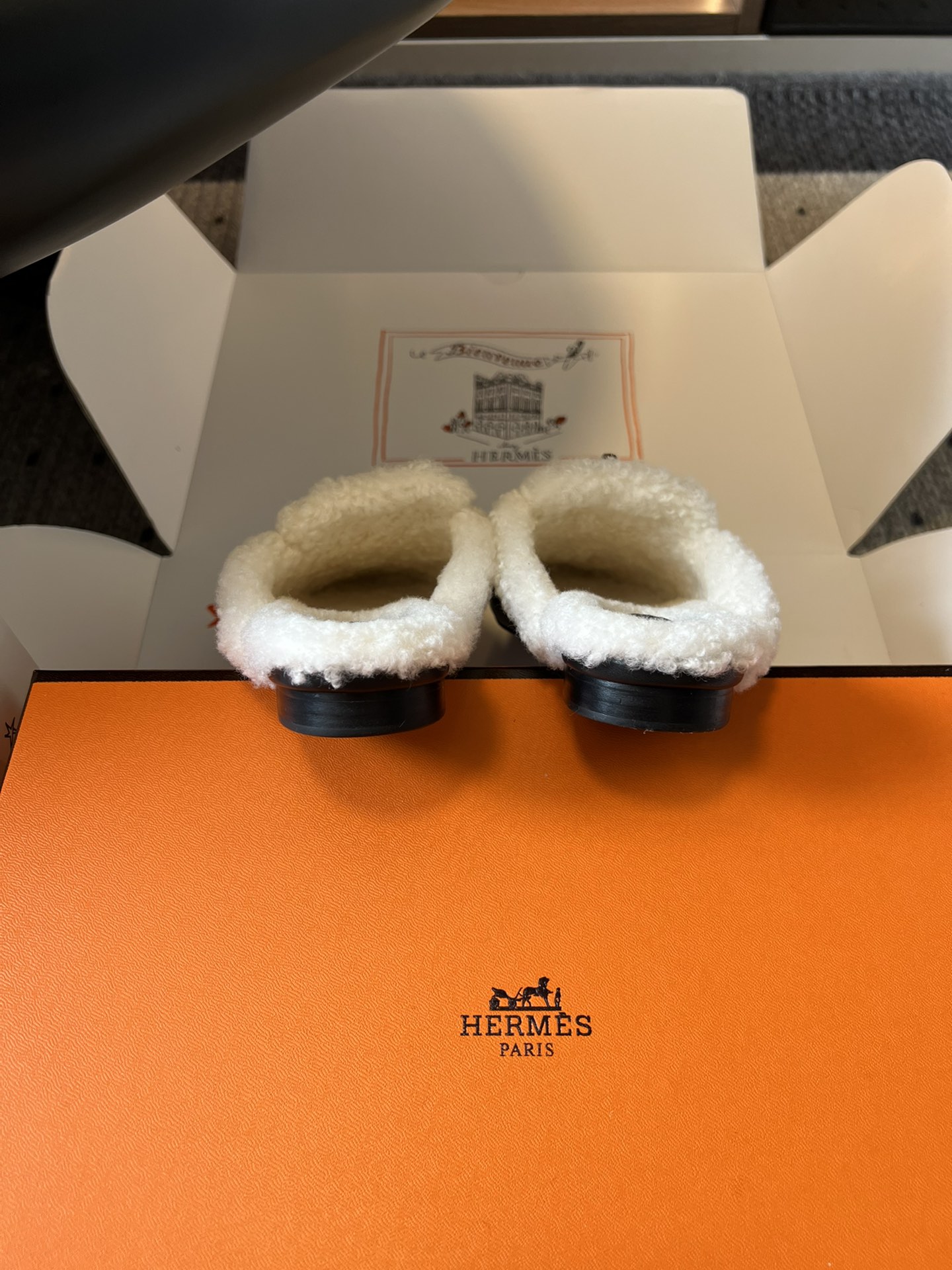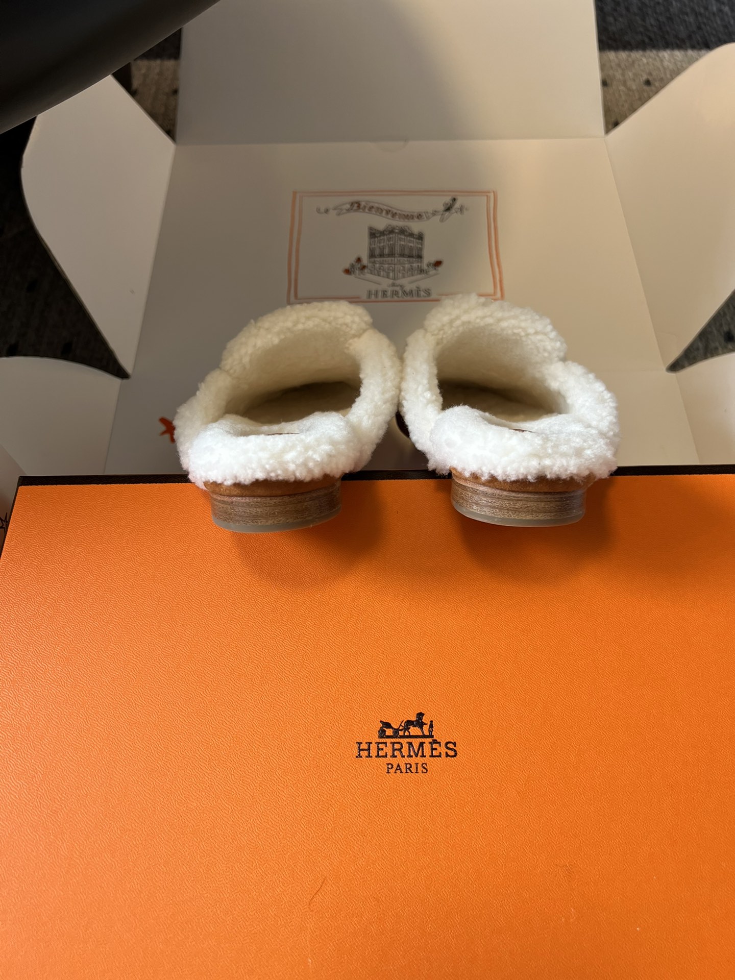 NIGO Hermes Women's Winter Suede Round-Toe Flat Half-Slip-On Shoes, Casual Solid Color Slip-On Slippers #nigo81517