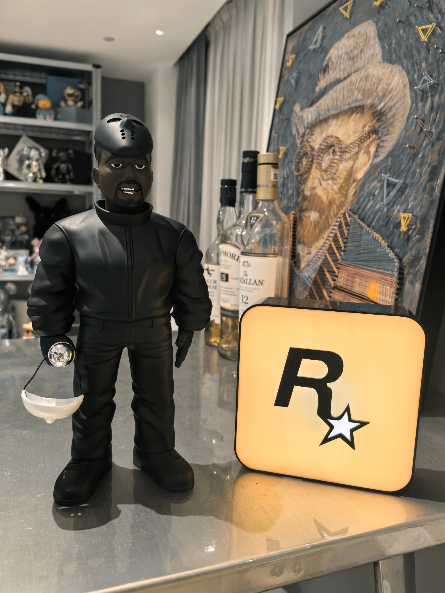 NIGO kanye west Fashion Kanye Play Character Hand Puppet With Two Masks Silver Microphone Creative Desktop Ornaments Jewelry Ngvp #nigo9327