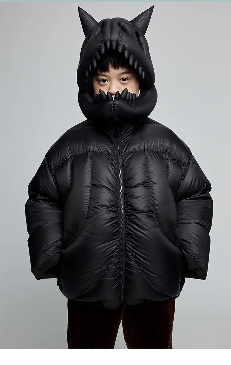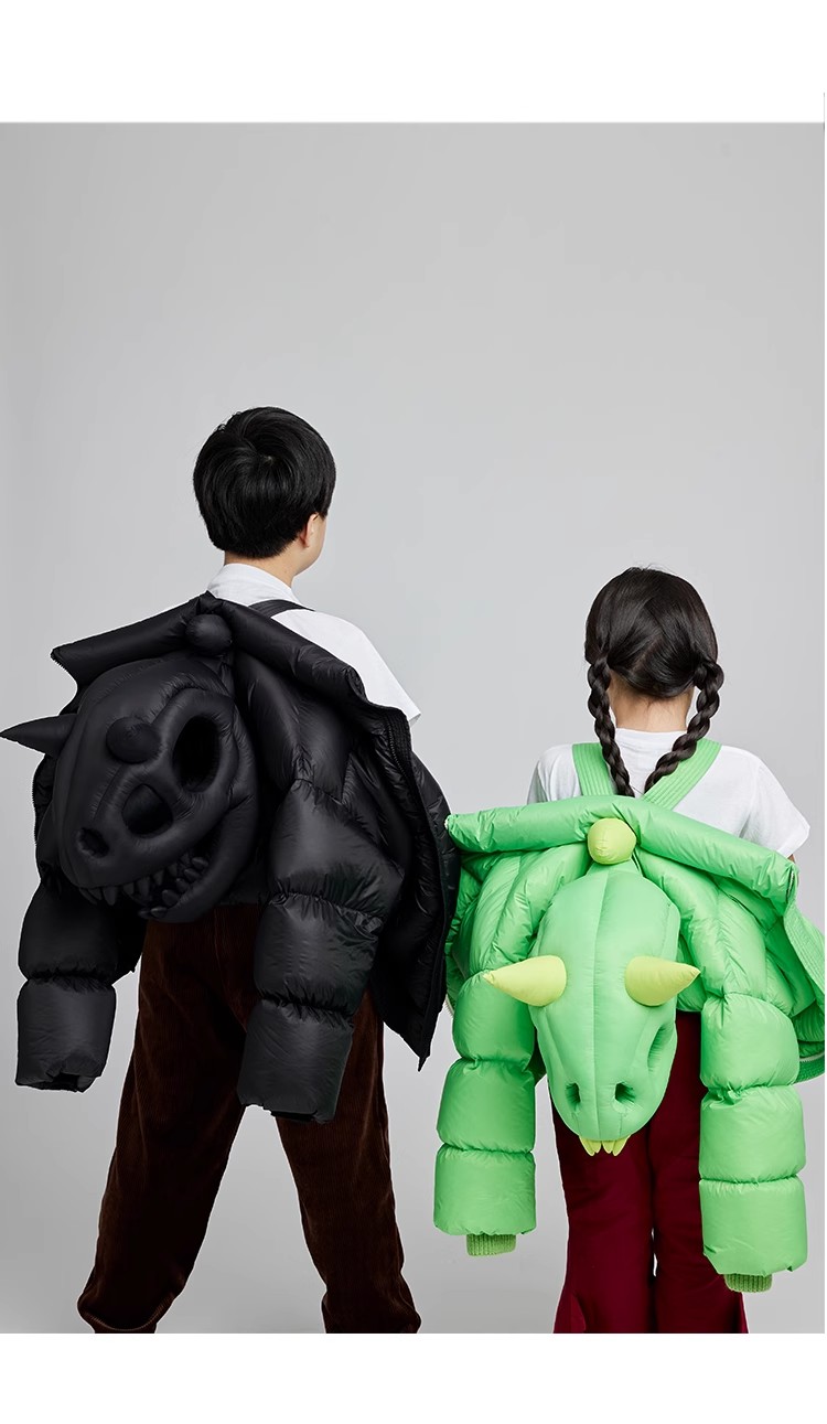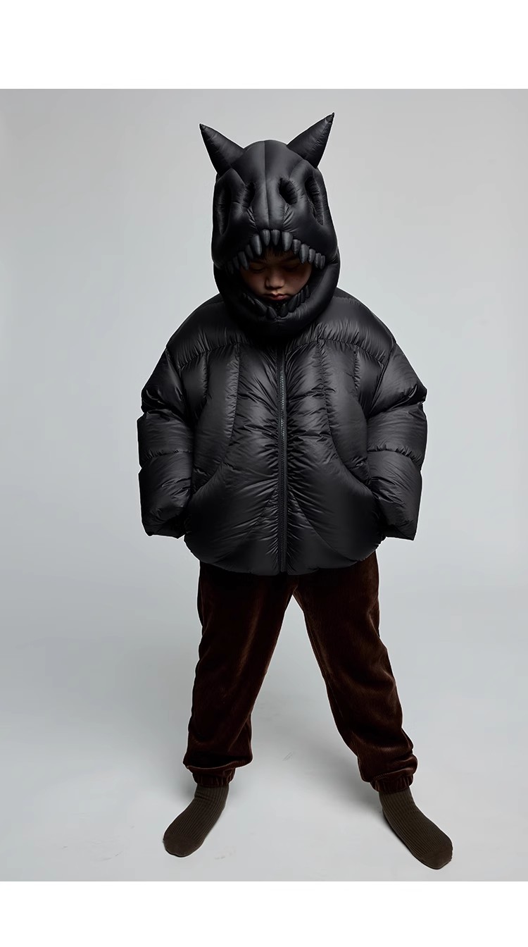 NIGO Kid's Autumn And Winter Solid Color Long Sleeve Stereoscopic Dinosaur Shaped Hat Puffer Down Jacket #nigo31325