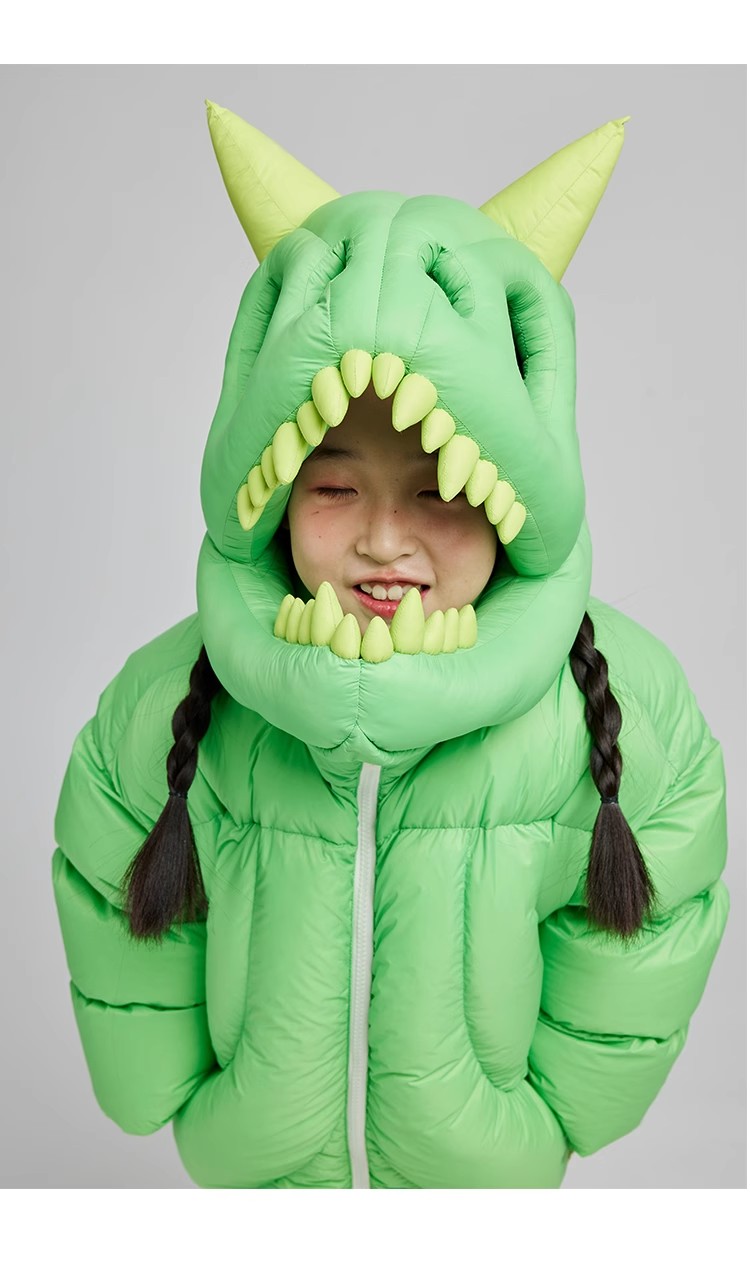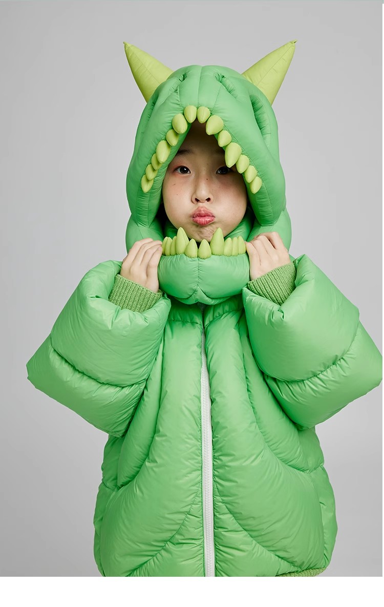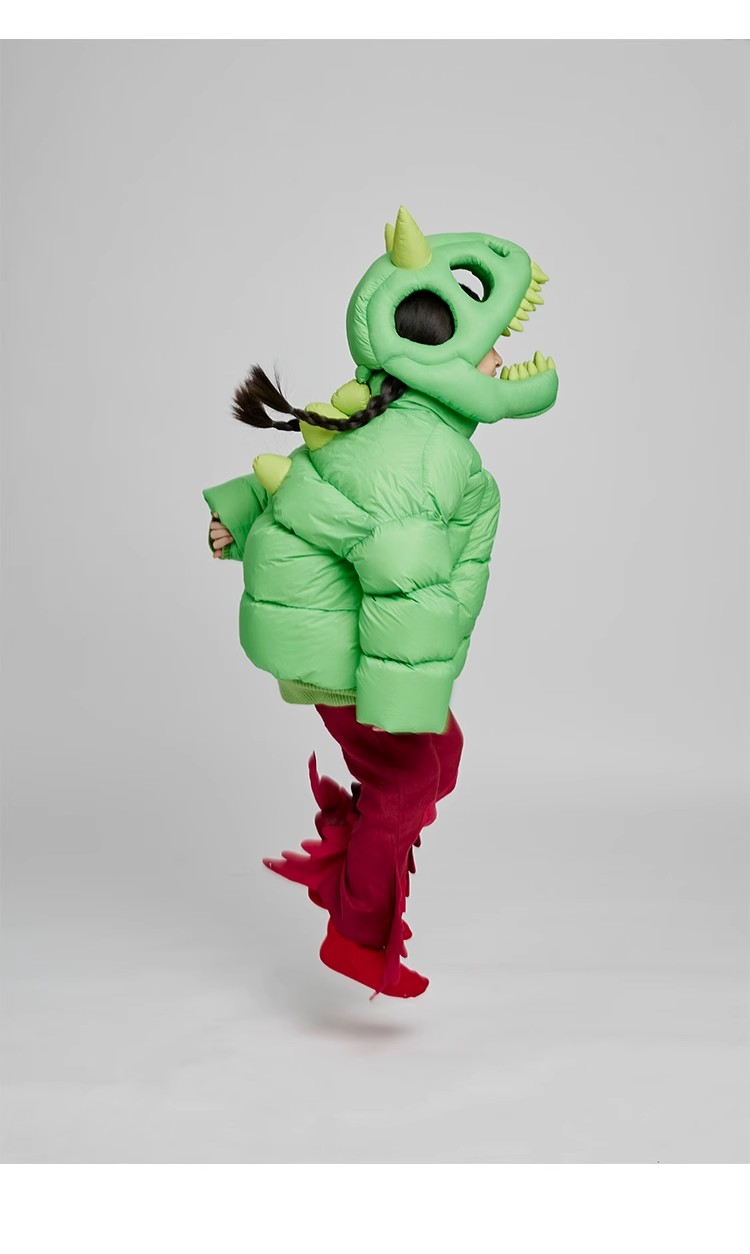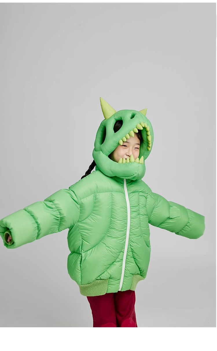NIGO Kid's Autumn And Winter Solid Color Three-Dimensional Cutting Dinosaur Cap Hooded Loose Long-Sleeved Puffer Down Jacket #nigo31323