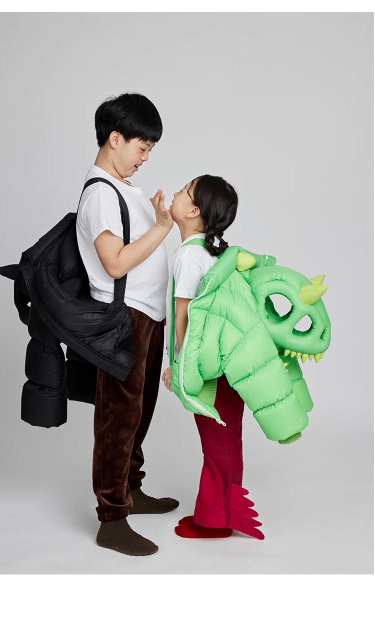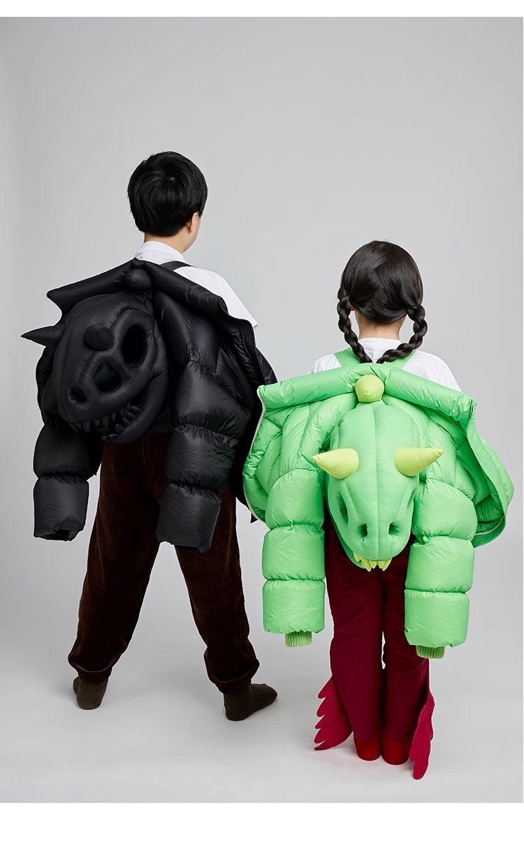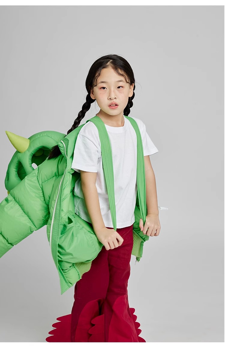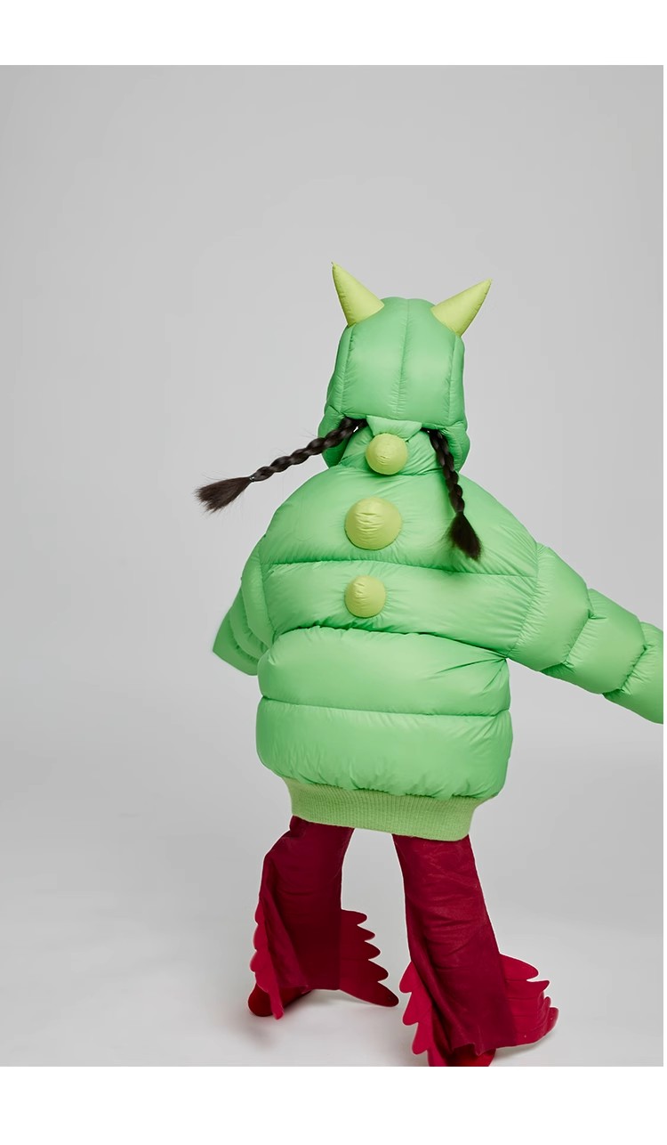 NIGO Kid's Autumn And Winter Solid Color Three-Dimensional Cutting Dinosaur Cap Hooded Loose Long-Sleeved Puffer Down Jacket #nigo31323