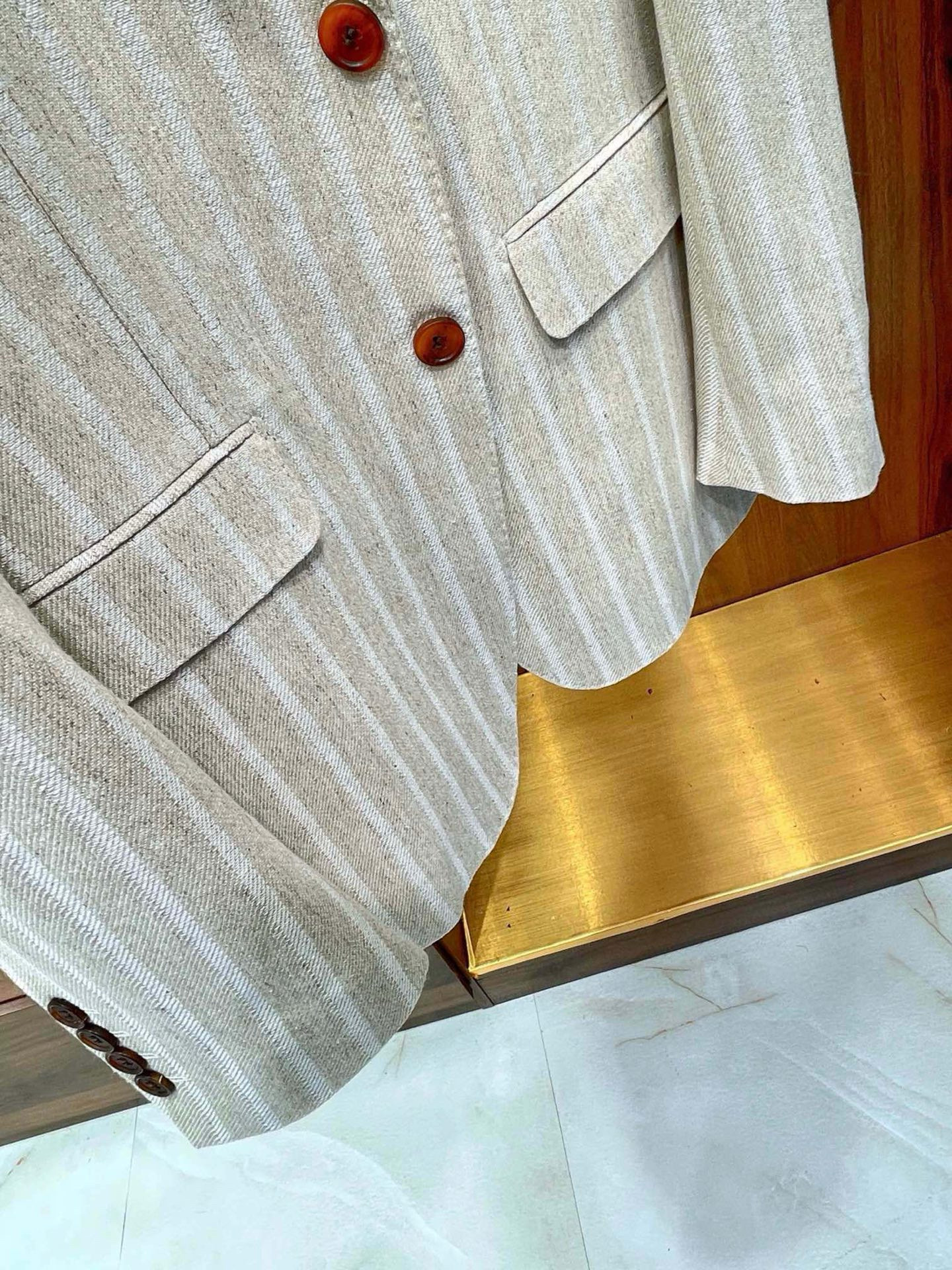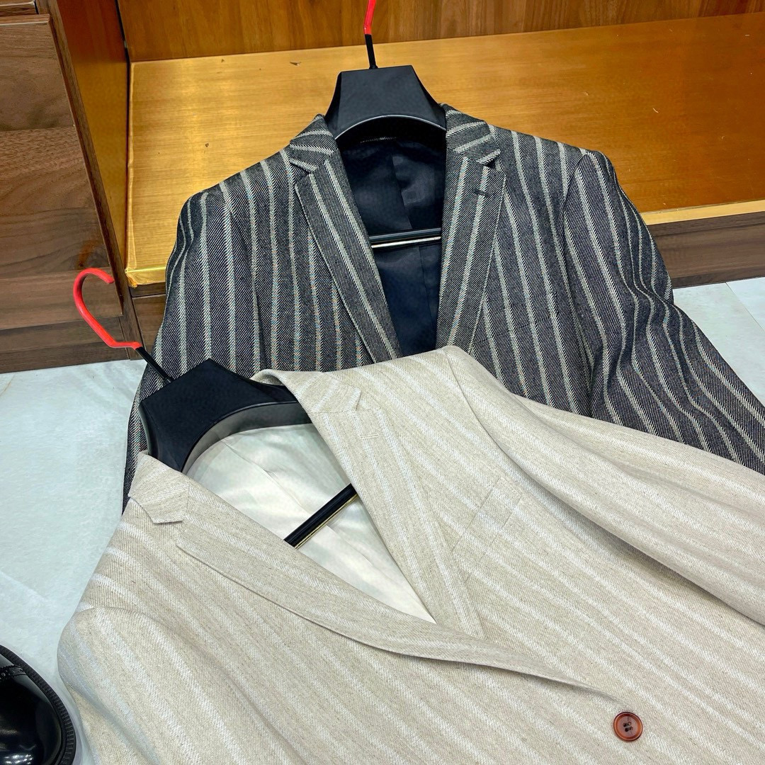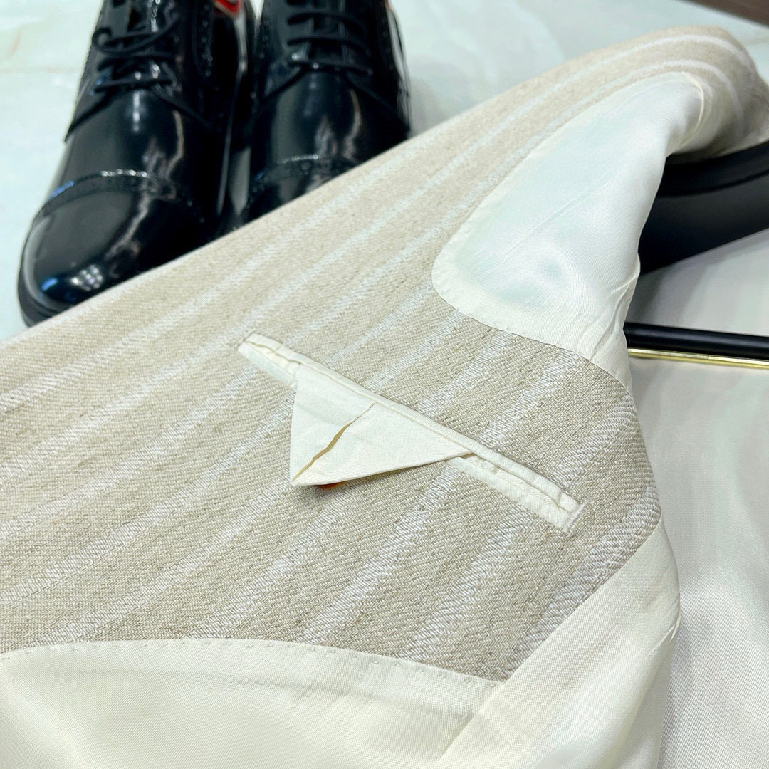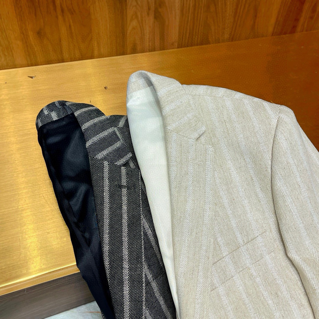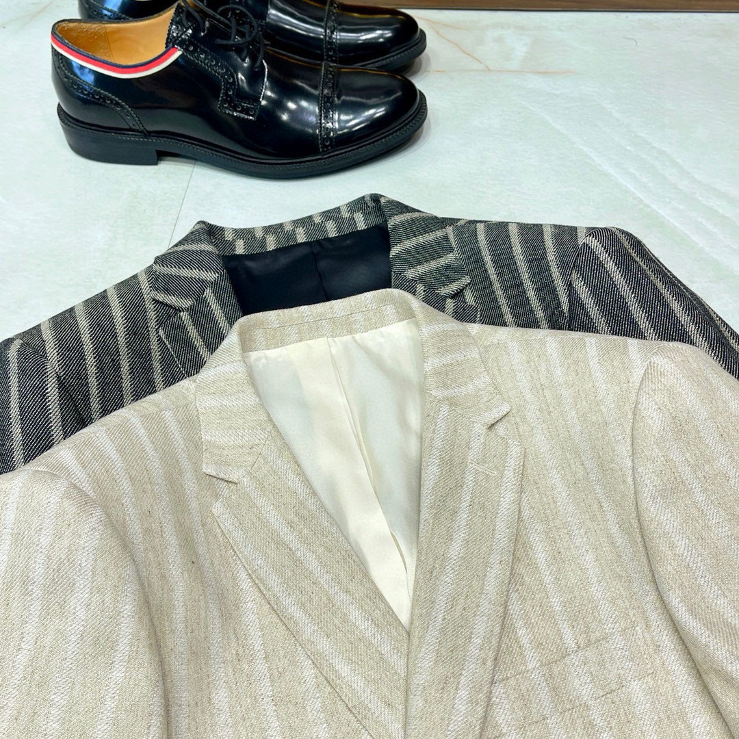 NIGO Kiton Men's Spring/Fall Striped Linen Solid-Color Lapel Single-Breasted Long-Sleeve Slim-Fit Blazer Jacket Ngvp #nigo2394