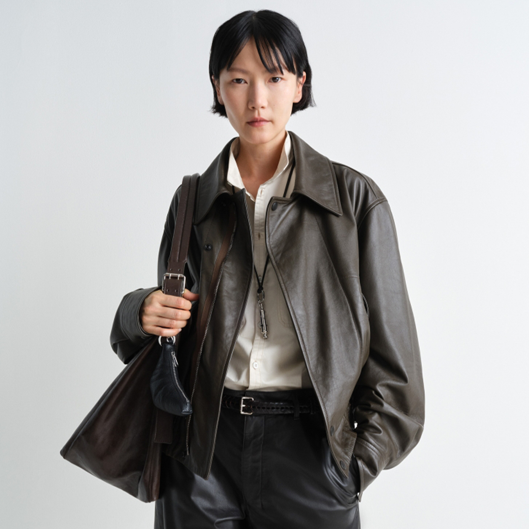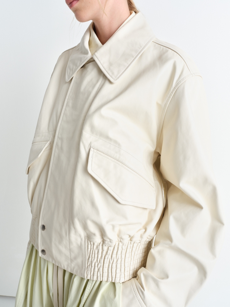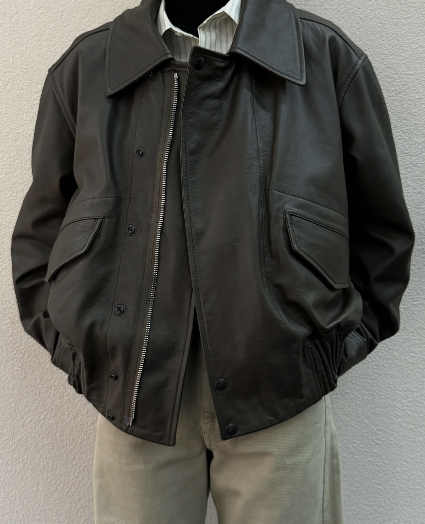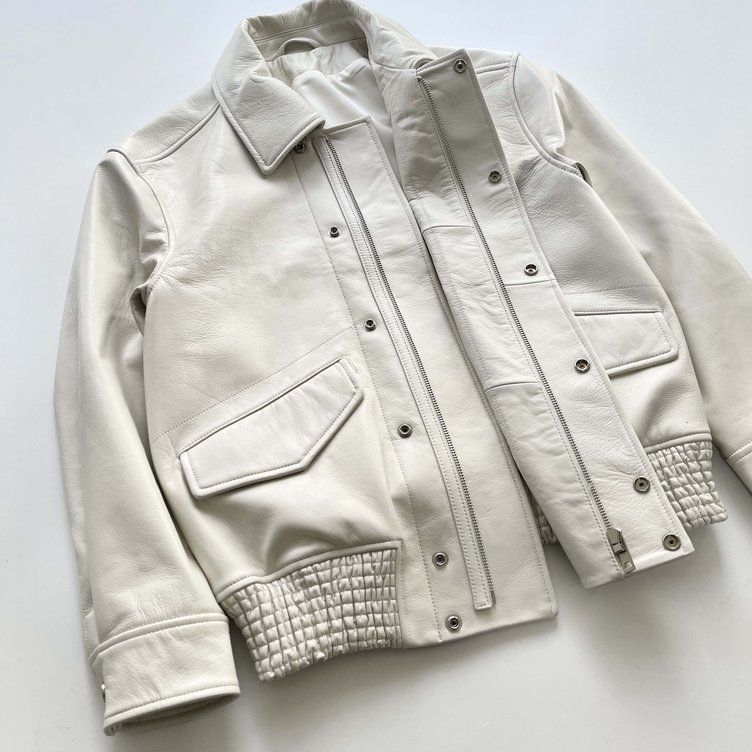 NIGO Lemaire Women's Men's Autumn And Winter Cream White Loose Pilot Leather Jacket Solid Color Fashion Trend Casual Lapel Long Sleeve Zipper Jacket Ngvp #nigo2453