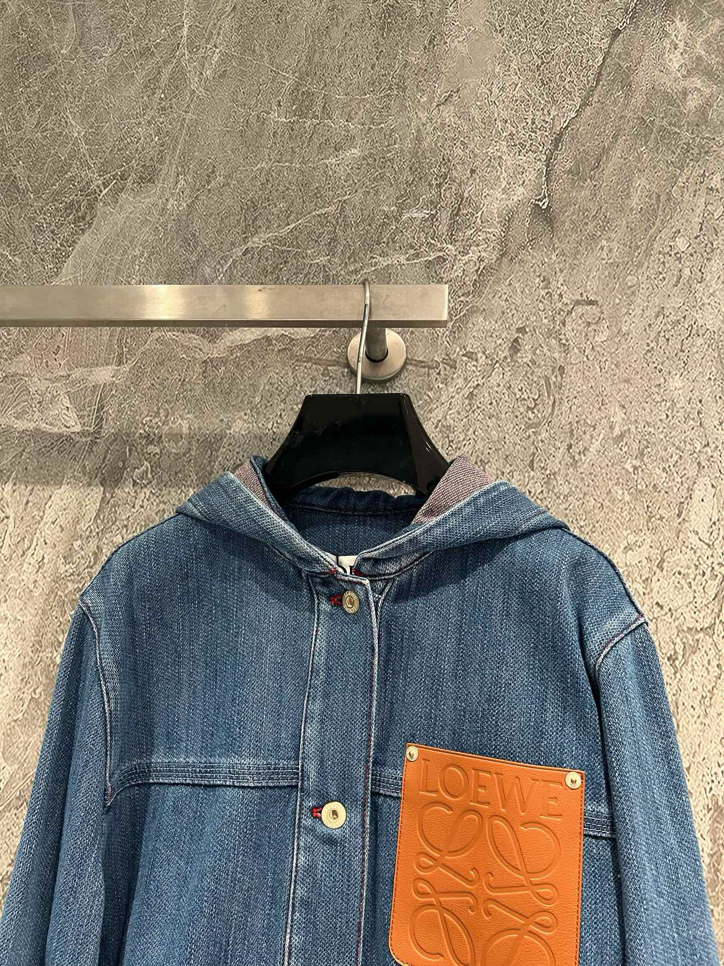 L NIGO LOEWE Women's Spring and Autumn Solid Color Cowboy Hoodie Single breasted Long sleeved Jacket