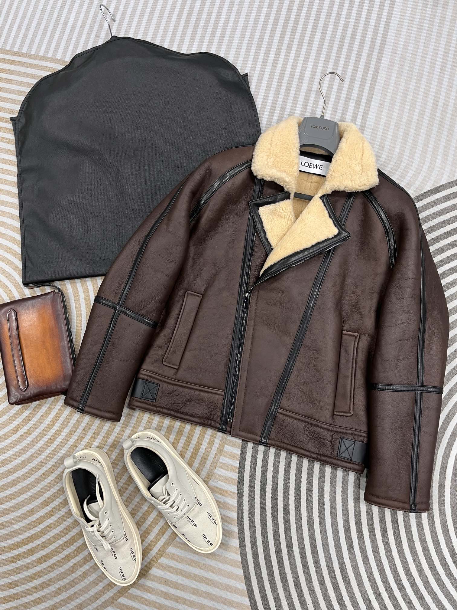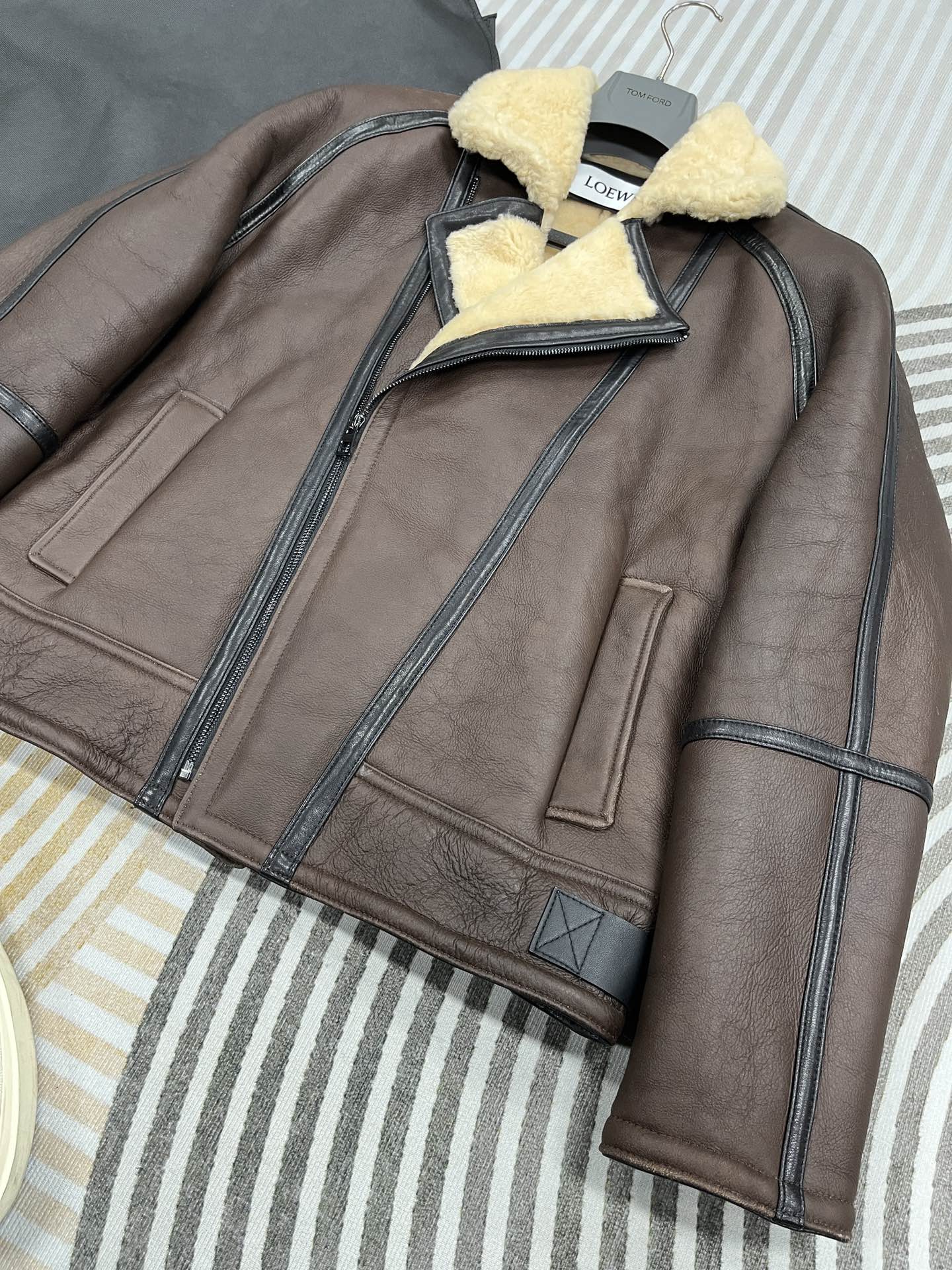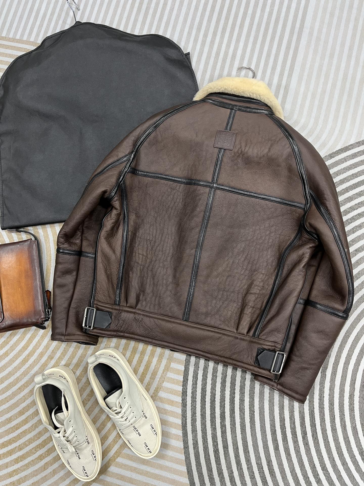 NIGO Loewe Men's Autumn And Winter Shearling Pilot Jacket Solid Color Zipper Lapel Loose Leather Jacket Ngvp #nigo9776