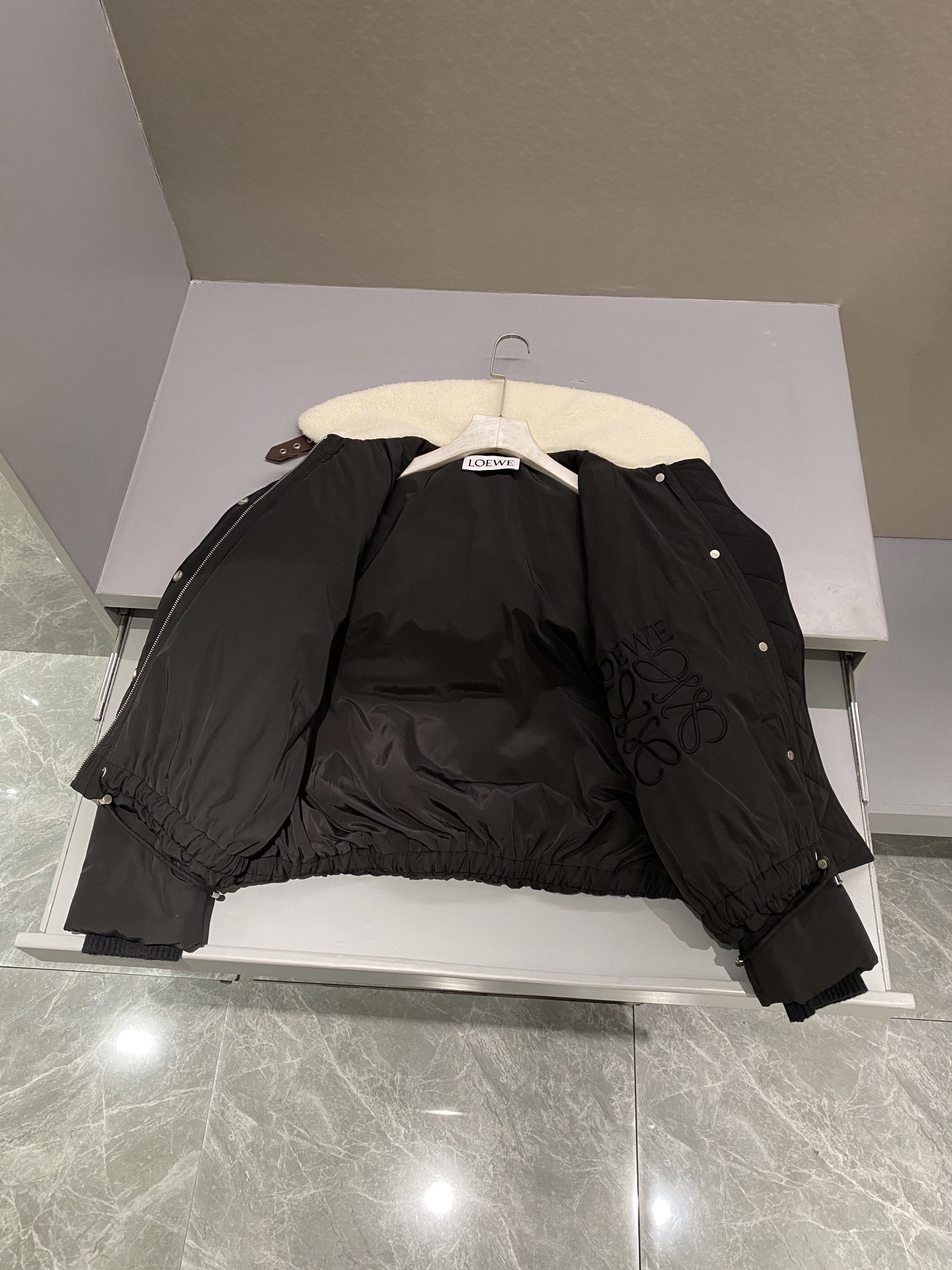 NIGO Loewe Women's Autumn and Winter Solid Color Detachable Shearling Collar Zipper Long Sleeve Jacket #nigo74767