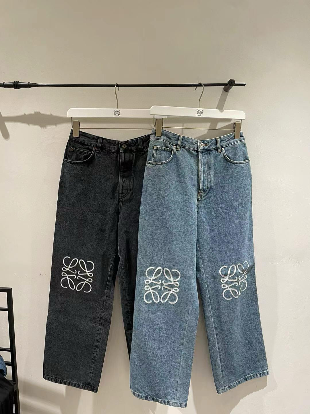 NIGO Loewe Women's Spring and Autumn Logo Print Solid Color Low Rise Zipper Loose Jeans Pants #nigo75751