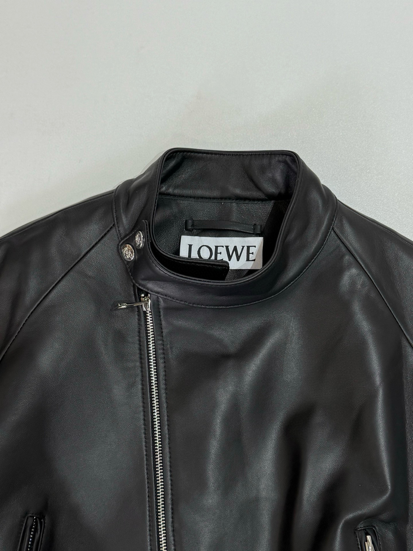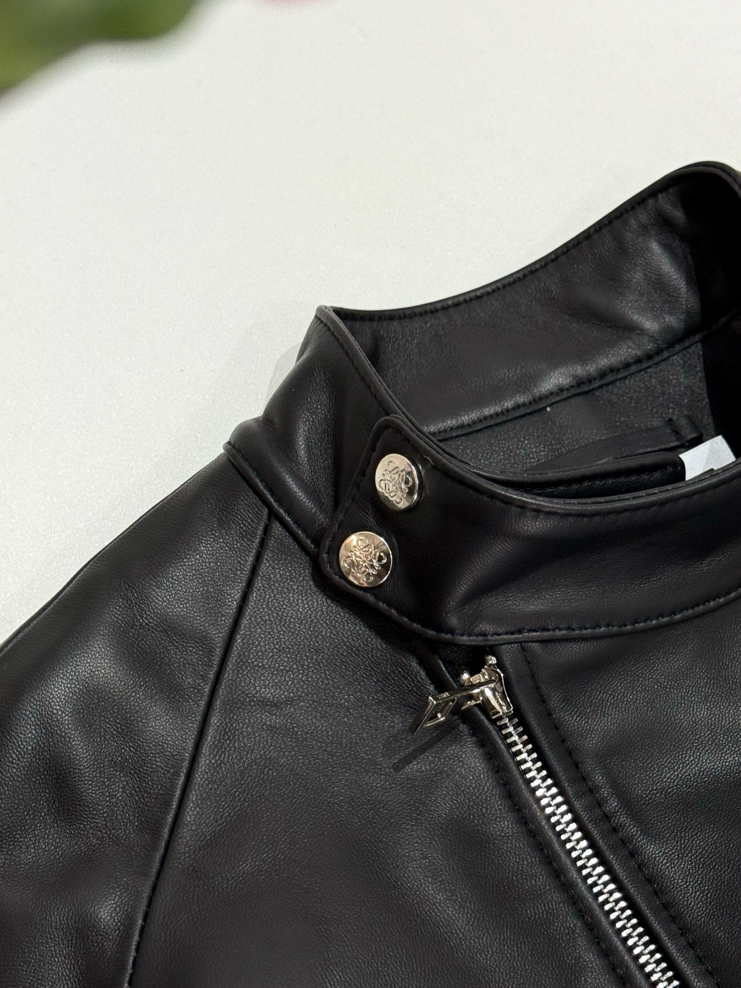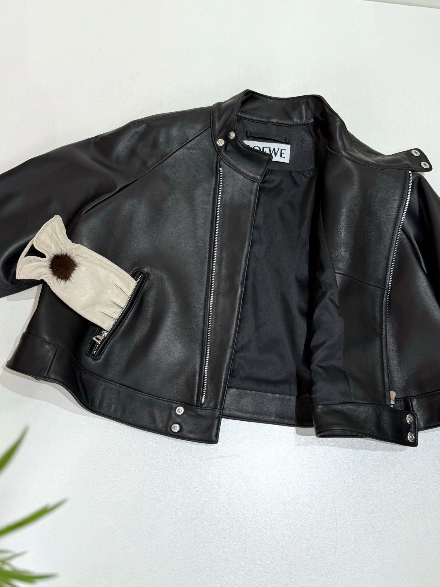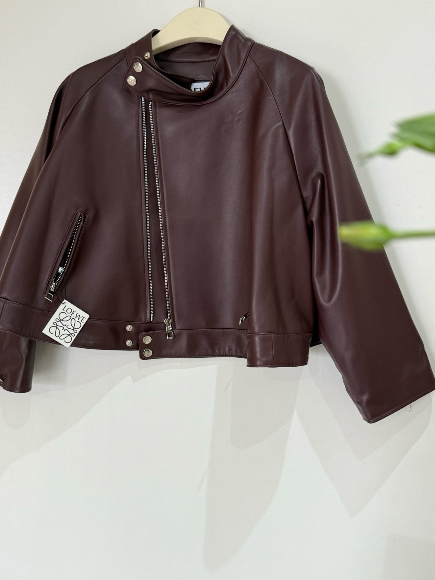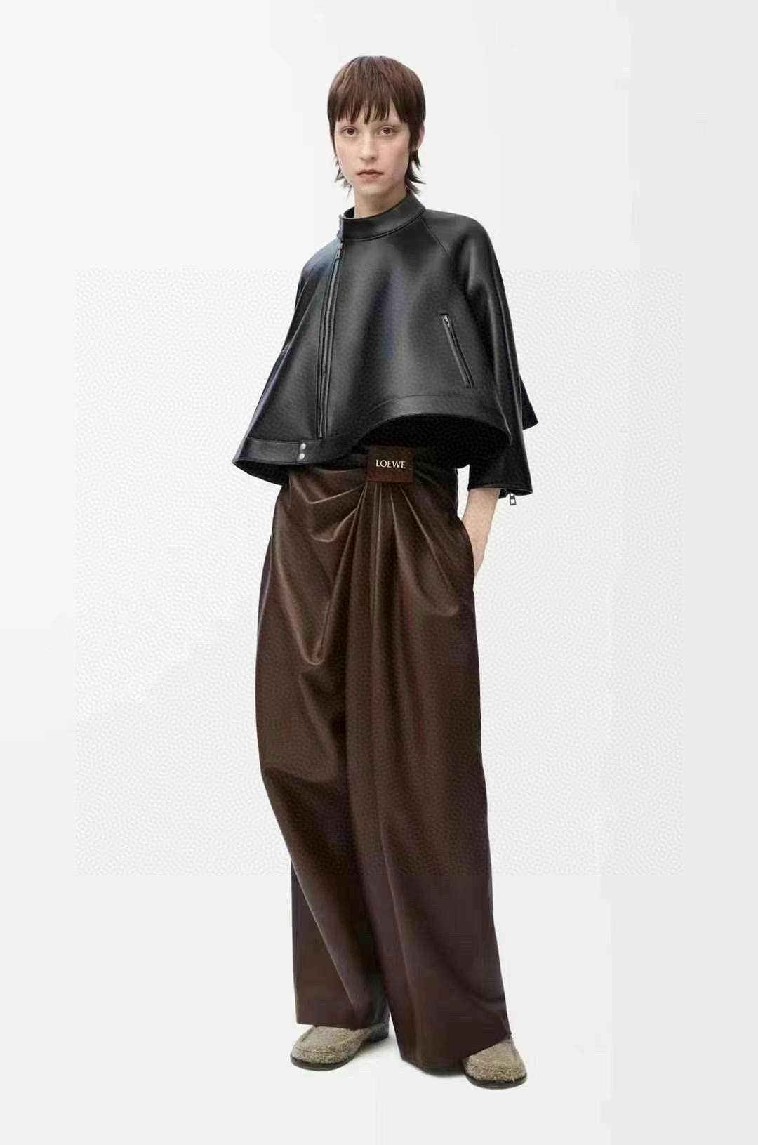 NIGO Loewe Women's Spring and Autumn Solid Color Asymmetric Zipper Leather Jacket #nigo76259