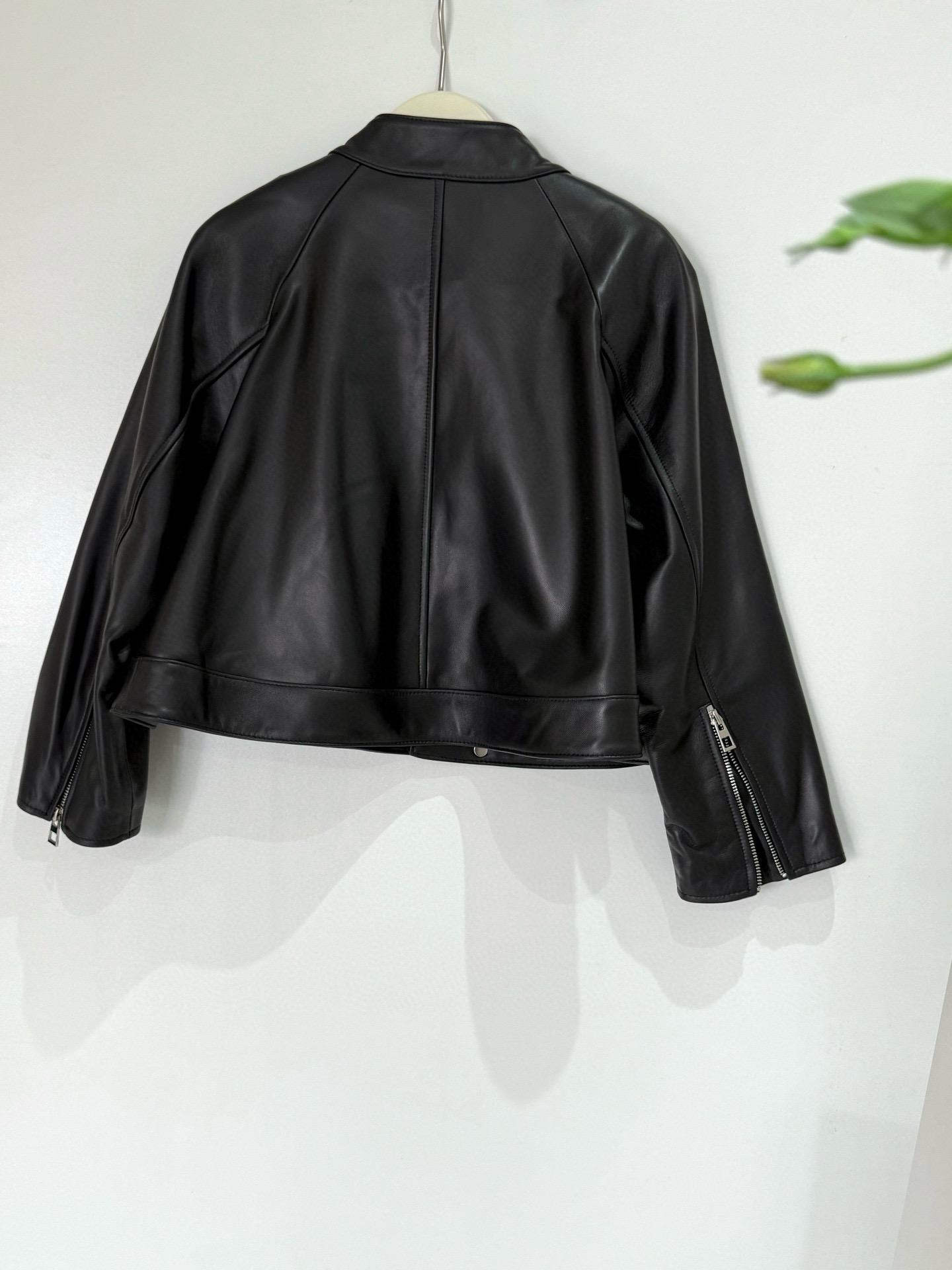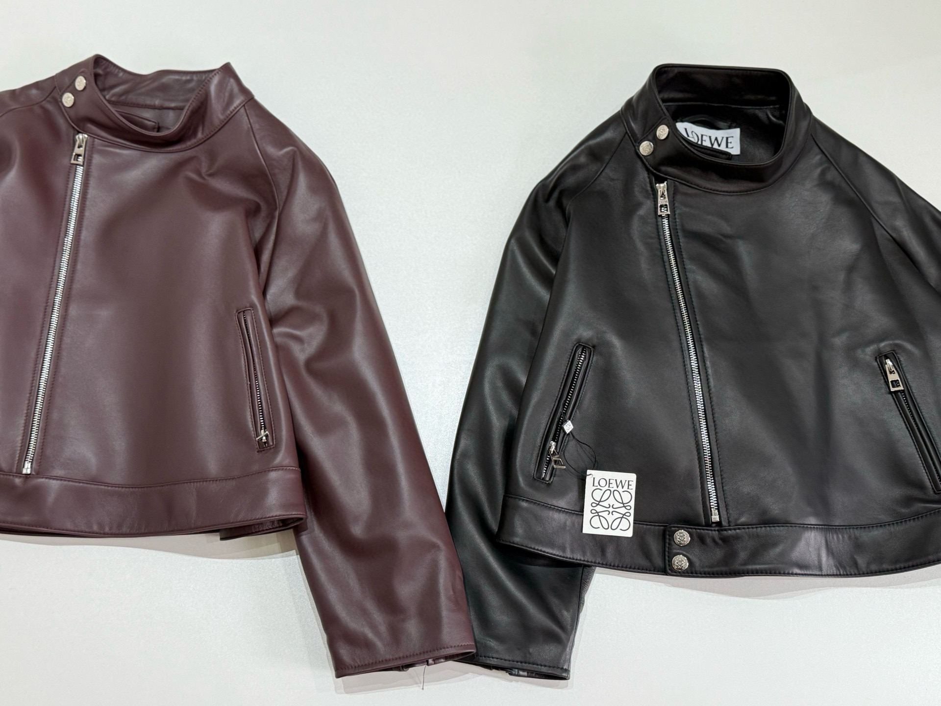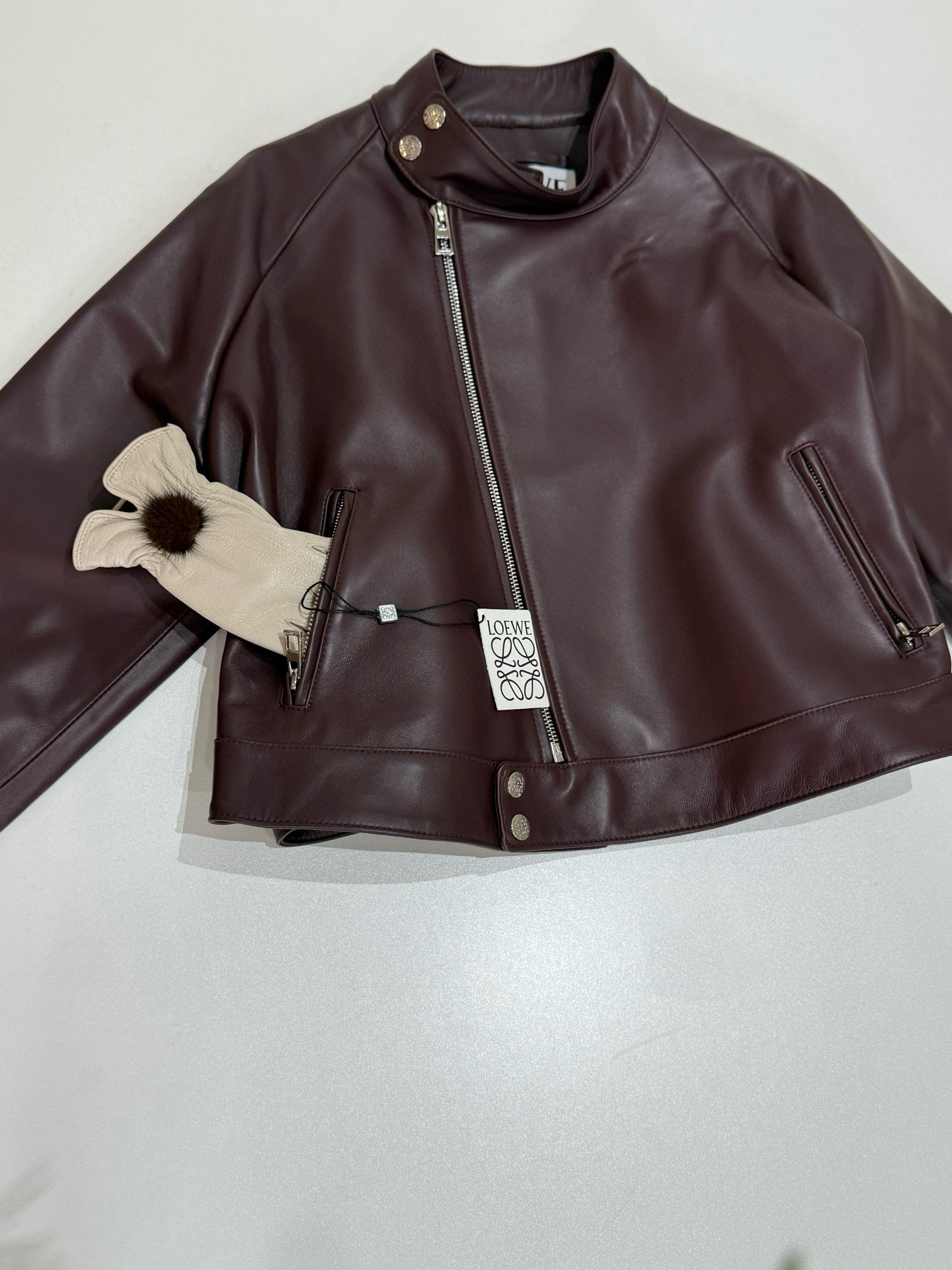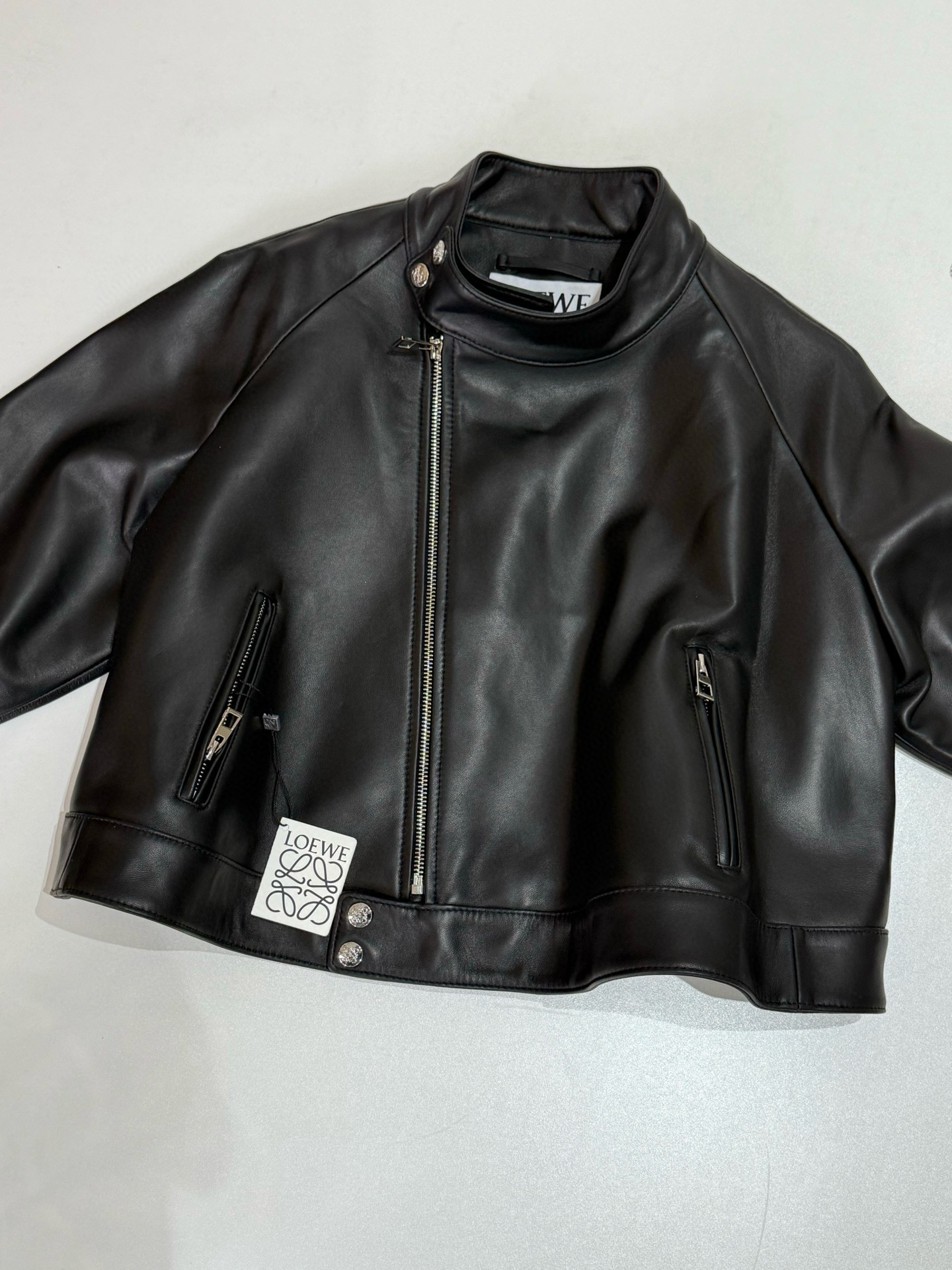 NIGO Loewe Women's Spring and Autumn Solid Color Asymmetric Zipper Leather Jacket #nigo76259