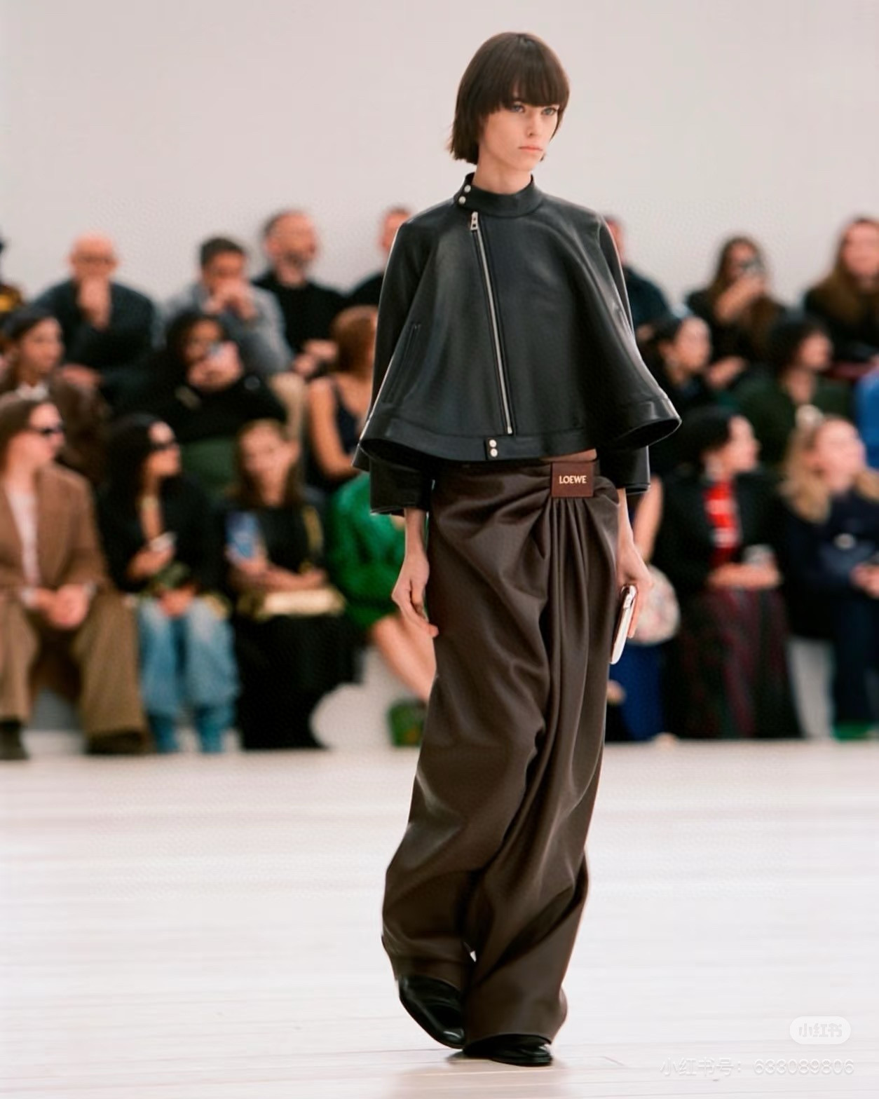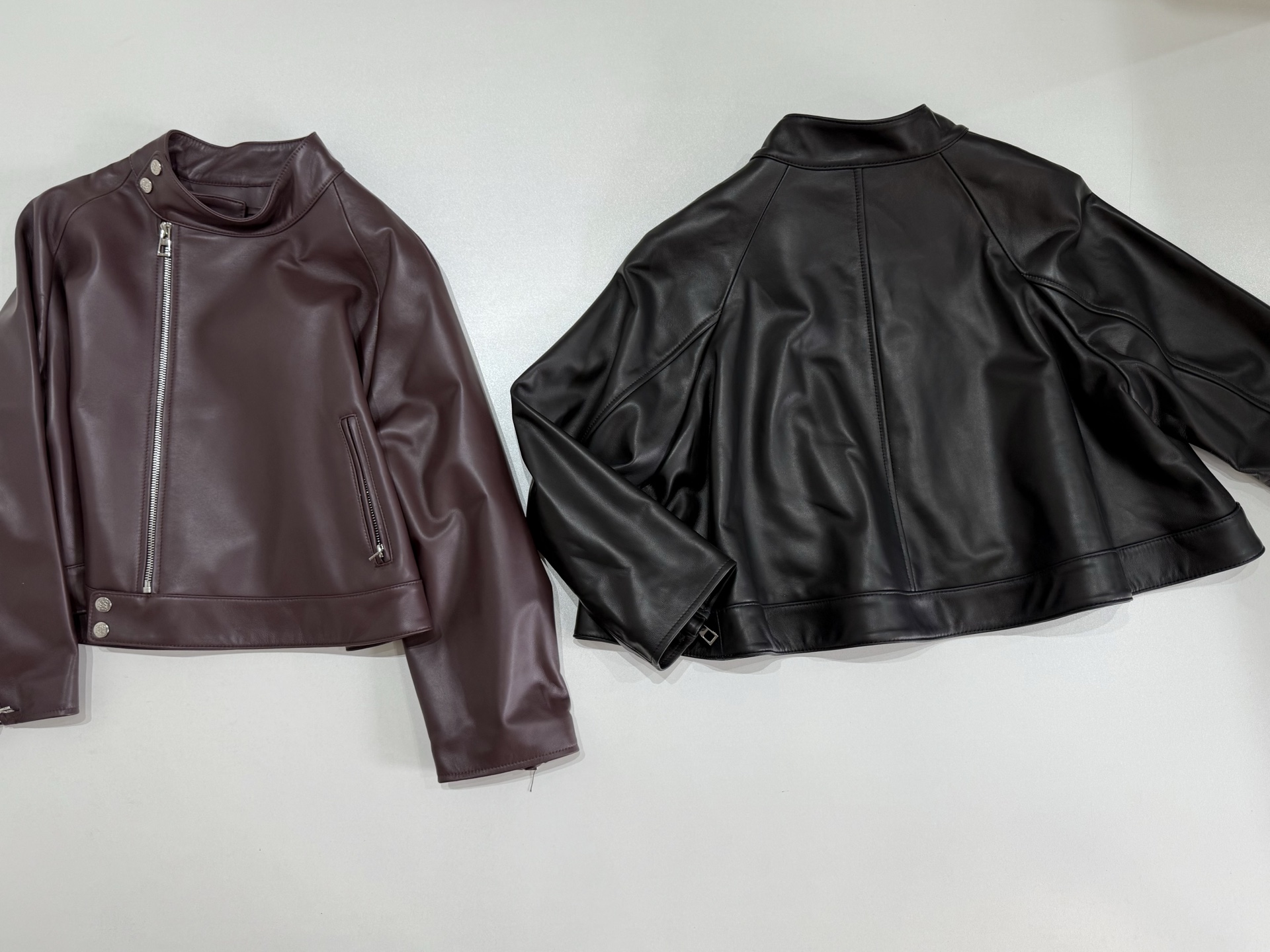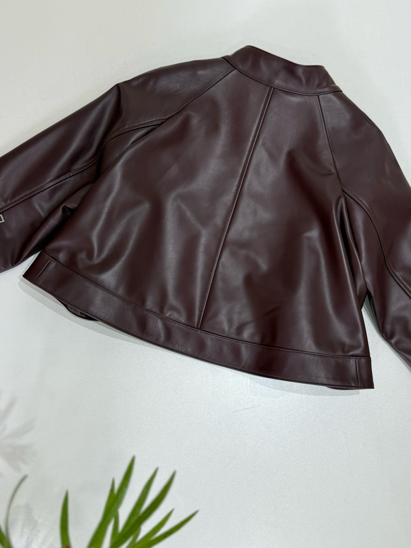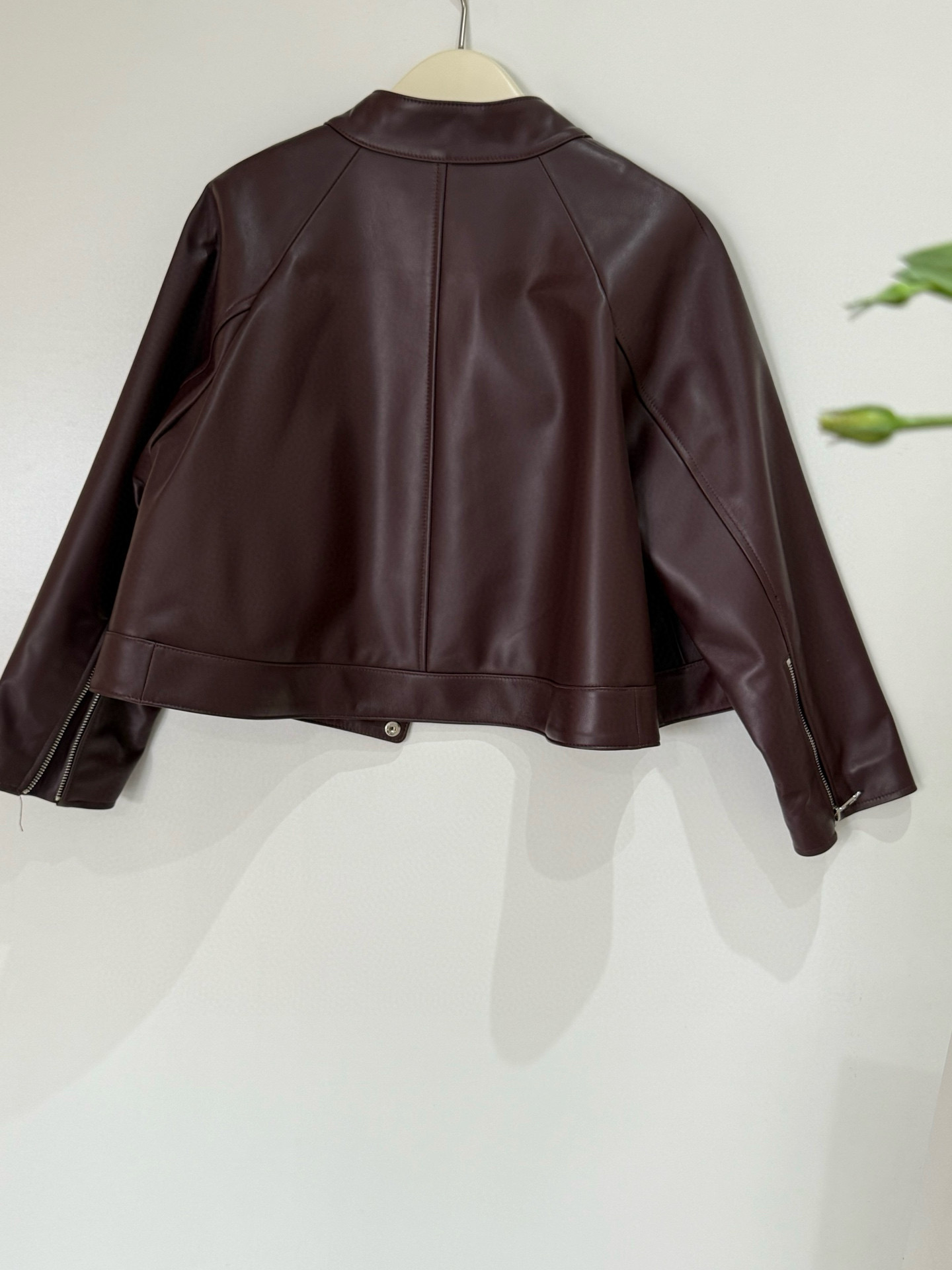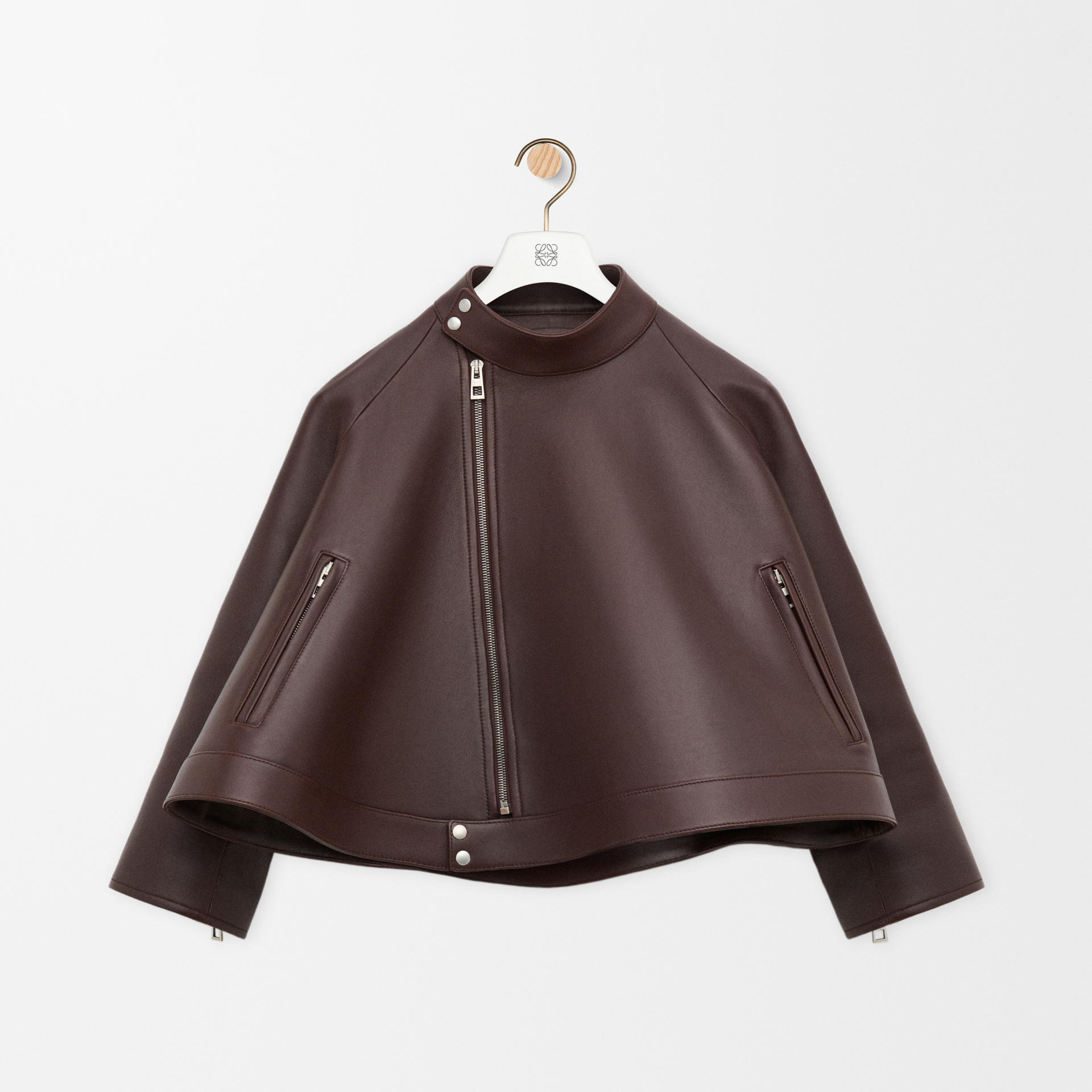 NIGO Loewe Women's Spring and Autumn Solid Color Asymmetric Zipper Leather Jacket #nigo76259