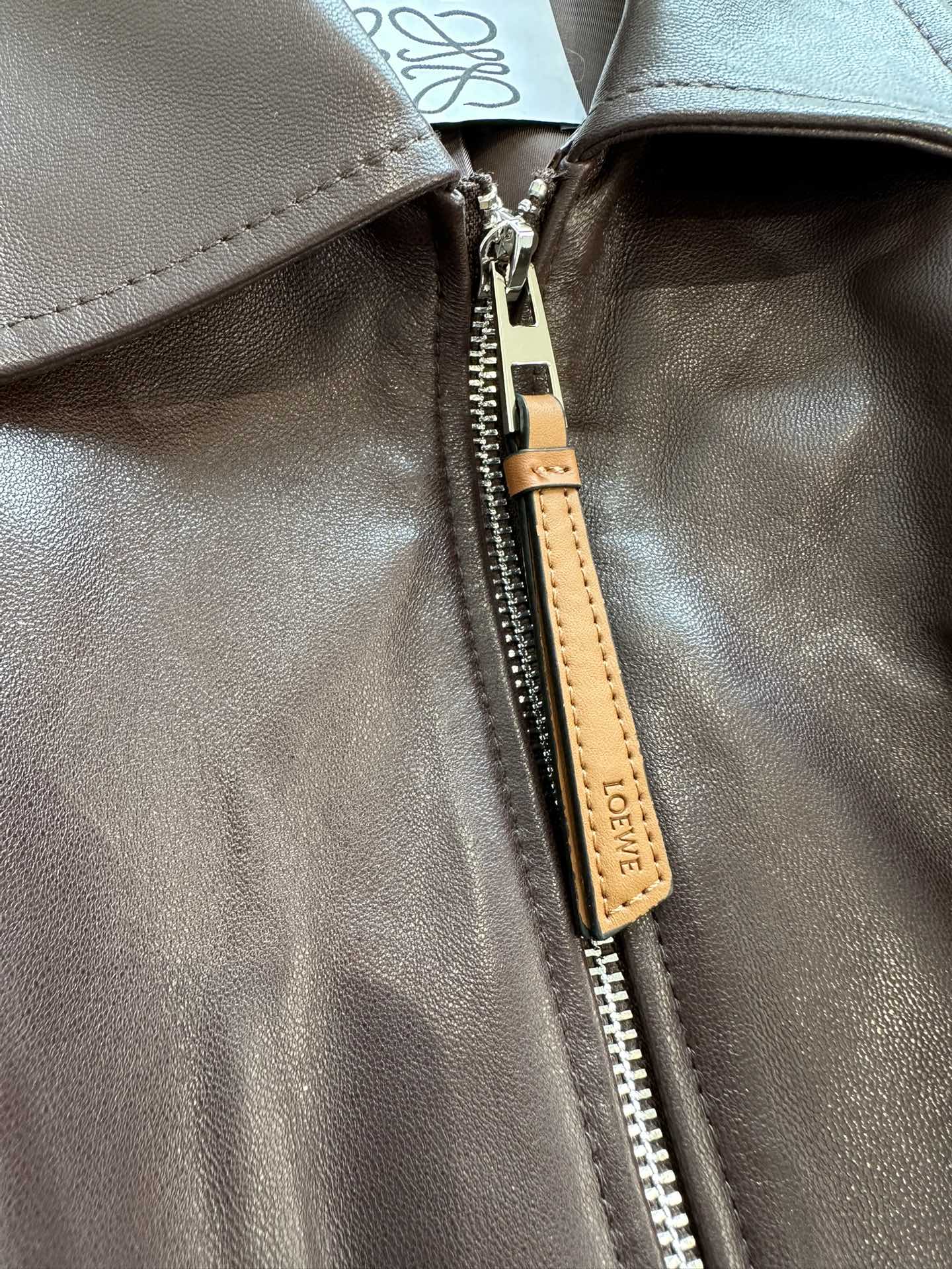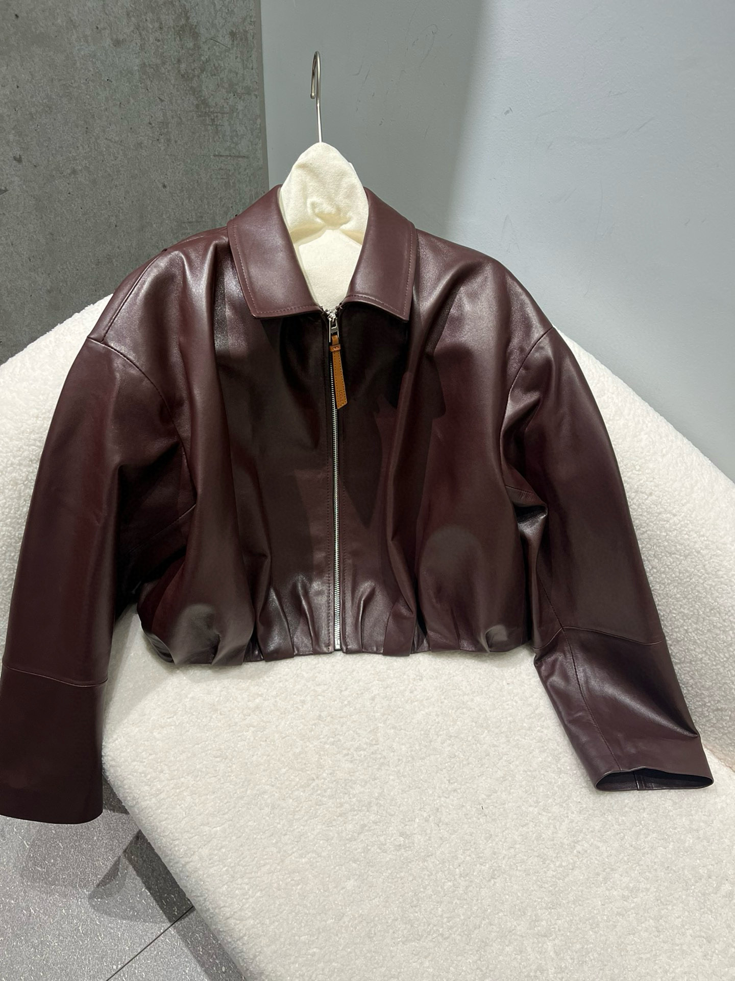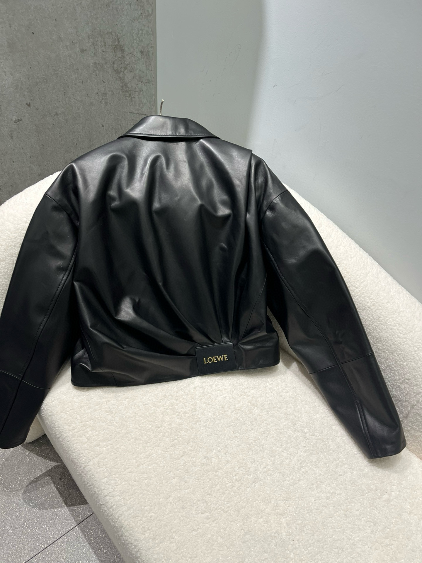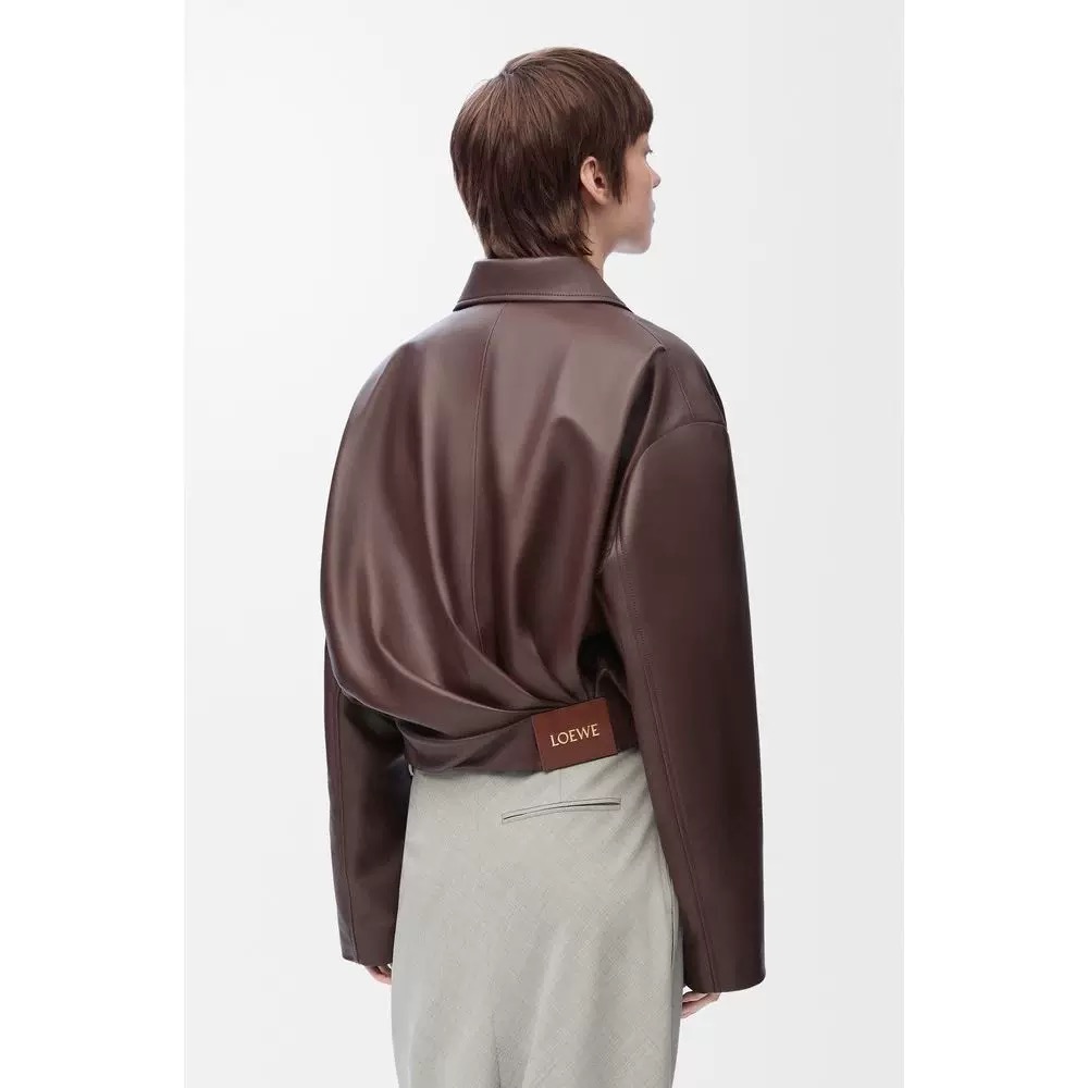 NIGO Loewe Women's Spring and Autumn Solid Color Sheepskin Pleated Zipper Long Sleeve Leather Jacket #nigo75785