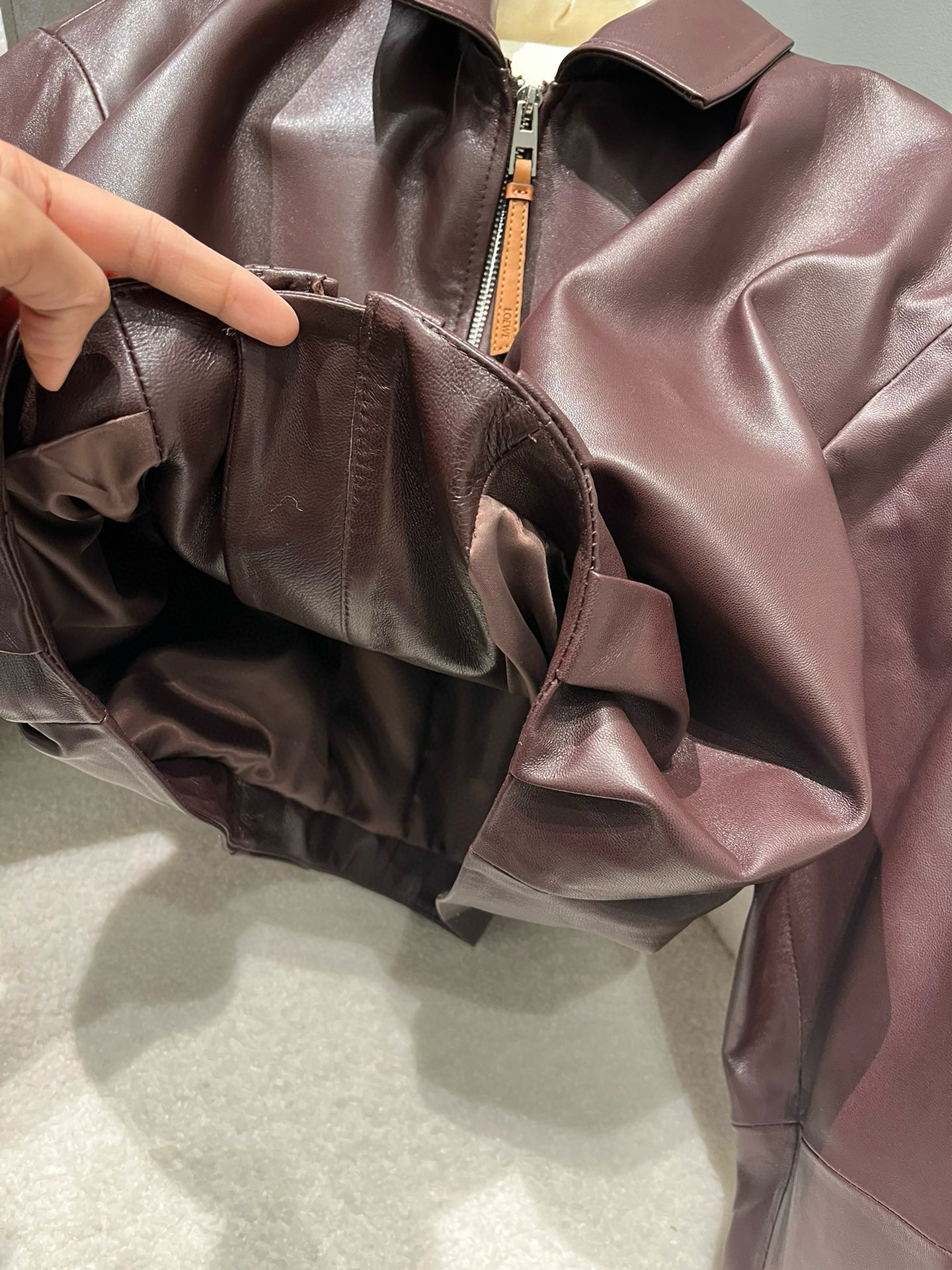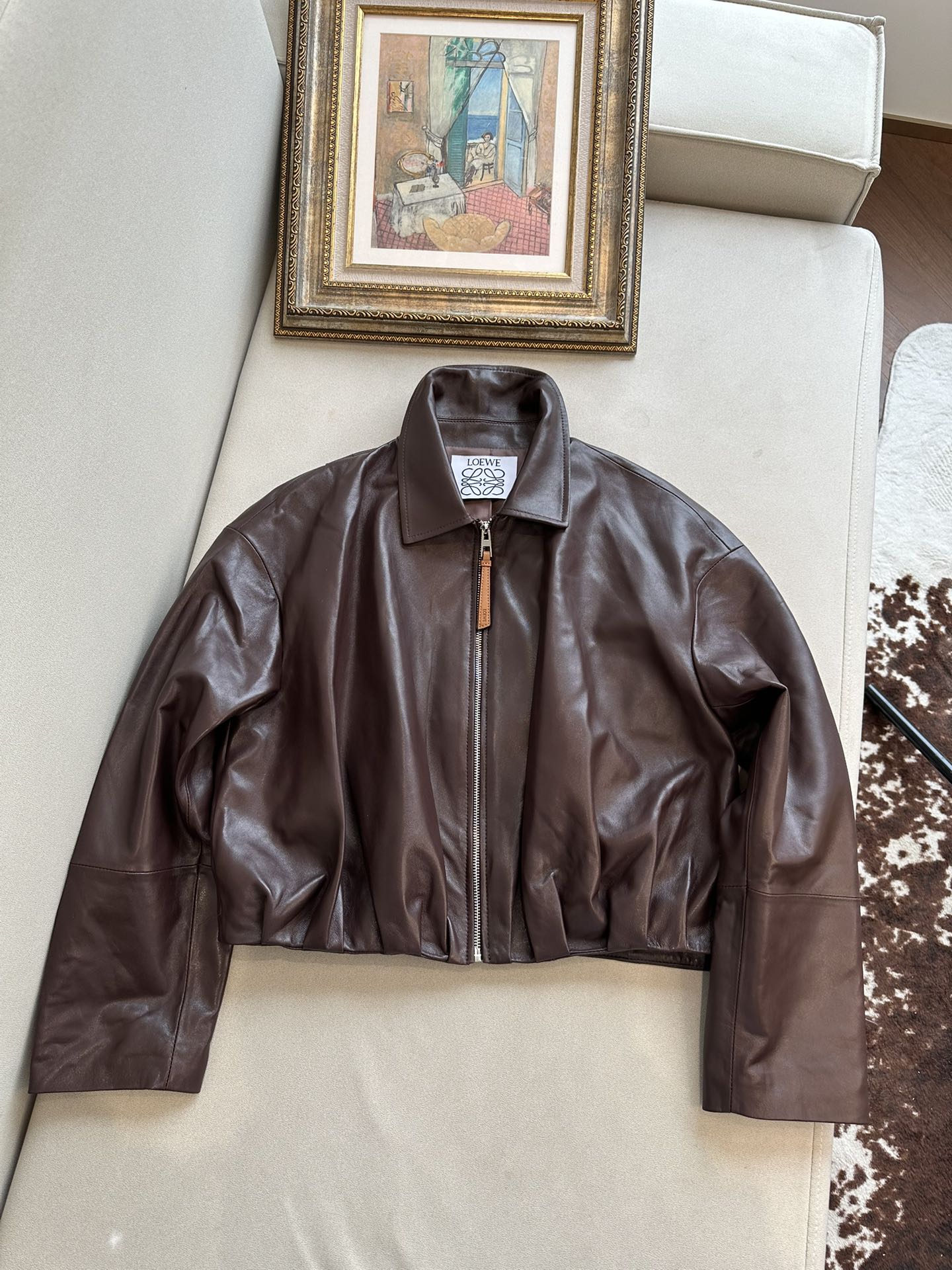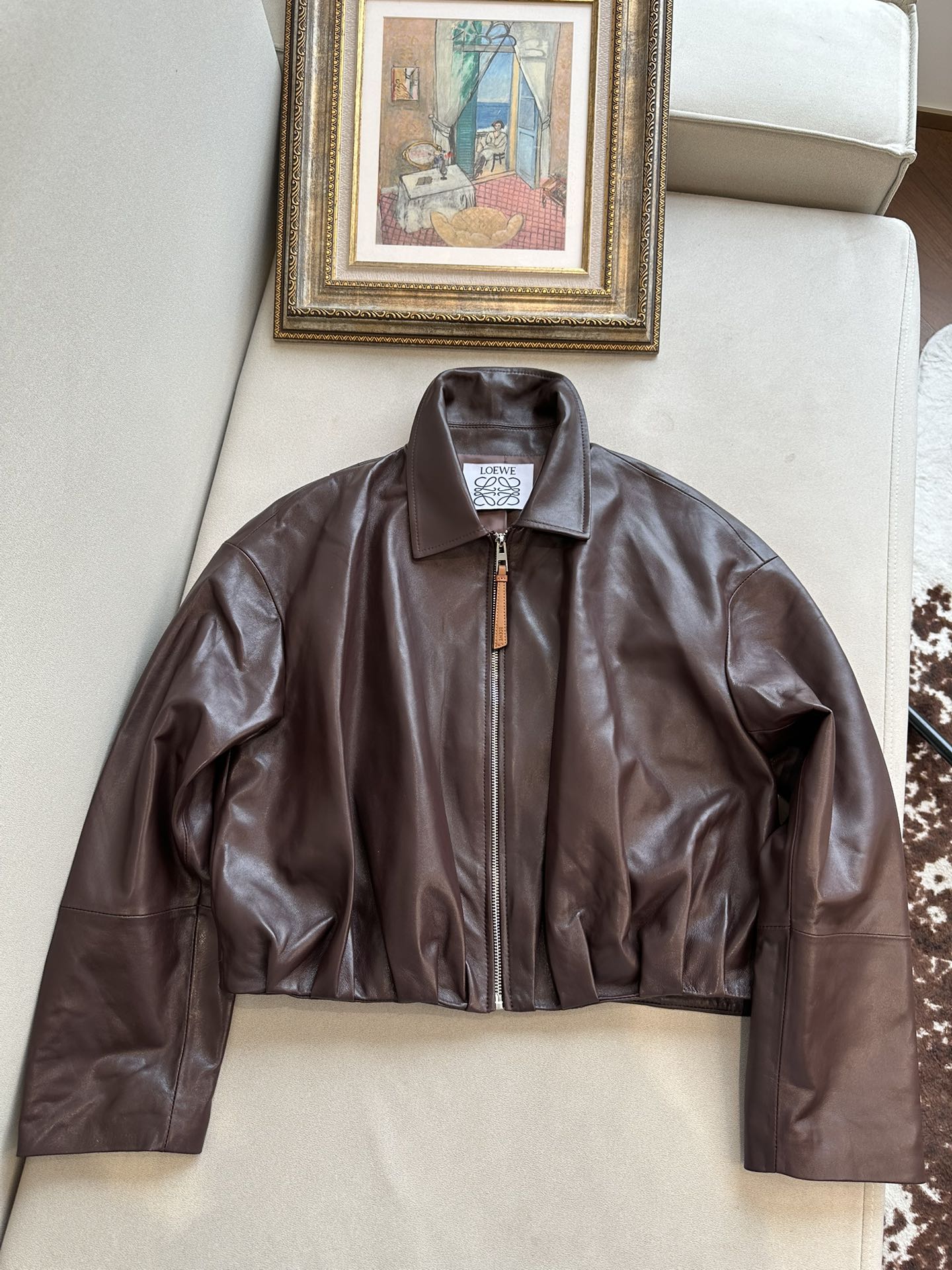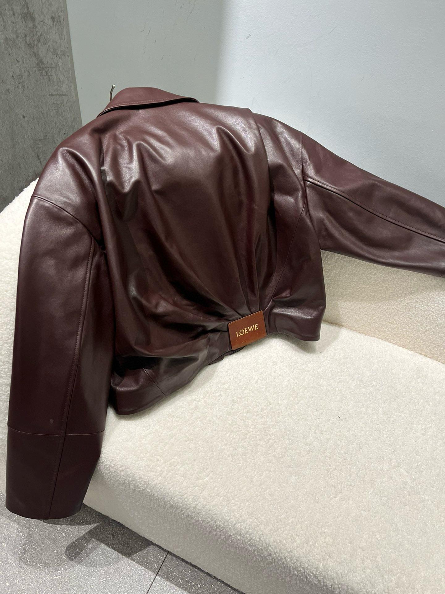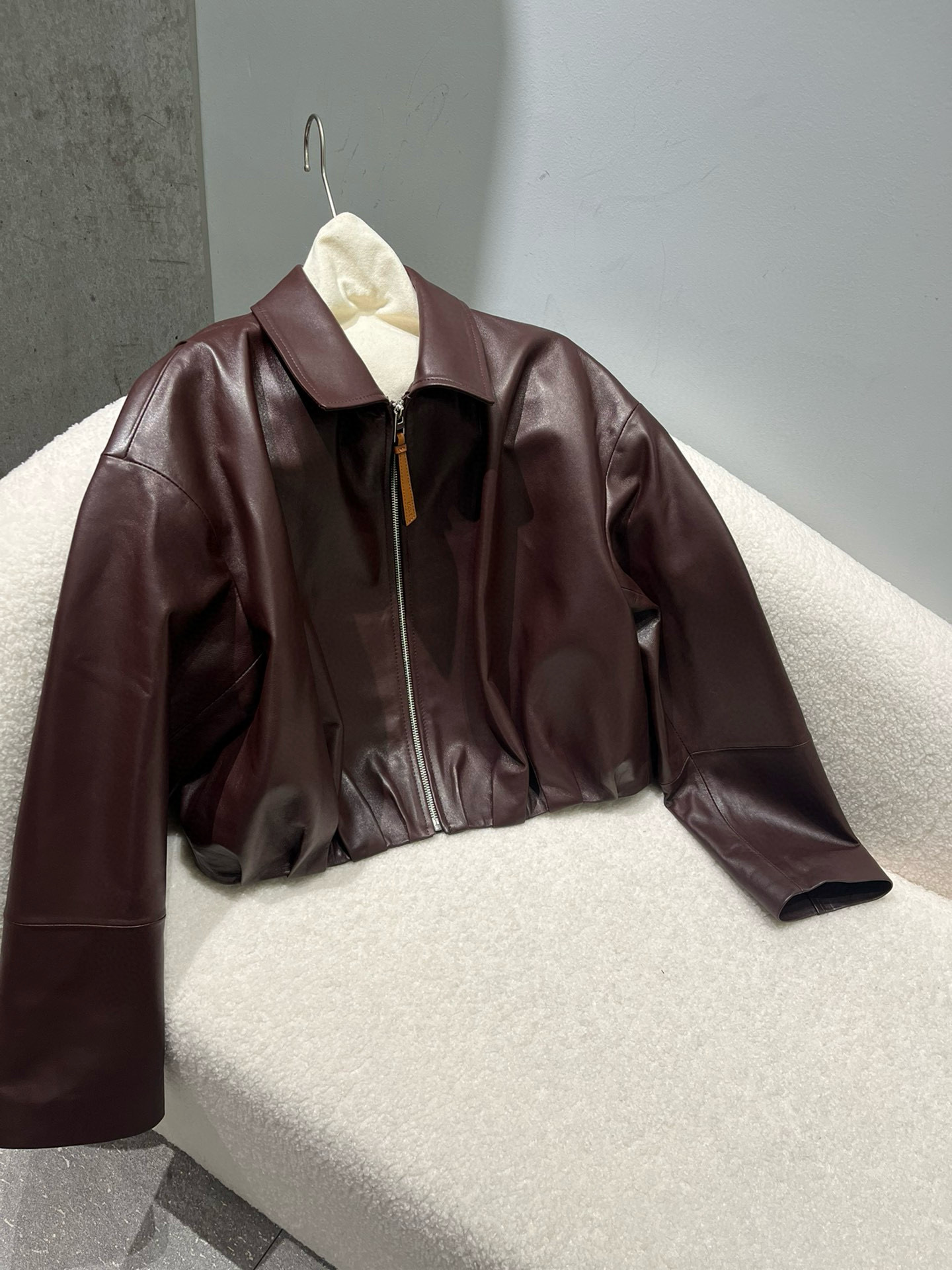 NIGO Loewe Women's Spring and Autumn Solid Color Sheepskin Pleated Zipper Long Sleeve Leather Jacket #nigo75785