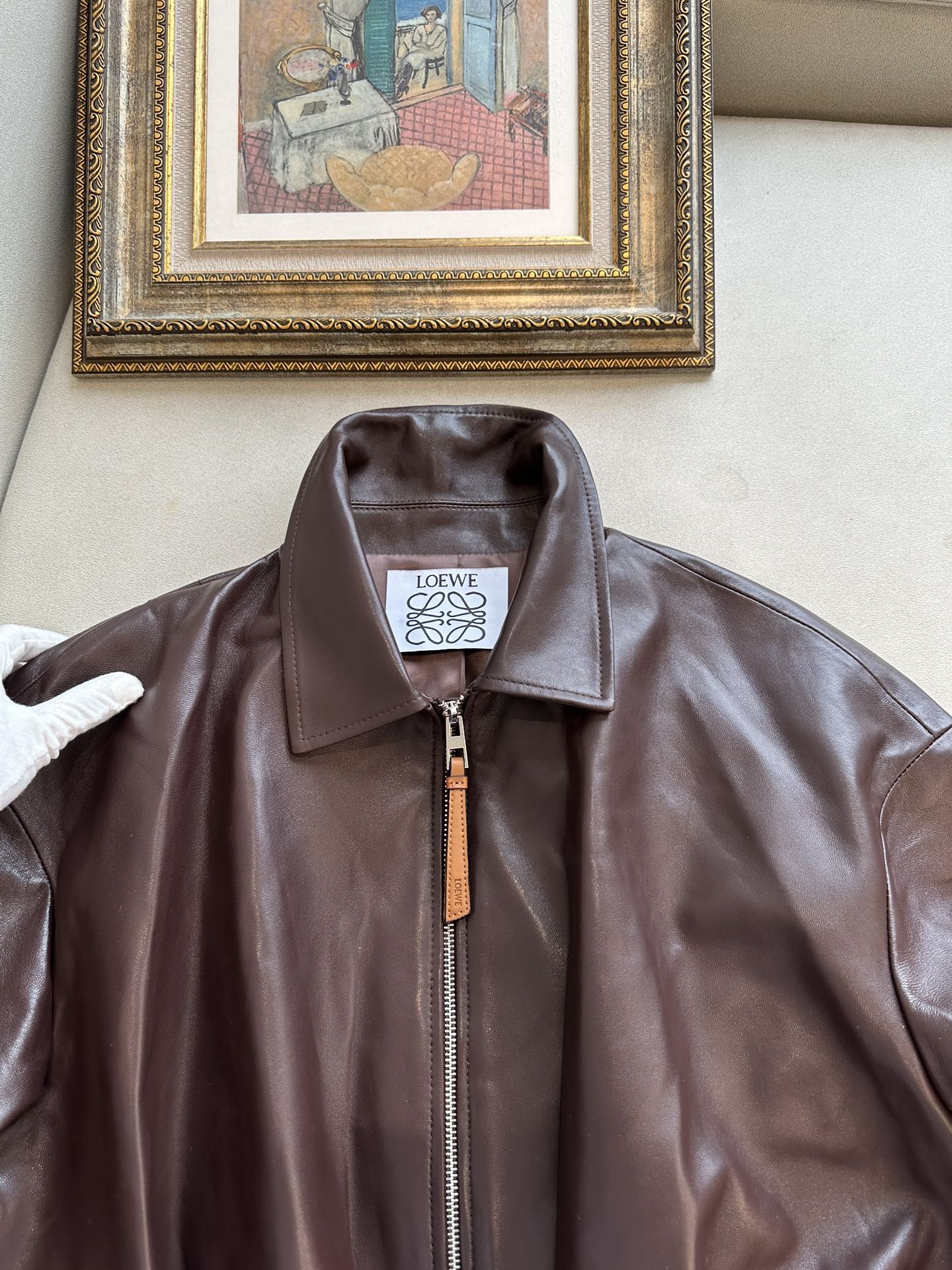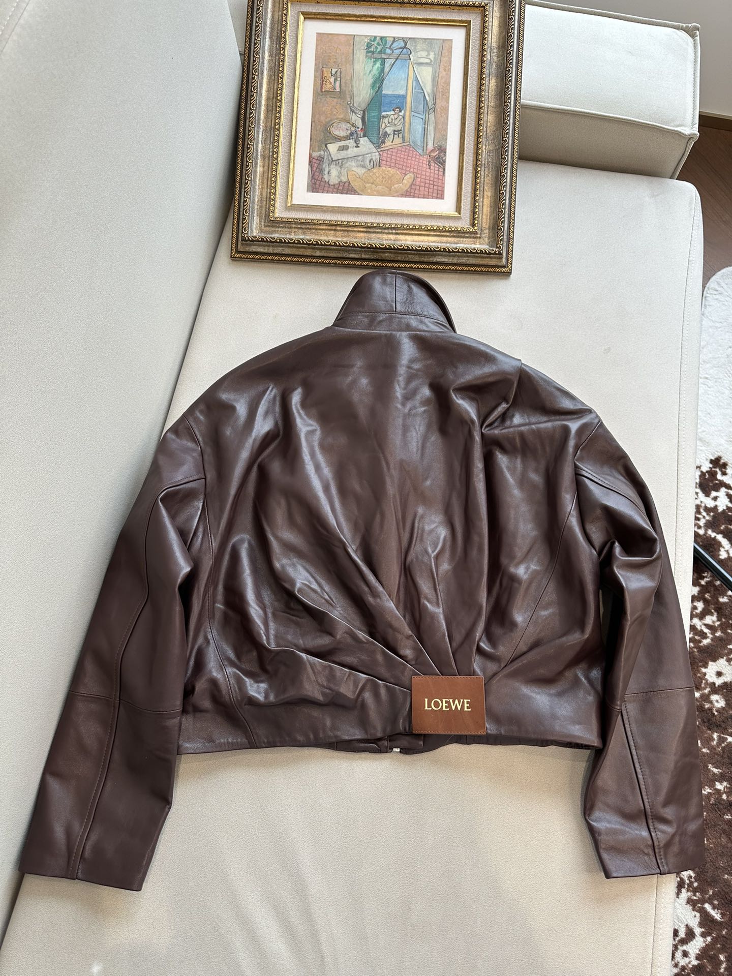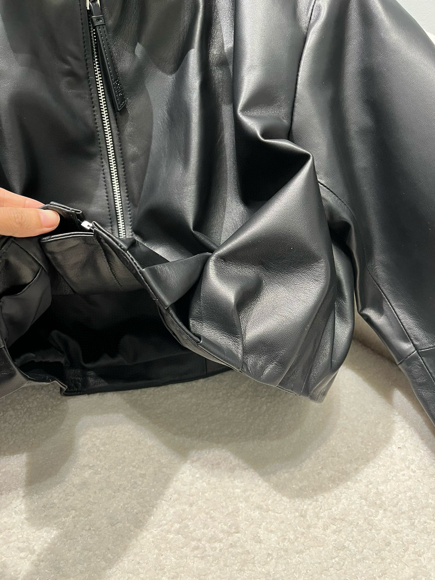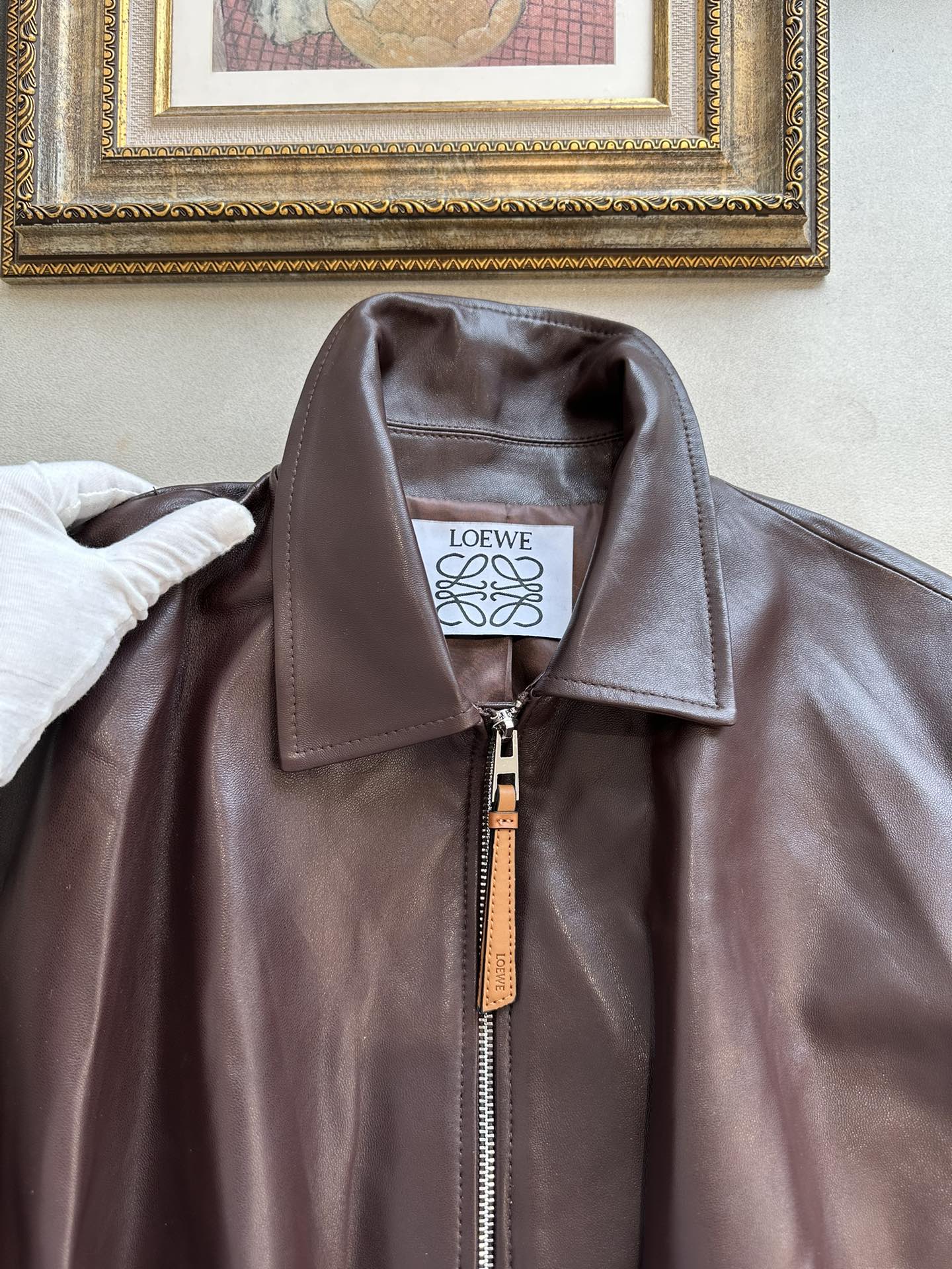 NIGO Loewe Women's Spring and Autumn Solid Color Sheepskin Pleated Zipper Long Sleeve Leather Jacket #nigo75785
