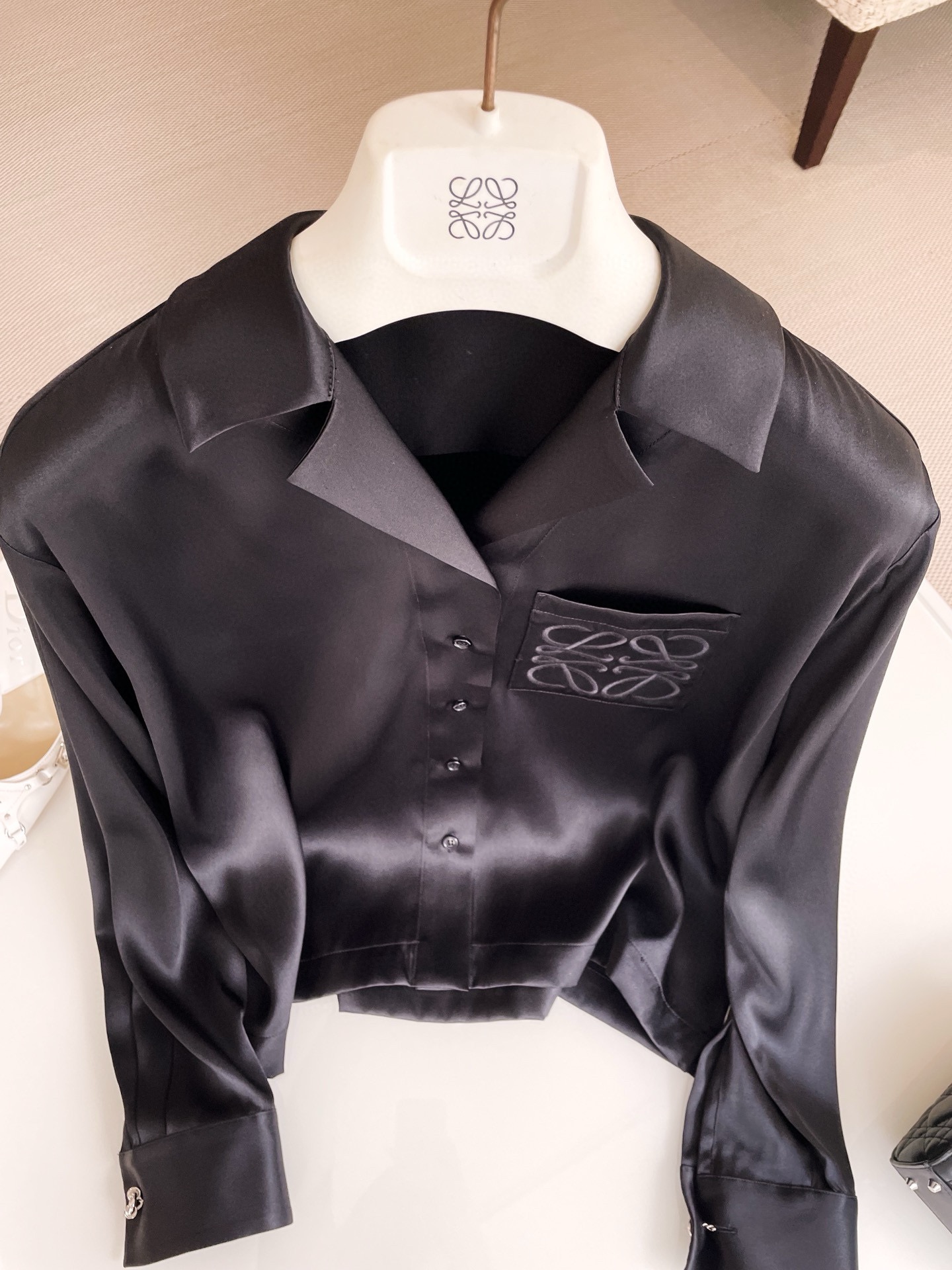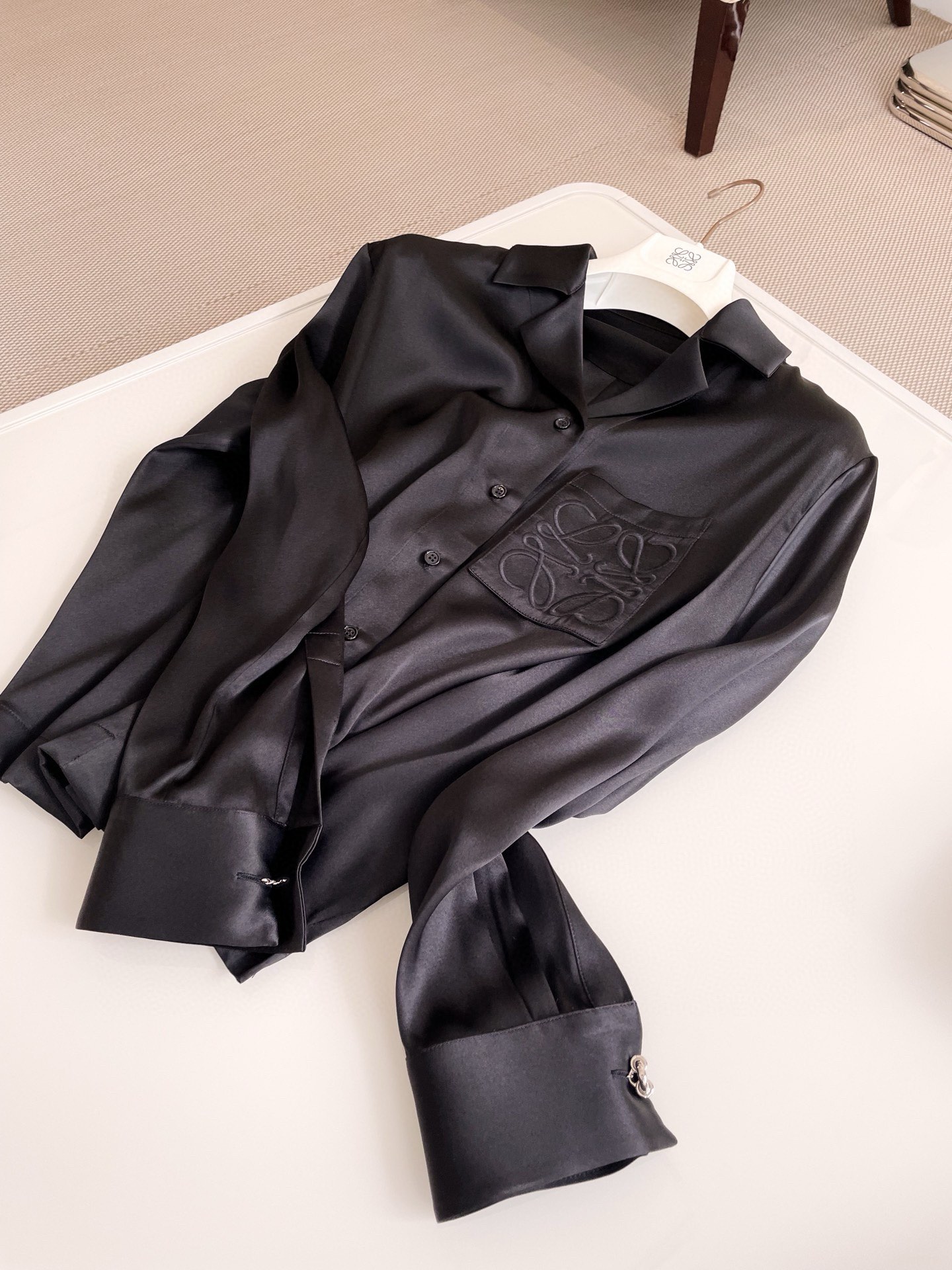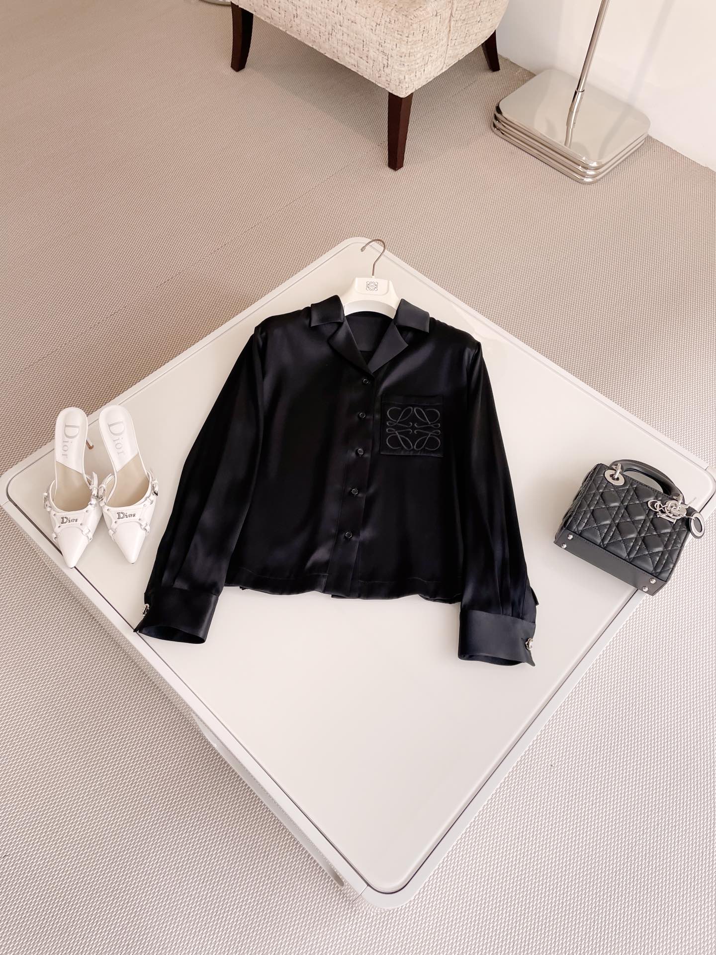 NIGO Loewe Women's Spring And Summer Solid Color Lapel Single Breasted Silk Loose Long Sleeved Shirt #nigo74392