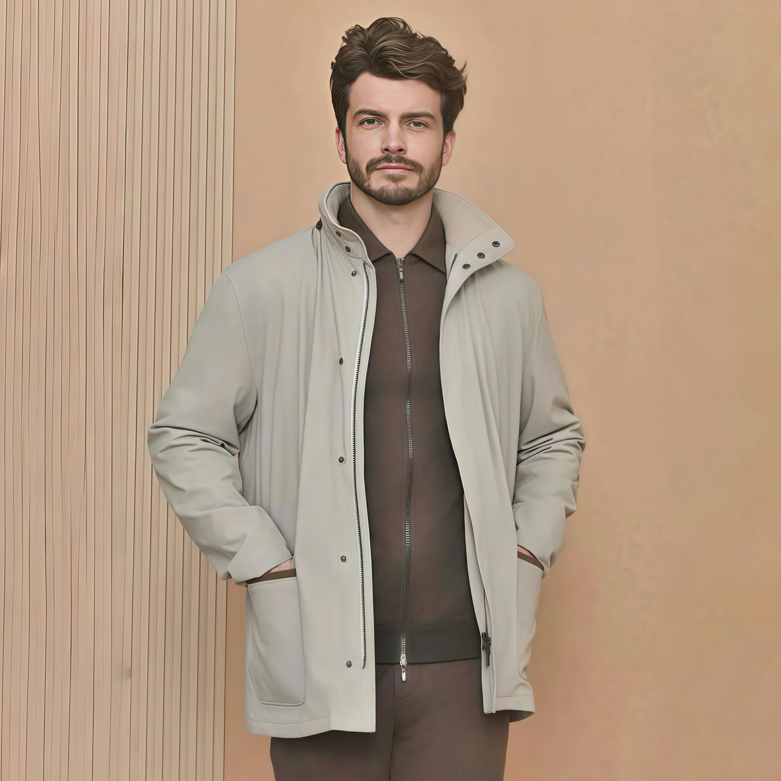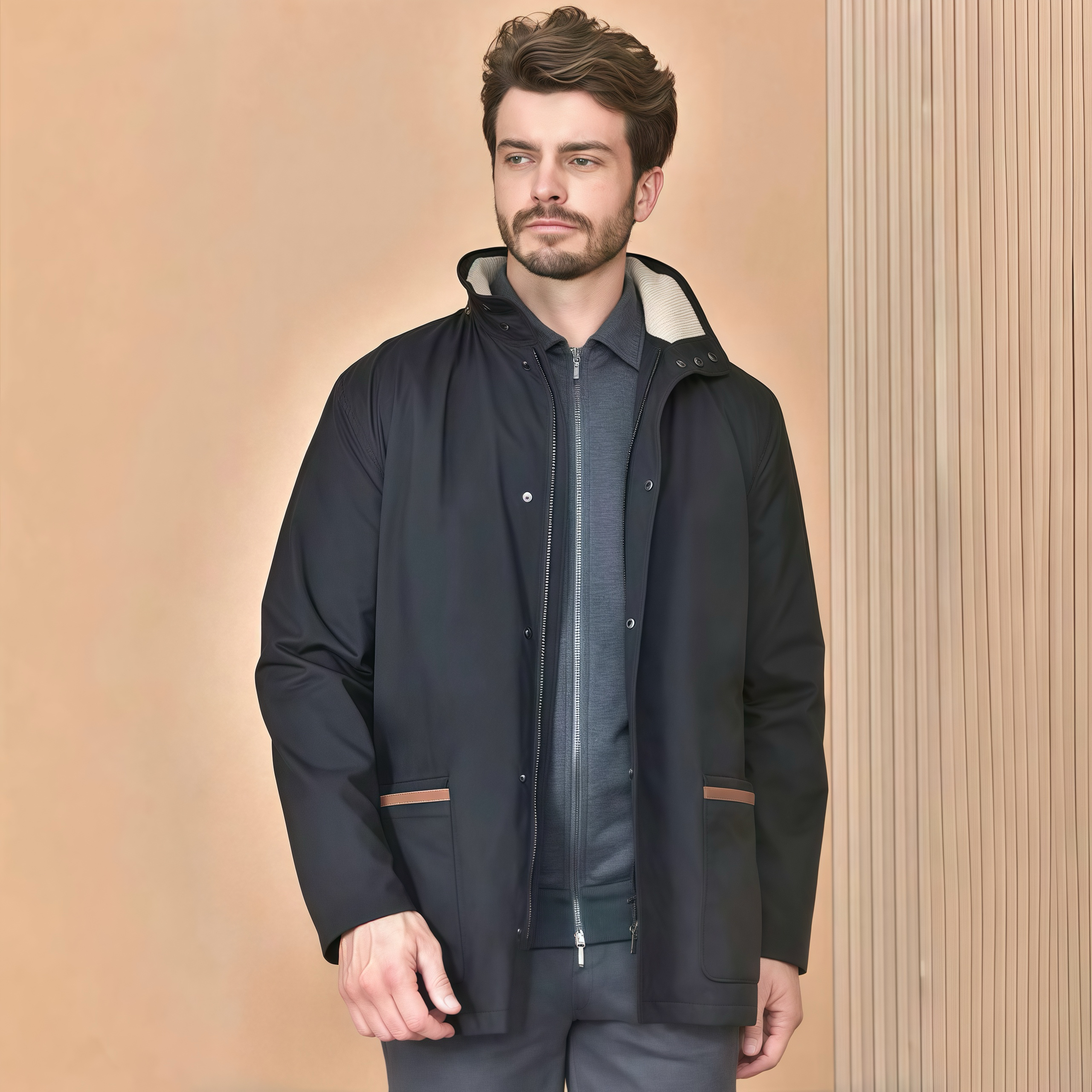 NIGO Loro Piana Men's Autumn/winter Solid Color Casual Zipper Jacket Fashionable Casual Pocket Stand-up Collar Long Sleeve Elegant Jacket Ngvp #nigo2193