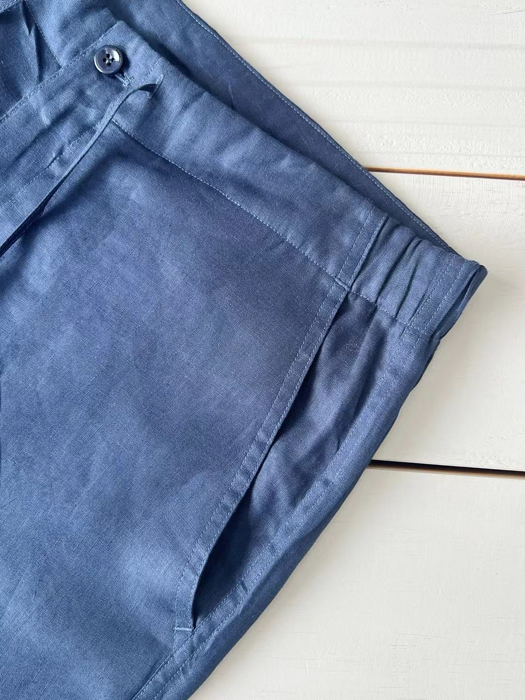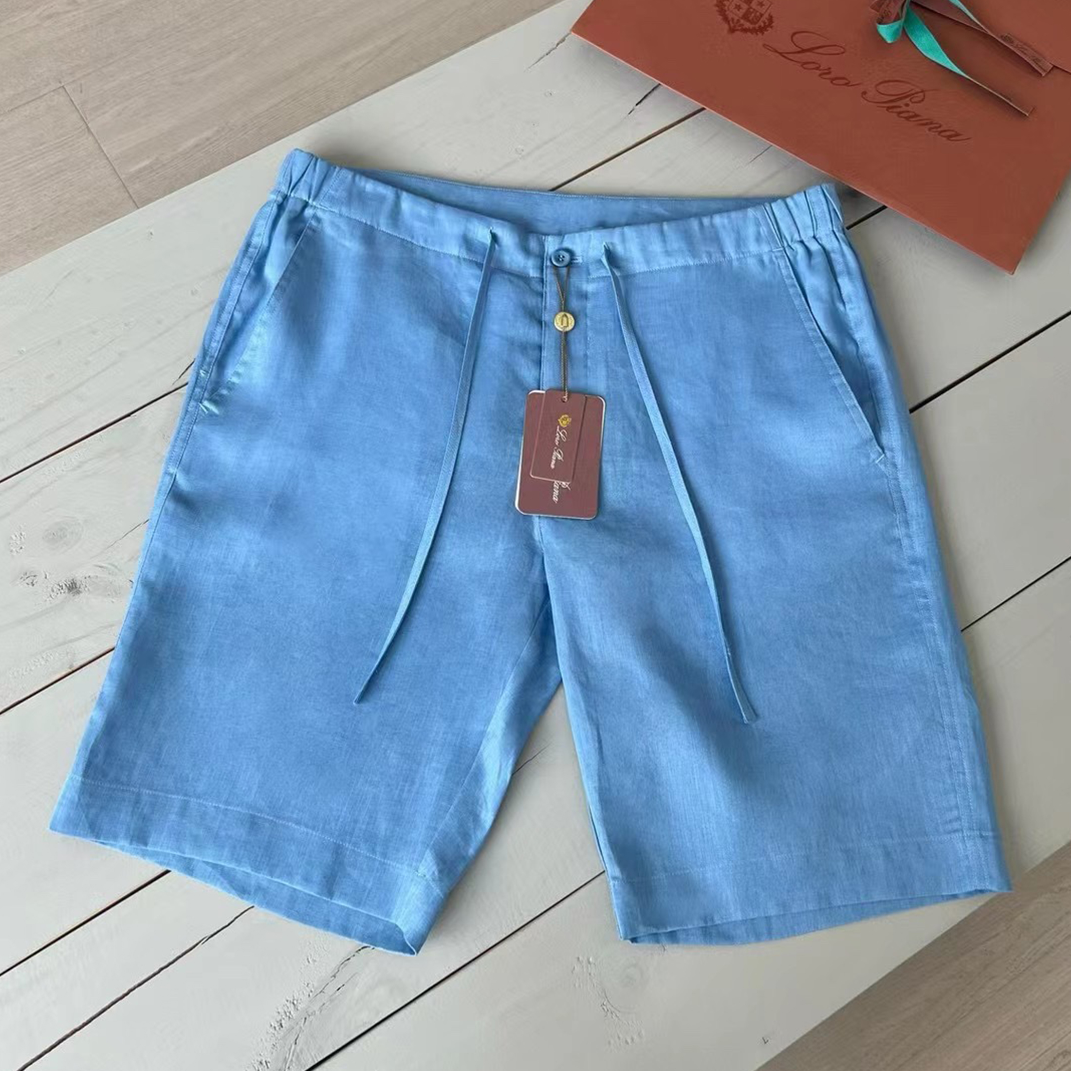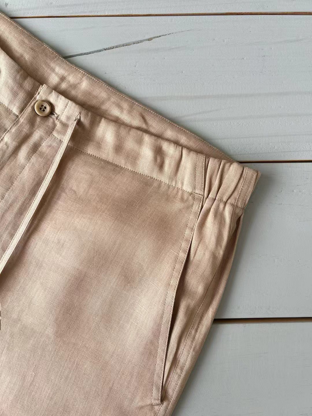 NIGO Loro Piana Men's Spring And Summer Trend Fashion Mid-waist Tie Shorts Linen Solid Color Casual Pants Ngvp #nigo8163